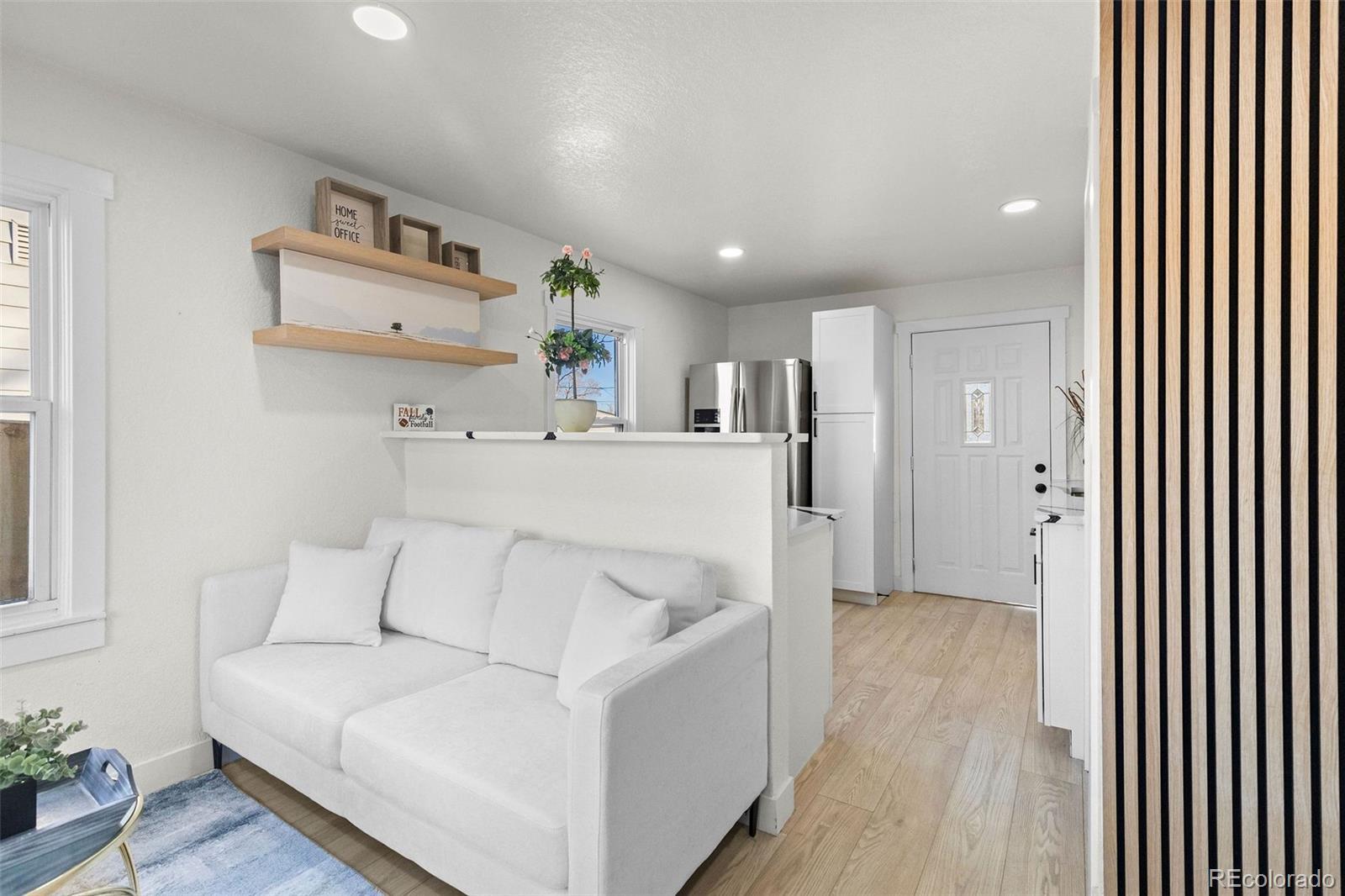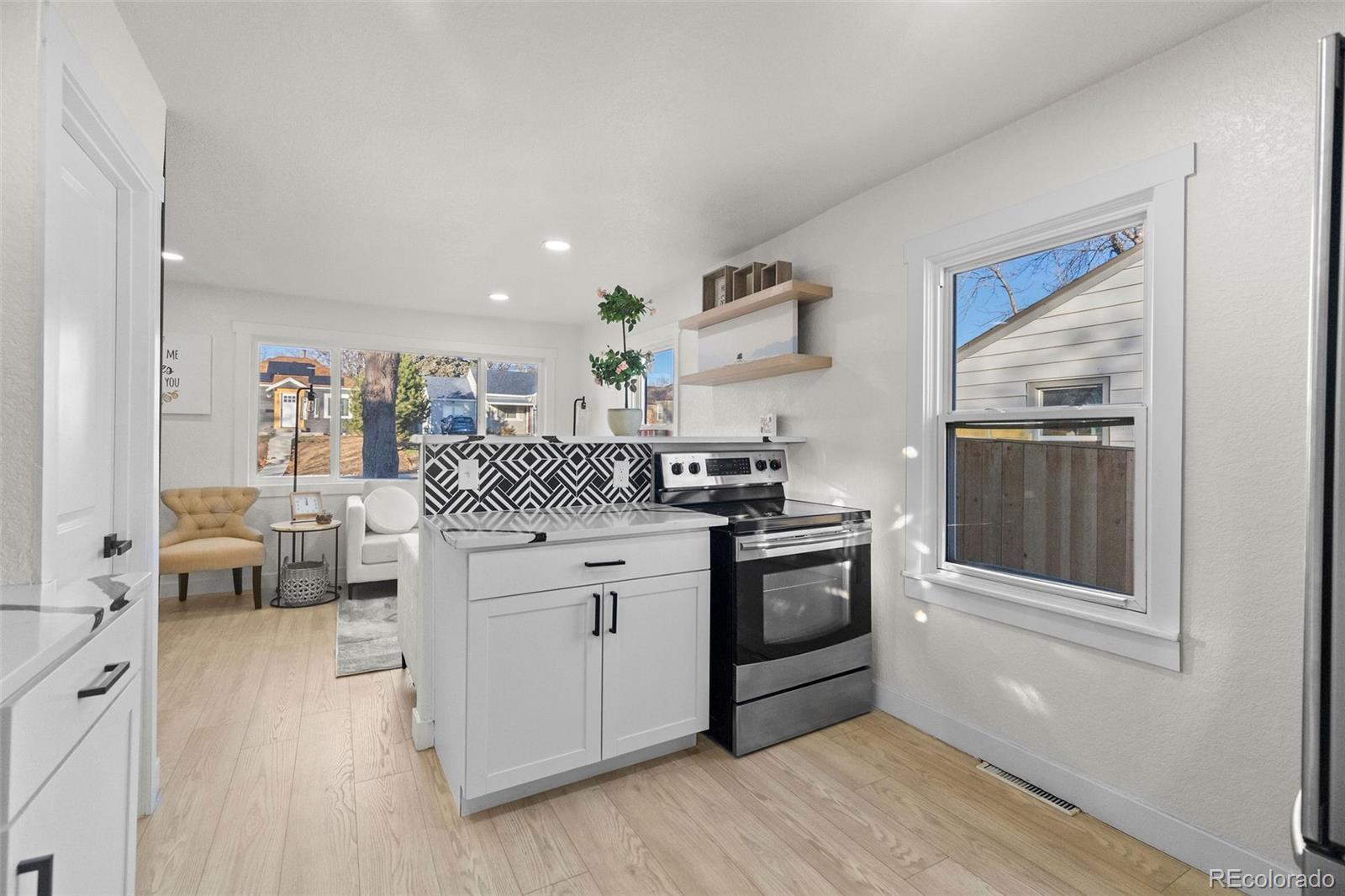 Step inside and discover a beautifully reimagined three-bedroom, two-bathroom home that lives bright, modern, and effortlessly inviting. The main level welcomes you with an open layout drenched in natural light, where the living room connects seamlessly to a designer kitchen. White cabinetry, stainless steel appliances, quartz countertops, and a striking Basalt Dolomite Geo Mosaic backsplash create a clean, contemporary feel that any home chef will love. Just off the kitchen, the dedicated dining room feels special with oversized windows and a custom walnut fluted wood-panel accent wall—a true statement moment. A generous secondary bedroom (ideal for guests or a home office) and a full bath with a marble-tiled shower complete the main floor. Head downstairs to the lower level and you’ll find a private primary retreat designed for comfort. Custom built-ins maximize space, while the large closet and stylish 3/4 en-suite add function and luxury with hexagon marble mosaic flooring, a double vanity, and a quartz step-in shower. Outdoor living is made easy in the fully fenced backyard, offering mature landscaping, privacy, and plenty of room to make it your own. A small shed provides convenient extra storage. Perfectly situated just minutes from lakes, parks, and trails, the location offers endless ways to enjoy the Colorado outdoors. Prefer city energy? Downtown Denver is only 10 minutes away, with quick access to DTC and DIA—both about 30 minutes from your front door. Bonus: Our preferred lender is offering a complimentary 1-0 temporary rate buydown for qualified buyers—exclusive to this property. Ask for details!