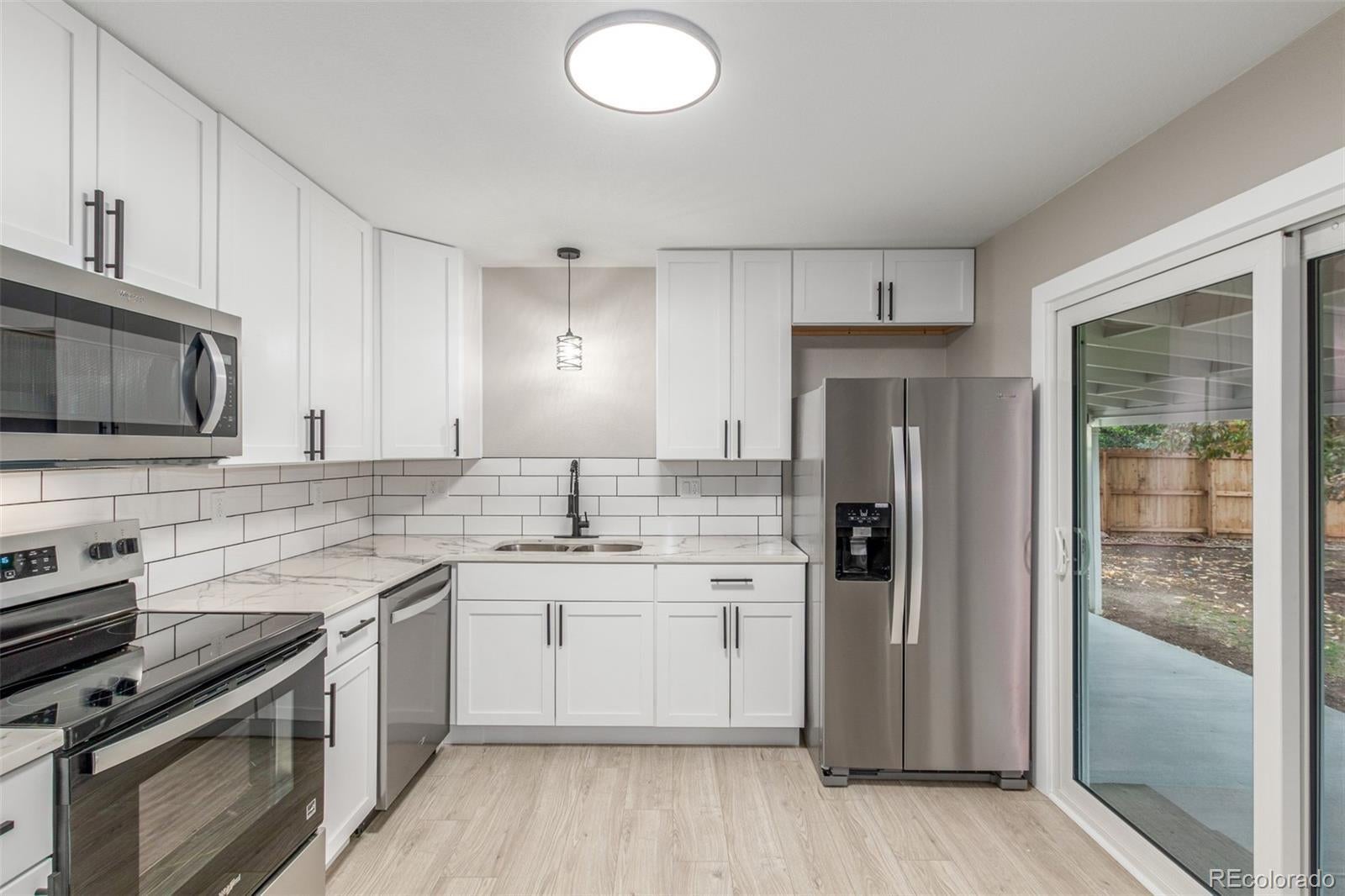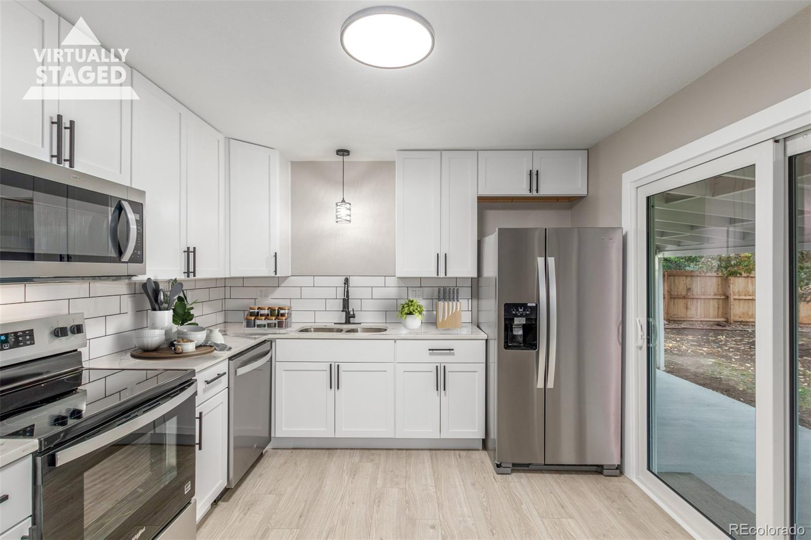 Welcome to this beautifully updated 4-bedroom gem! From the inviting shade tree in the front yard to the spacious 2-car garage, this home radiates warmth and style from the moment you arrive. Inside, you’ll discover a bright, open layout featuring fresh new flooring throughout, plush carpet in all the right places, and lighting that sets the perfect mood for everyday living or entertaining. The living room invites you to relax by the cozy fireplace, a delightful focal point for gatherings or quiet evenings. The fully remodeled kitchen is a showstopper with its gleaming stainless steel appliances, crisp white cabinetry, stunning quartz counters, and chic tile backsplash. Whether you’re preparing a quick breakfast or hosting a dinner party, this kitchen truly delivers in both form and function. On the main level, you’ll find two spacious bedrooms offering comfort and versatility, while the beautifully finished basement expands your living options with two additional bedrooms, two stylish bathrooms, and a generous walk-in closet. Every corner of this home has been thoughtfully updated, from new fixtures to fresh finishes that make it move-in ready and truly special. Out back, the large yard is complete with a covered patio, a handy storage shed, and another mature shade tree that adds just the right touch of tranquility. There’s plenty of space to create your dream outdoor retreat, garden, or entertainment area. Perfectly situated near popular dining spots, local parks, top-rated schools, and easy freeway access, this home combines comfort, convenience, and character in one irresistible package. Whether you’re looking to entertain, relax, or grow, this property has it all, beautifully refreshed and ready to welcome you home!