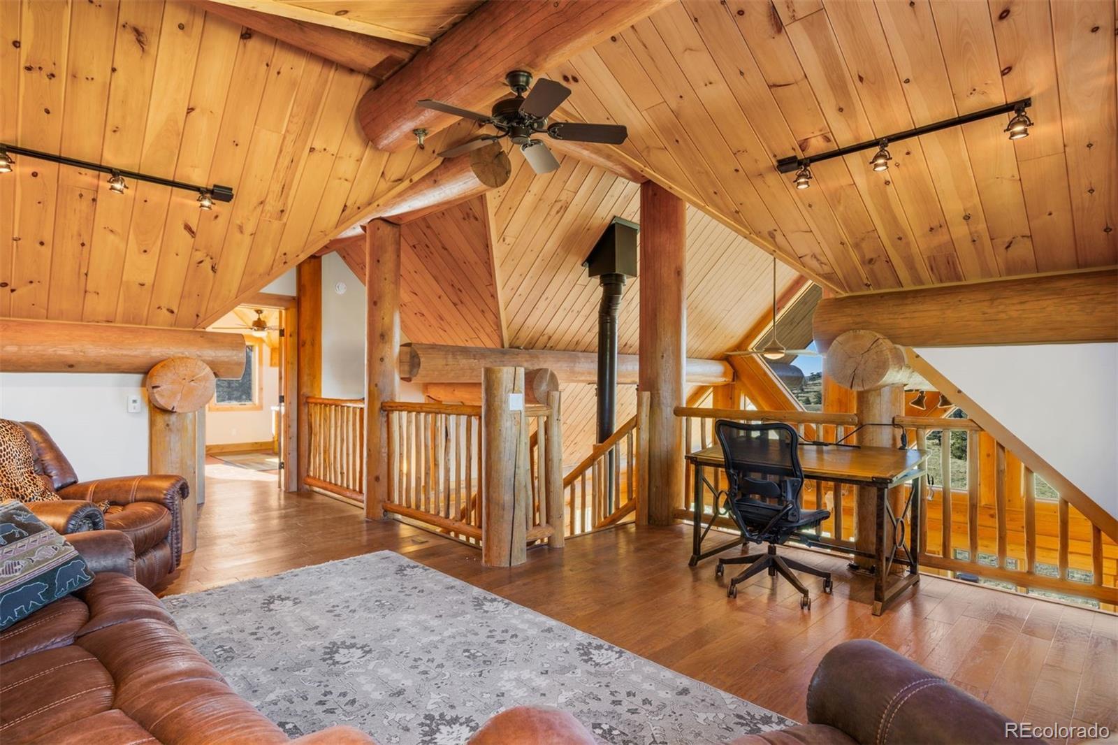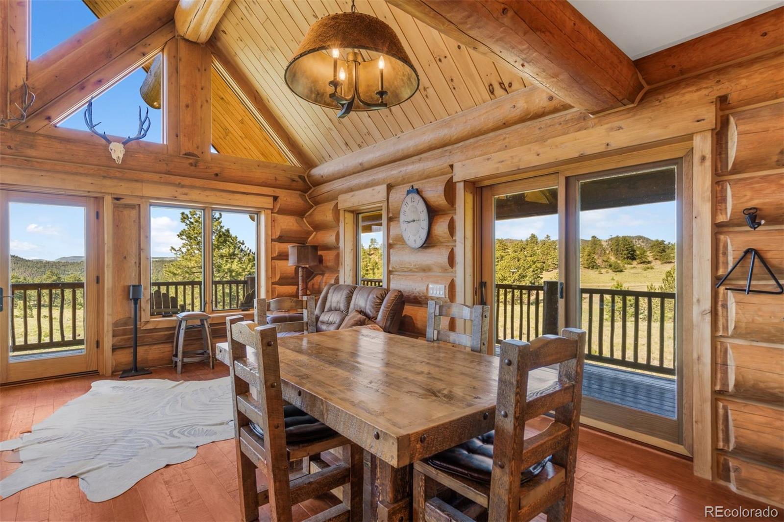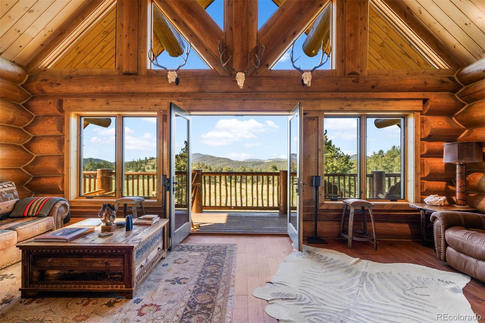 Inspirit Ranch is located in Southeastern Park County near Guffey, Colorado. This exceptional 890 +/- acre hunting and recreational property offers a rare confluence of natural resources—abundant water, fertile grasslands, off-grid living, and diverse wildlife. Nestled among tall Ponderosa pines at the southern base of Thirty-nine Mile Mountain, the ranch sits above 9,000 ft. Nearly one mile of frontage on Hwy 9 provides easy access and connects to an excellent internal road system. The stunning 3,575 sf log and stone lodge is fully off-grid and self-sufficient, with an open floor plan featuring 3 bedrooms, 3.5 bathrooms, a full kitchen, entertainment room, study, mudroom, wraparound porch, and a 3-car garage with ample storage. The terrain features mesas, draws, valleys, and open rangeland, evoking the spirit of the western buffalo plains. With 7 adjudicated wells and springs, watering wildlife and livestock is effortless. Big game includes Trophy Mule Deer, Elk, Black Bear, Pronghorn Antelope, and Mountain Lion. Located in GMU 58, a renowned trophy mule deer unit, the ranch typically receives 4 landowner tags for deer and elk. Future antelope tags are also possible. Nearby are Eleven Mile and Spinney Mountain Reservoirs and the Dream Stream, known for Gold Medal Trout. The Royal Gorge, Arkansas River, and ski resorts like Breckenridge and Keystone are under two hours away. Cripple Creek’s historic charm is just 20 minutes out. With its natural wealth, proximity to metro areas, and potential for further enhancements, Inspirit Ranch offers a compelling investment opportunity.