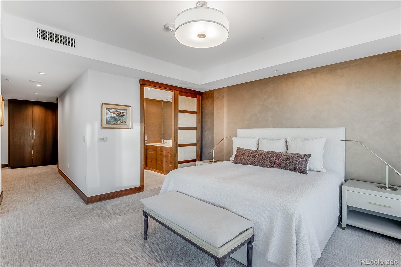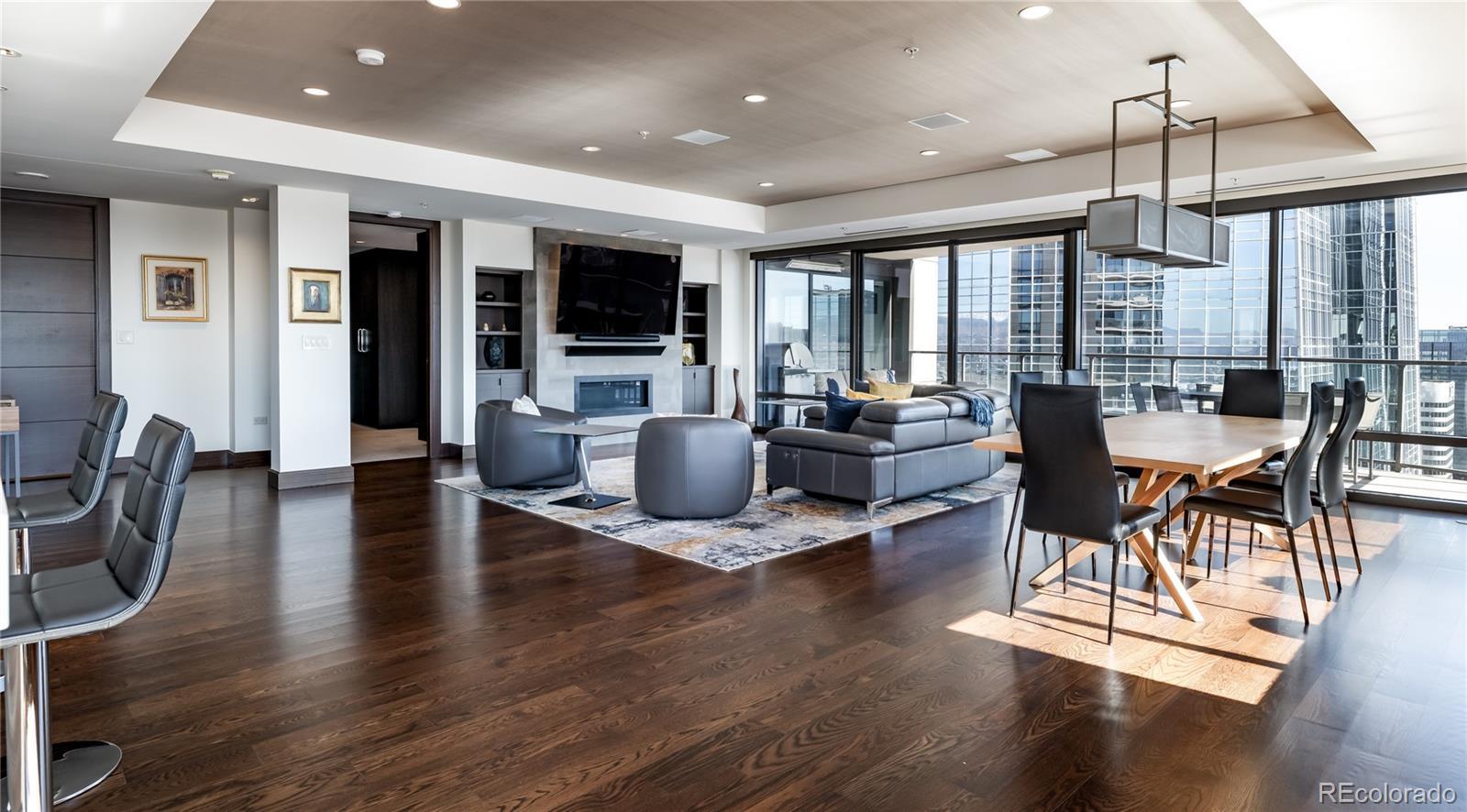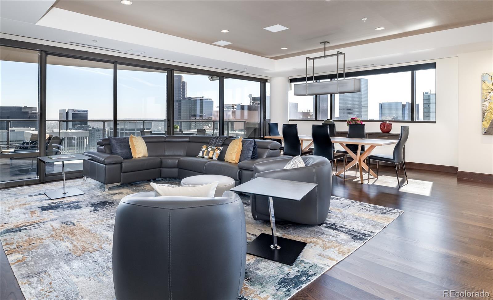 Elevated luxury awaits in this sophisticated, updated residence on the 33rd floor of the iconic Four Seasons Private Residences in the heart of downtown Denver. Occupying a full quarter of the floor, this expansive condo blends modern elegance with breathtaking views of the city skyline. Inside, sleek lines and exquisite finishes define the open-concept living space, offering seamless flow and endless possibilities for personalization. The gourmet kitchen is a showstopper, featuring high-end appliances, custom cabinetry, wine refrigerator, and a spacious walk-through pantry that also houses full-sized laundry and generous storage. Designed for both comfort and entertaining, the home includes an integrated entertainment system and a private balcony outfitted with heaters—perfect for enjoying the cityscape in any season. The serene primary suite offers spectacular views, a luxurious en-suite bath with double vanity and built-in cabinetry, and thoughtful privacy from the rest of the home. Two additional en-suite bedrooms are ideally separated for guests or office space. Enjoy the ease of two deeded parking spaces in a secure garage and indulge in world-class Four Seasons amenities, including 24-hour concierge, room service menu, valet, access to the pool, fitness center and spa and so much more. This is city living at its most refined—welcome to a life of everyday luxury.