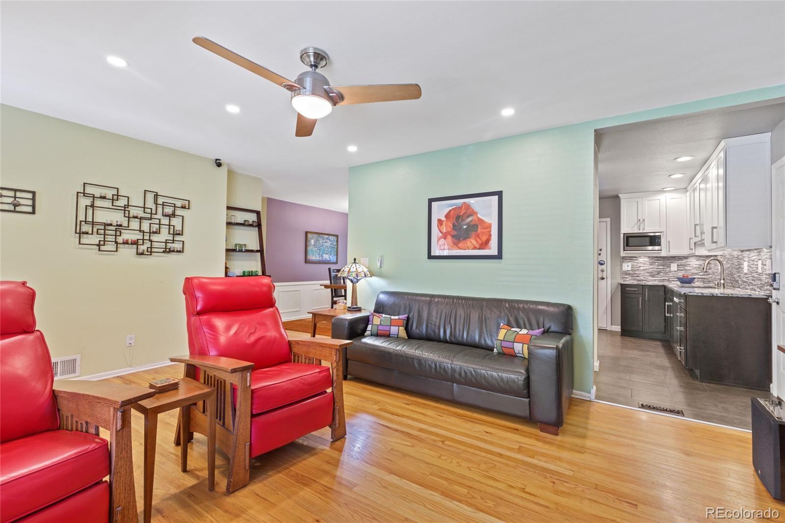 Stunning & Updated Ranch with Gourmet Kitchen & Finished Basement! Welcome to your dream home in the sought-after Meadowlark subdivision in Lakewood, Co! This meticulously updated 4-bedroom, 2-bath ranch boasts 2,240 finished square feet of stylish and comfortable living space, perfect for modern living and entertaining. As you step inside, you'll be greeted by the warmth of original oak hardwood floors that flow throughout the main level. The heart of the home is the completely renovated Gourmet Kitchen, a chef's delight featuring brand new cabinets, stunning quartz countertops, a powerful GE Cafe induction cooktop, and a matching GE Profile oven with a new vent hood. The main floor offers three spacious bedrooms, including a peaceful primary retreat with all new windows throughout the house. Venture downstairs to discover a fantastic, fully finished lower level. Here, you'll find a fourth bedroom, a beautifully updated wet bath, and a versatile separate room perfect for a home gym or ample storage. The expansive family room is a true highlight, currently used as a cozy theatre room and featuring a newer gas fireplace, ideal for movie nights or relaxing. Recent interior updates and features also include updated baths, remodeled Laundry Room for Extra Space, Newer Gas Fireplace in Basement. Exterior improvements include New Driveway Cement, Added Front Sidewalk, New Backyard Cement Pad & Walkway and the Garage & Utility is equipped with 220-Volt Electric Car Charging Station, 4-Layer Polyaspartic Floor Coating, New 16'x12' Storage Shed in backyard, Recently Replaced Gas Line to House, and New Sprinkler Lines (Front & Back). This home truly has it all! Enjoy the perfect location close to Belmar's fantastic shopping and restaurants, St. Anthony's Hospital, and with easy access to both Downtown Denver and the majestic Rocky Mountains for a quick mountain getaway. Don't miss this incredible opportunity! Schedule your showing today.