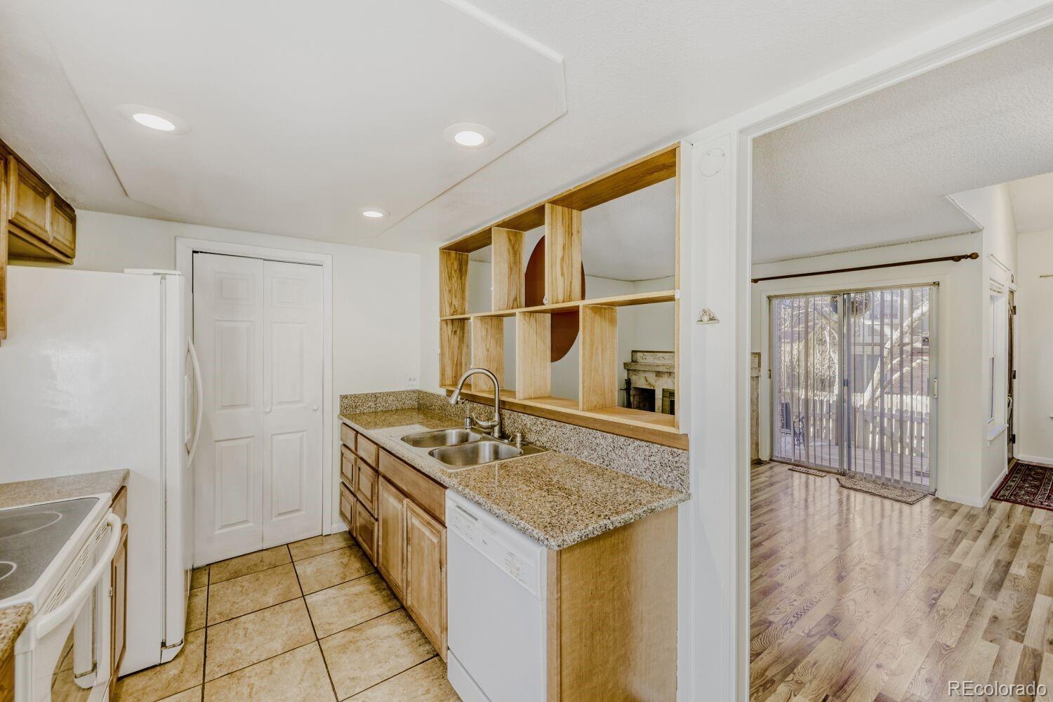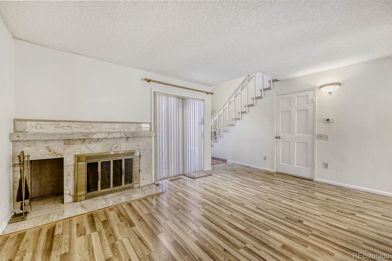 Popular two story townhome in Chambers Ridge community* Open flloorplan featuring large family room with wood burning fireplace, updated kitchen, cozy eating space and guest bathroom on the main level* Second floor featuring large primary bedroom, additional bedroom, updated bathroom with oversized shower and laundry closet* Sellers have updated kitchen, bathrooms, windows, carpet, tile, lights and more. Lower level access to two cars garage* Private patio is great for entertainment* Premium location* Great community with low HOA* Walking distance to community pool and clubhouse! Close to shopping, restaurants, I -225, and Iliff Light Rail stop. Must see inside. Will not last!