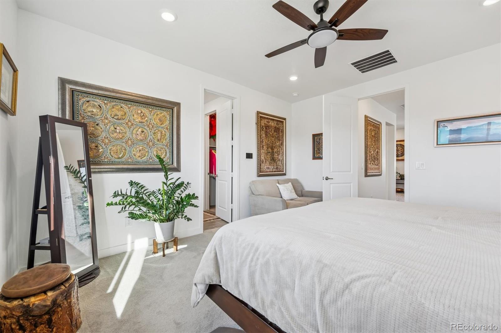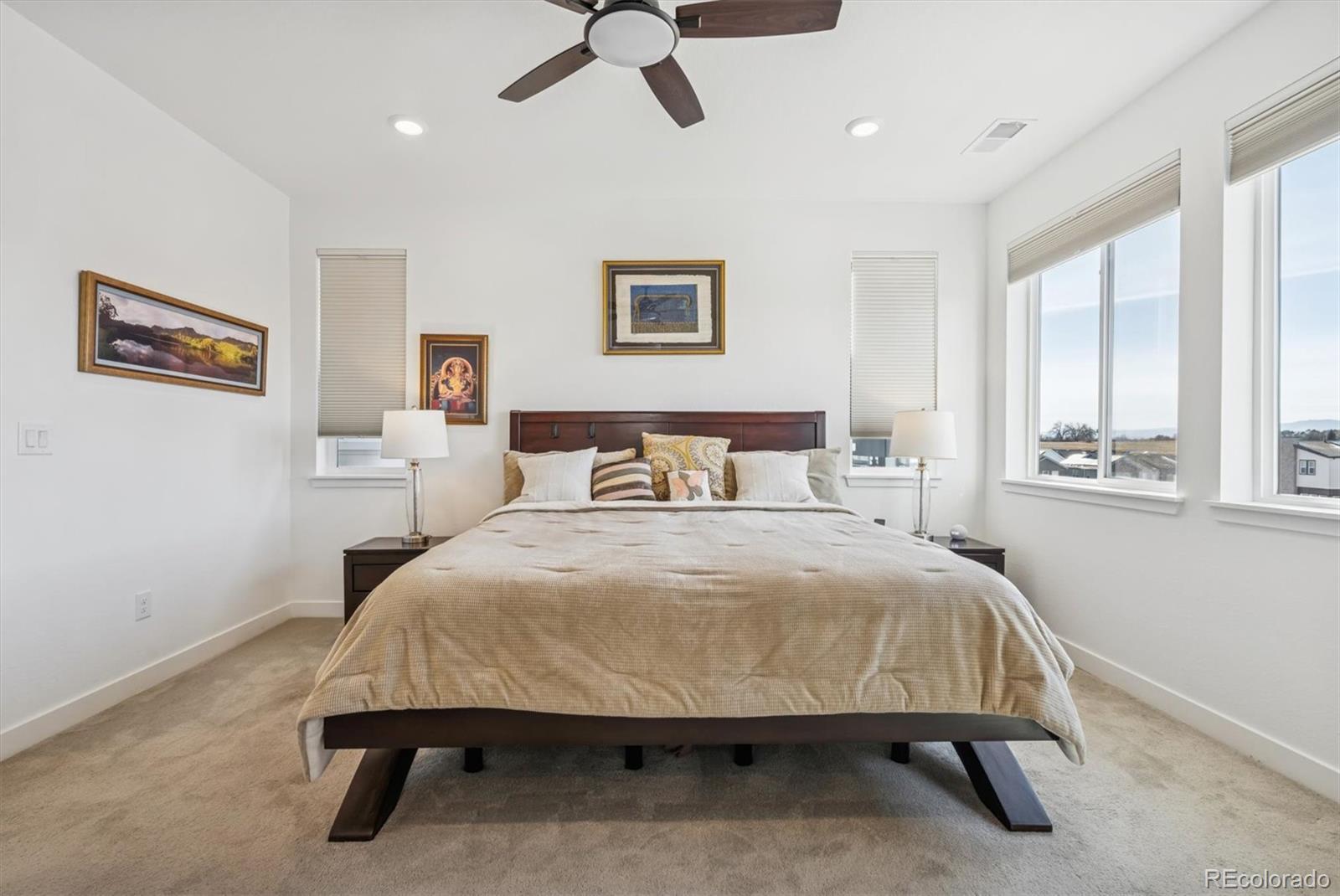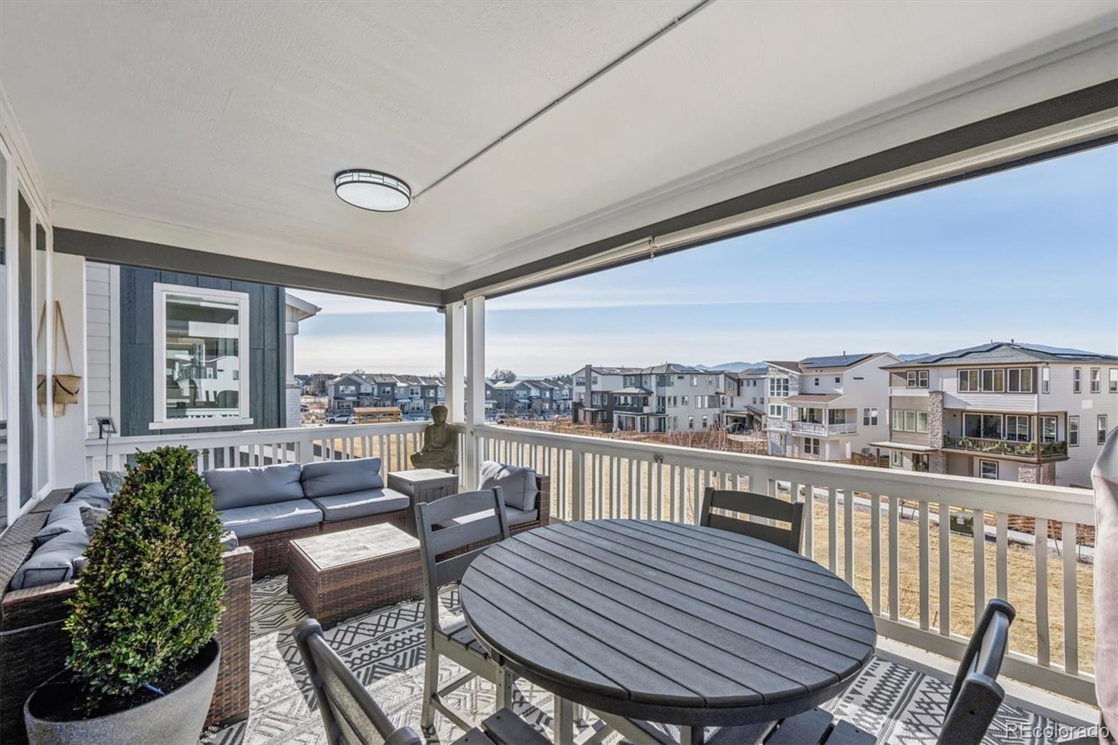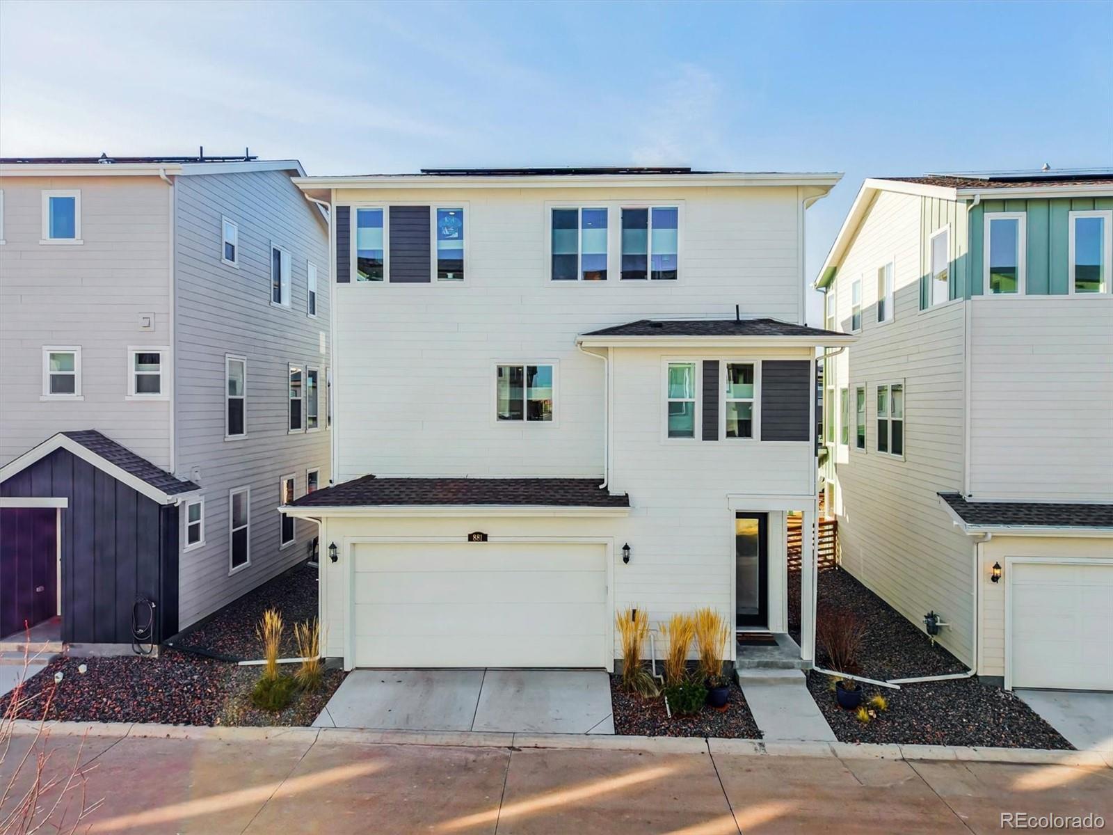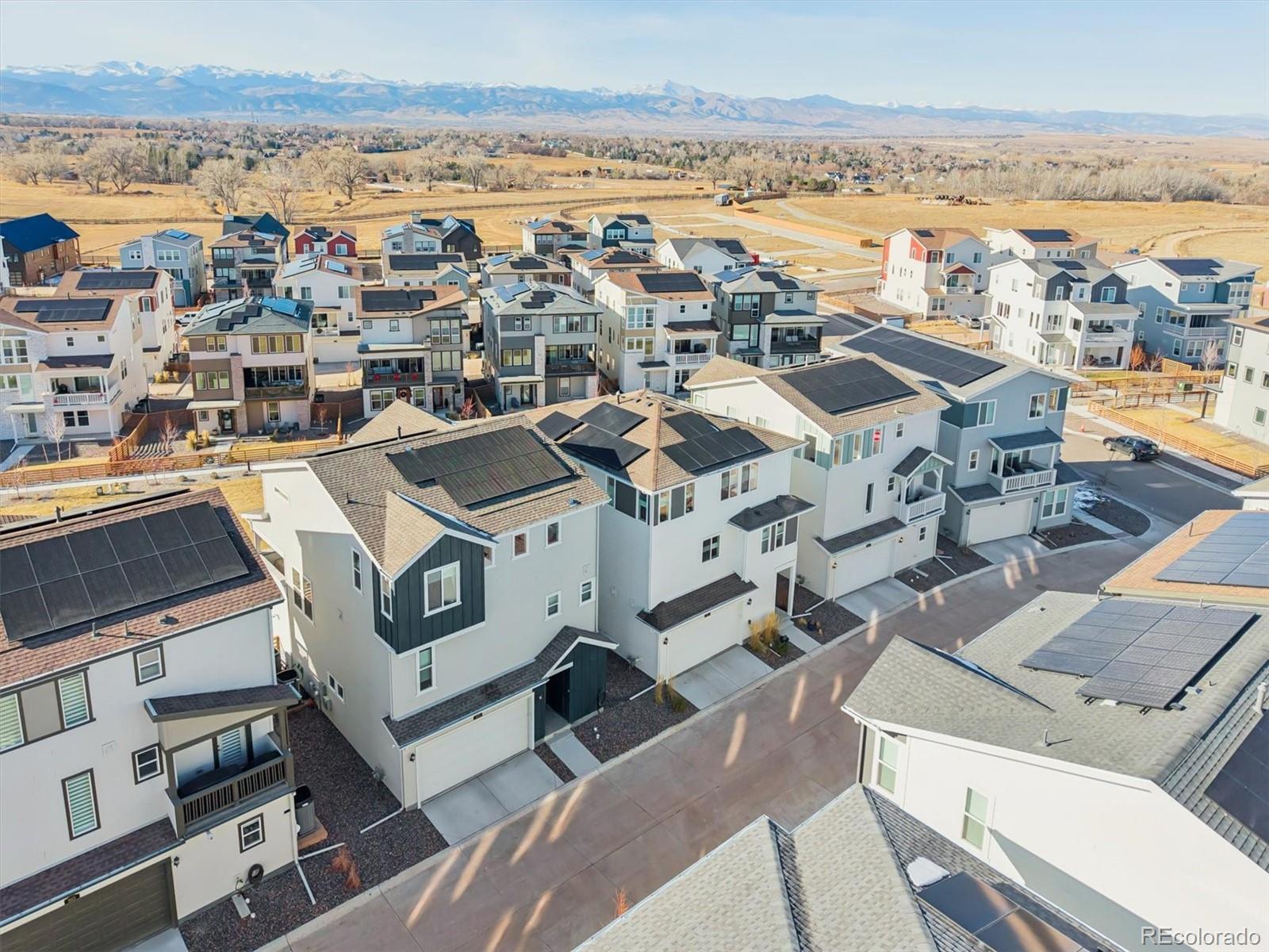 Escape to your ideal home in one of Lafayette’s newest communities, Silo. Enjoy close proximity to everyday amenities with easy access to Denver, Boulder, and Estes Park. Outdoor enthusiasts will appreciate the one-mile walk to Waneka Reservoir and the surrounding open space. This upscale 3-bedroom, 4-bath home is west-facing on the greenbelt, offering beautiful mountain views. The main level features a bedroom and 3/4 bath, ideal for a home office or guest suite, along with convenient access to the two-car garage. The second level is designed for living and entertaining, with a striking kitchen, open dining and living areas, and a spacious covered patio backing to the greenbelt with glimpses of the mountains. Large windows throughout the home fill the space with natural light. In the evening, turn on the built-in sound system and dim the patio lights to enjoy the Colorado sunset. Upstairs, the primary suite showcases breathtaking mountain views and a private en-suite bathroom with double vanities. A secondary bedroom and loft provide flexible space for guests, work, or relaxation. This home and location deliver the lifestyle you’ve been waiting for.