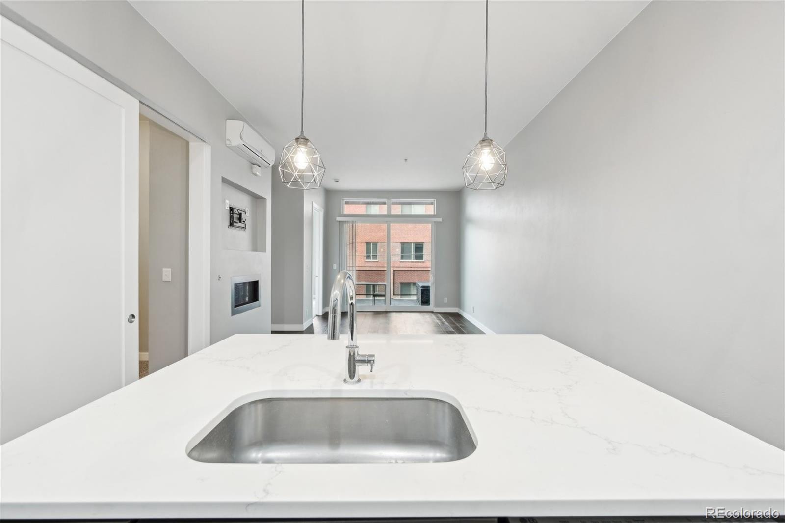 Step inside the beautifully remodeled and contemporary condo with a den, in the Logan Lofts building. Offering 851 square feet of modern living space in Denver's vibrant Speer neighborhood. This unique and freshly refinished unit offers open-concept layout with high ceilings, providing an airy and inviting atmosphere. Large sliding glass doors boast abundant natural light throughout the unit. The kitchen is equipped with brand new stainless steel appliances, custom lighting and timeless wood cabinetry, seamlessly flowing into the living area—ideal for both relaxation and entertaining. Make yourself comfortable and cozy on a cold Colorado day with gas fireplace located in the living room. The additional bonus room is perfect for an office, workout room or you could add a murphy bed and make this the perfect place for guests! Access the newly finished bathroom with beautiful finishes throughout from both the bedroom or living room. Enjoy a cup of coffee or reading a book from the private balcony. A reserved parking spot #20 in the building's lot and bike storage provides additional convenience. The building offers secure entry, elevator access, and well-maintained common areas, making city living stress-free. Enjoy the unobstructed views of the mountains and downtown from the community rooftop deck. In addition, enjoy using the gas grill and fire pit on the rooftop deck, perfect for hosting friends or having a night in. The building's prime location offers easy access to transportation, parks, restaurants, and downtown Denver, ensuring a convenient and dynamic urban lifestyle.