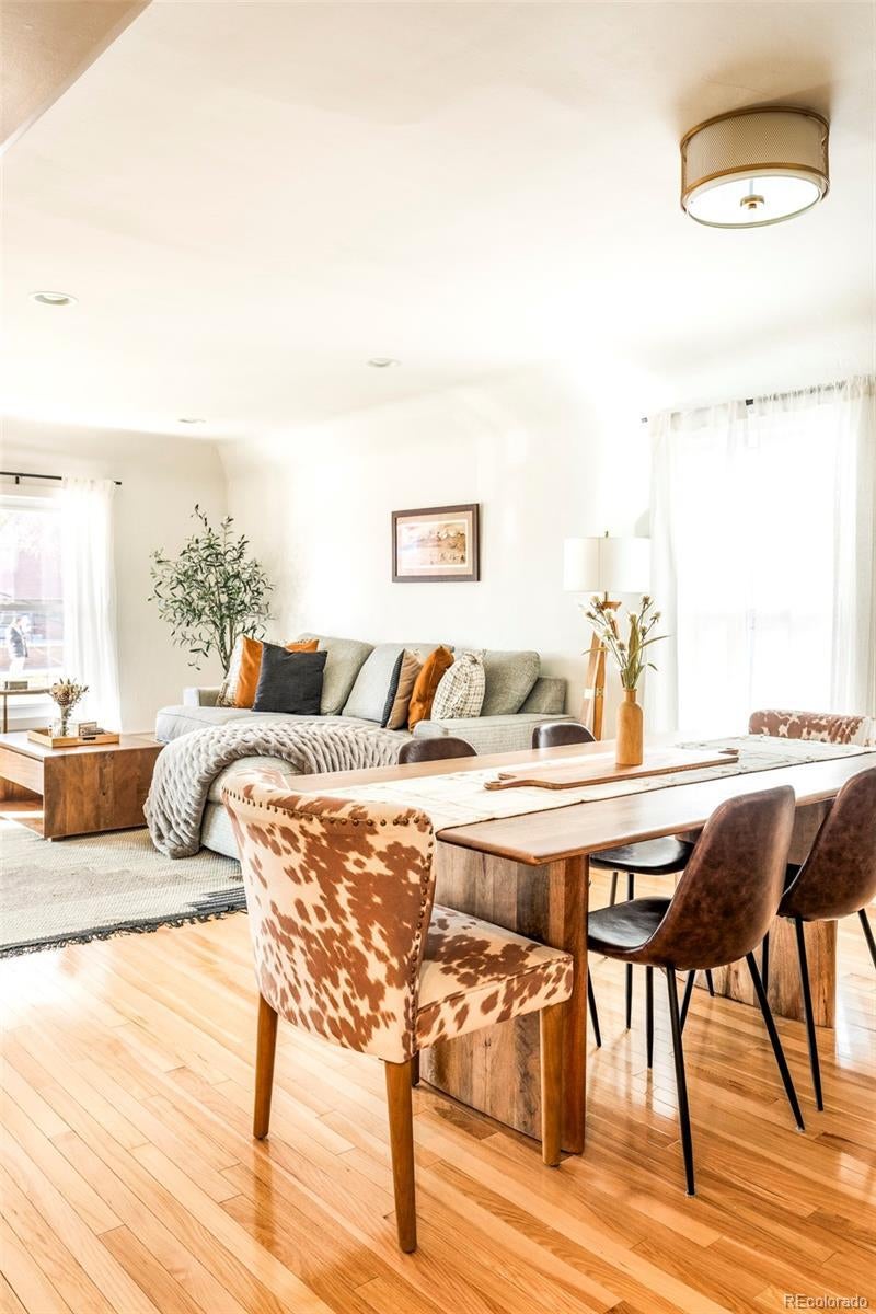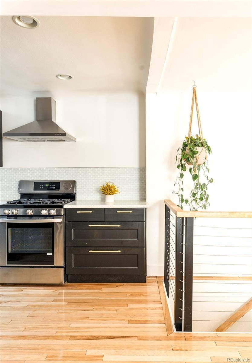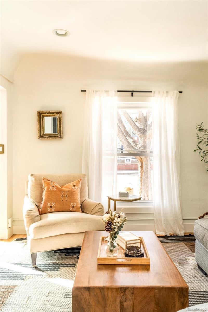 Classic charm meets city sophistication in this thoughtfully updated LoHi bungalow. A cozy entryway nook sets the tone, drawing residents into a striking living space anchored by a dramatic floor-to-ceiling tile fireplace. Hardwood floors flow seamlessly through the open-concept layout, illuminated by recessed lighting and enhanced by tall ceilings that amplify the home’s airy feel. The kitchen impresses with stainless steel appliances, a classic tile backsplash and rich cabinetry. Two spacious main-floor bedrooms present the potential for one to be used as a home office or walk-in closet. A beautifully updated full bath is adorned with designer details. The lower level hosts a third bedroom, a ¾ bath with a walk-in shower and flexible living space ideal for guests or relaxation. Outdoors, a fenced backyard oasis awaits, designed for entertaining with a private patio and raised garden beds. Residents enjoy a coveted location just moments from LoHi’s vibrant dining, shops and nightlife.