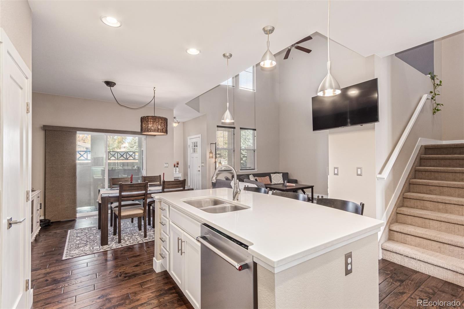 Welcome to the highly sought-after Stony Creek townhomes in Littleton! Just minutes from Denver, this inviting community offers the perfect blend of tranquility and convenience—close to shopping, dining, trails, and top-rated schools, yet tucked away in a peaceful setting. Completely updated with designer finishes, this beautiful 3-bedroom, 4-bathroom townhome impresses from the moment you step inside. Vaulted ceilings and an open floor plan create a bright, airy feel, while the cozy gas fireplace adds warmth and charm. The spacious dining area flows seamlessly into the gourmet kitchen—complete with a large island, quartz countertops, stainless steel appliances, and a generous pantry for all your storage needs. Retreat to the serene primary suite featuring a 5-piece en suite bath and walk-in closet—your personal sanctuary to relax and unwind. The fully finished basement offers incredible flexibility—ideal for a media room, home office, gym, or guest suite. Additional highlights include a pristine two-car garage with extra storage, a private patio overlooking picturesque mountain views, and well-maintained grounds. Smart-home touches like a Ring doorbell and included TV mounts add convenience and modern appeal. Don’t miss your chance to call this exceptional Stony Creek townhome your own. With its thoughtful floor plan, stylish finishes, and unbeatable location, it’s ready to welcome you home.