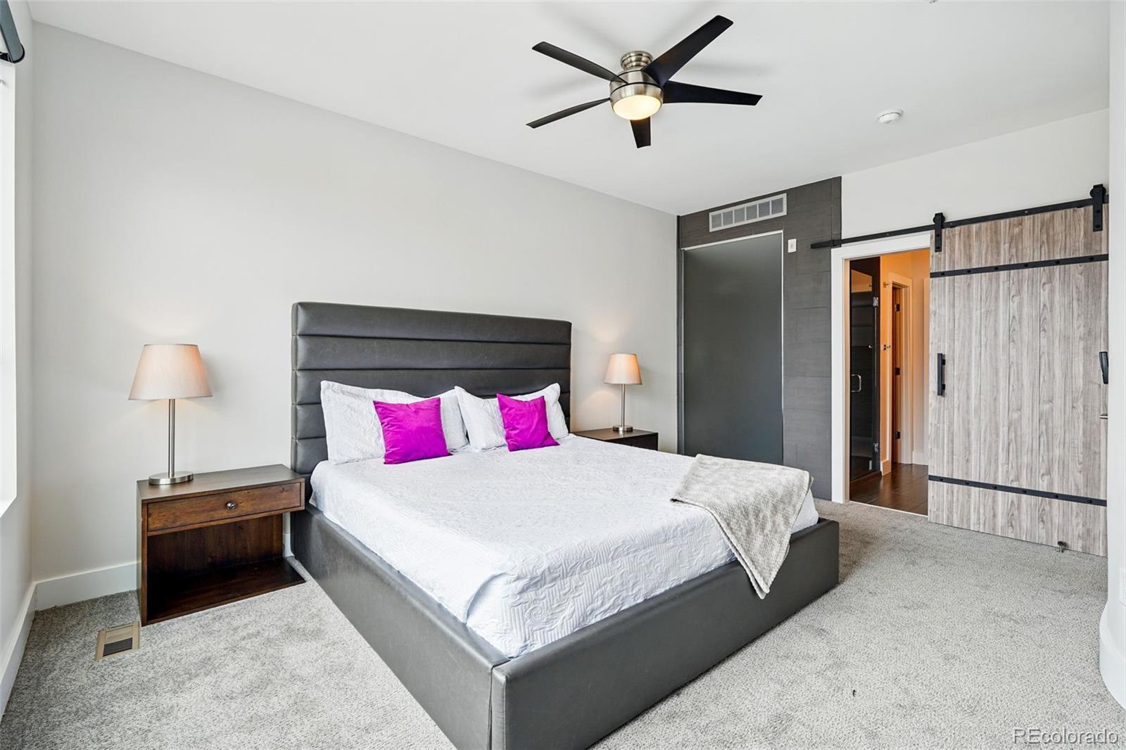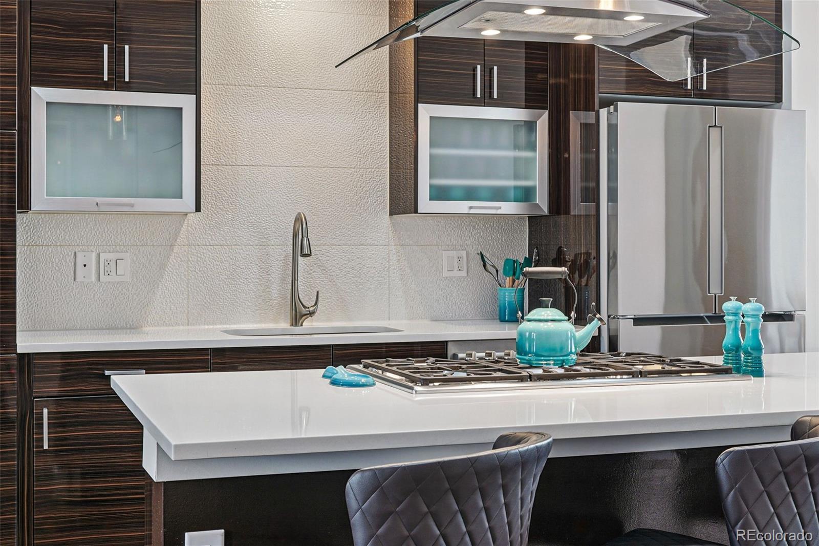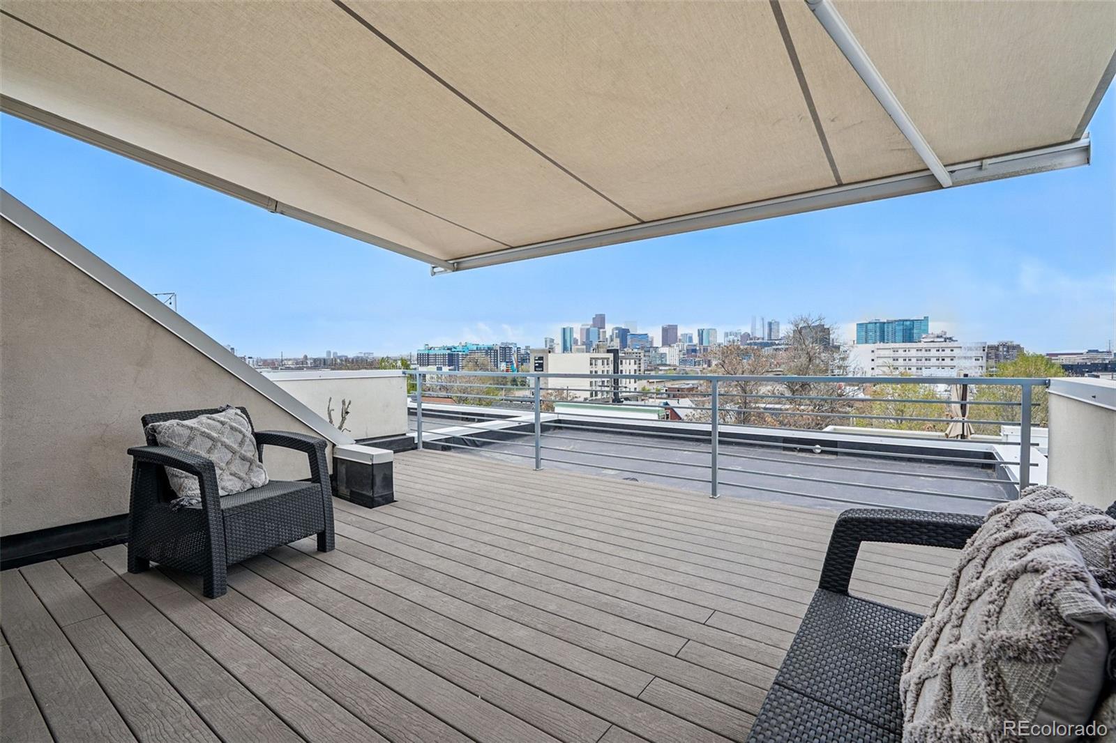 Welcome to contemporary luxury living in the heart of Denver’s vibrant LoHi neighborhood. This stunning modern townhome offers exceptional design, thoughtful upgrades, and breathtaking cityscape and mountain views—all with no HOA. Spread across four spacious levels, this home features a bright, open layout perfect for everyday living and unforgettable entertaining. The gourmet kitchen is a chef’s dream, featuring Thermadore cooktop, Bosch stainless steel appliances, quartz countertops, modern cabinetry, a walk-in pantry, and a large island ideal for gatherings. A private balcony with a gas line just off the kitchen makes outdoor cooking easy. The spacious dining room is perfect for friends to enjoy a meal together. The eye-catching living area features a sleek gas fireplace with a custom surround by local artist Steve Fast. Head upstairs to the luxurious primary suite, which includes a double shower with a translucent wall for natural light, and a walk-in closet fitted with a Closet Factory system to keep your wardrobe organized. Secondary bedrooms each offer ensuite baths—perfect for guests, roommates, or a home office setup (one on the same level as the primary bedroom and the other on the lowest level near the garage). The spacious top-floor flex space includes a wet bar, dishwasher, beverage fridge, half bath, and opens to a spacious rooftop deck with panoramic city and mountain views. The rooftop deck is fully equipped with gas and water lines and wired for sound—ideal for outdoor entertaining and that hydroponic garden you dream of. Other features include retractable screens (on 3rd floor sliding doors and in primary bedroom), motion-sensor lighting in bathrooms and closets, ceiling fans, smart thermostat, and a heated two-car garage with epoxy floors, drywall, shelving, and 220V power. Located just steps from Denver’s top dining, bars, parks, and boutiques galore, this home offers luxury, location, and long-term value—without compromise.