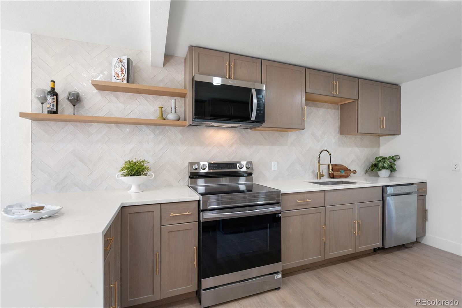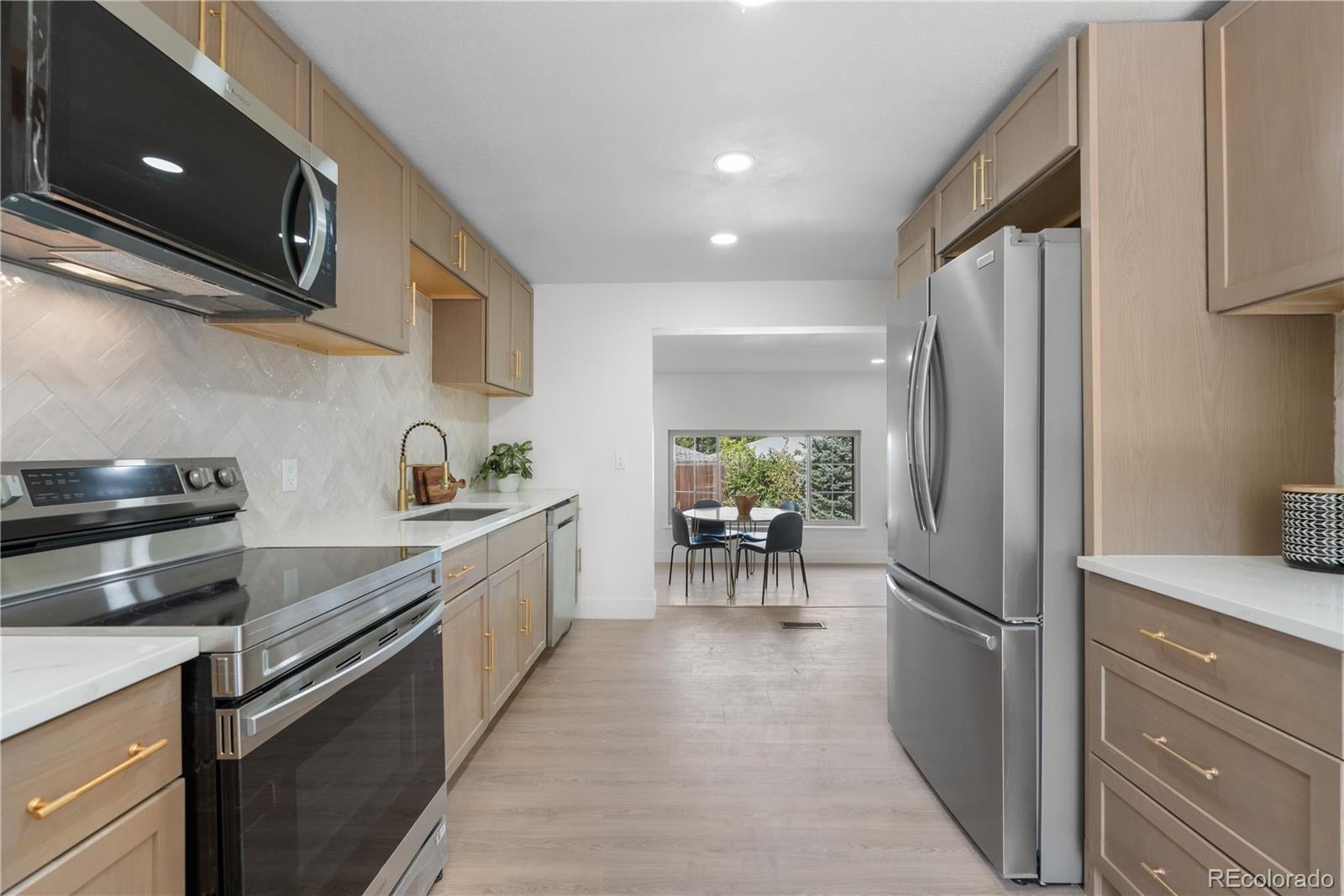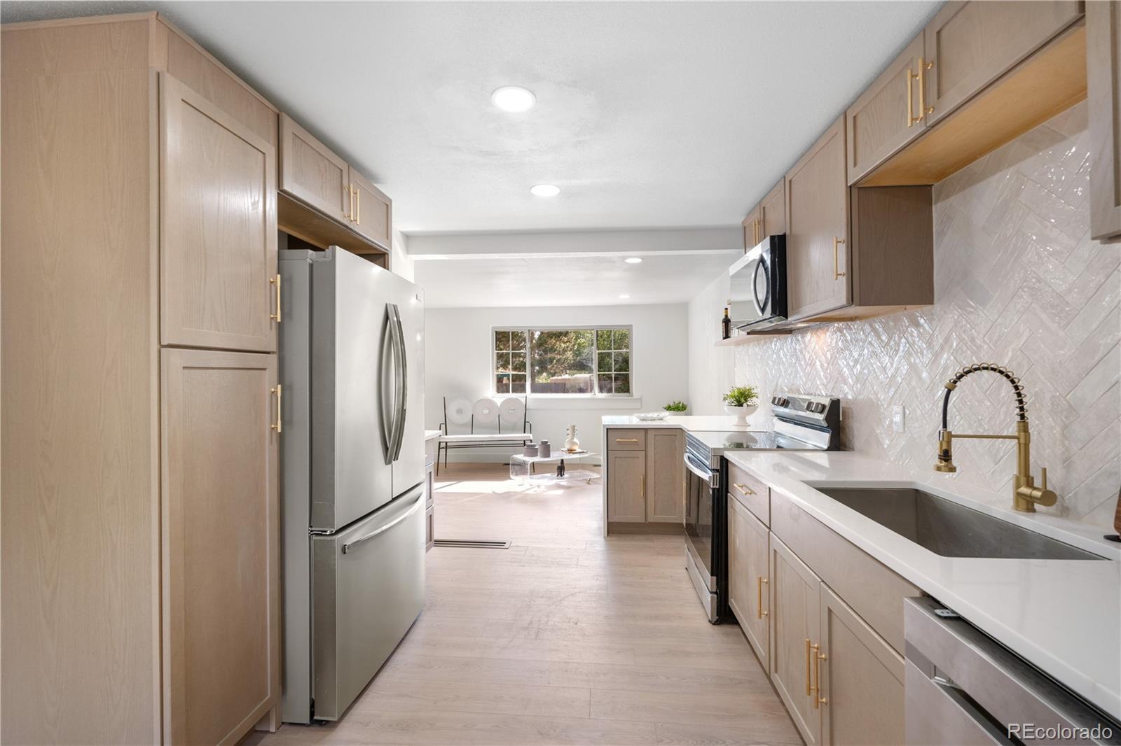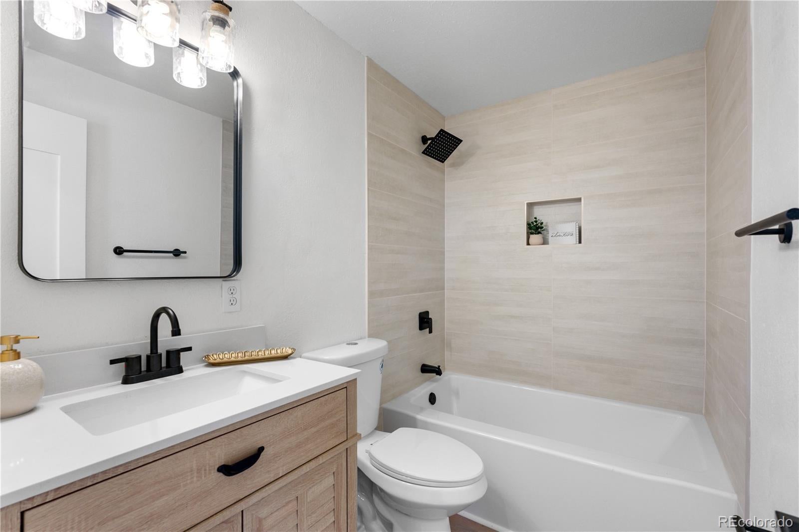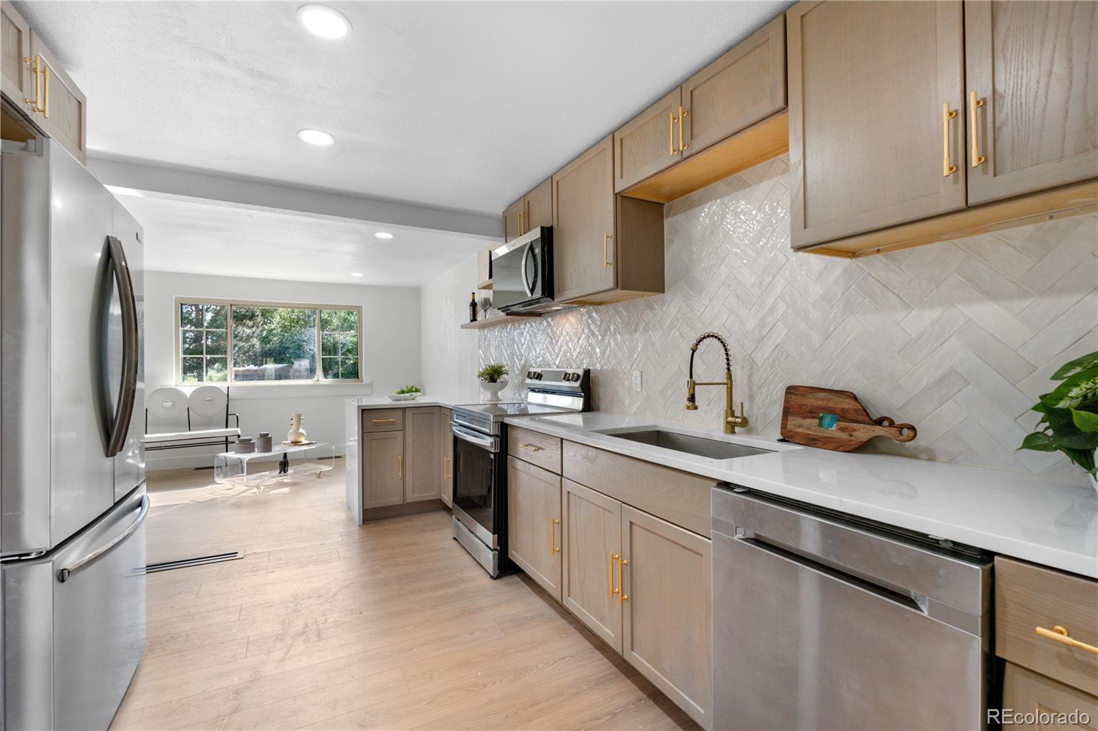 This meticulously renovated 4-bedroom, 2-bathroom ranch is nestled on the hilltop of the up and coming Sherrelwood neighborhood. Upon arrival, the immaculate curb appeal sets the stage for what lies within. Step inside to discover a host of upgrades, including fresh exterior and interior paint, newer windows and custom light fixtures that illuminate the home in a warm, inviting glow. New luxury vinyl floors grace the floors throughout the home. The kitchen is a culinary enthusiast's dream, boasting new stainless steel appliances, tall cabinets, Quartz waterfall countertops, and a freshly laid statement piece backsplash. With seamless flow into the dining and massive great room that’s flooded with natural light, this home is designed for both entertaining and everyday living. Four bedrooms offer comfortable accommodations, with two located on the main floor and two additional bedrooms in the finished basement, alongside a spacious laundry space and additional living area. Both bathrooms have been renovated, each with its own unique style, hand laid wall tile and new vanities in both. This home also boasts a new HVAC system and the backyard beckons for potential to host friends and family. This property is situated close to excellent schools, i25, highway 36 and just a quick 10 minute drive to downtown Denver, making any needed commute a breeze. This home also presents an ideal opportunity for short-term rental hosting with minimal requirements and no Denver STR tax. Don't miss your chance to own this stunning home!