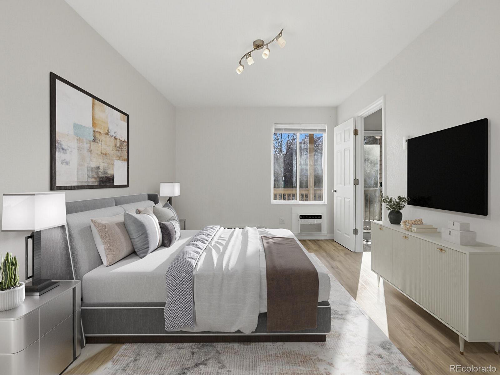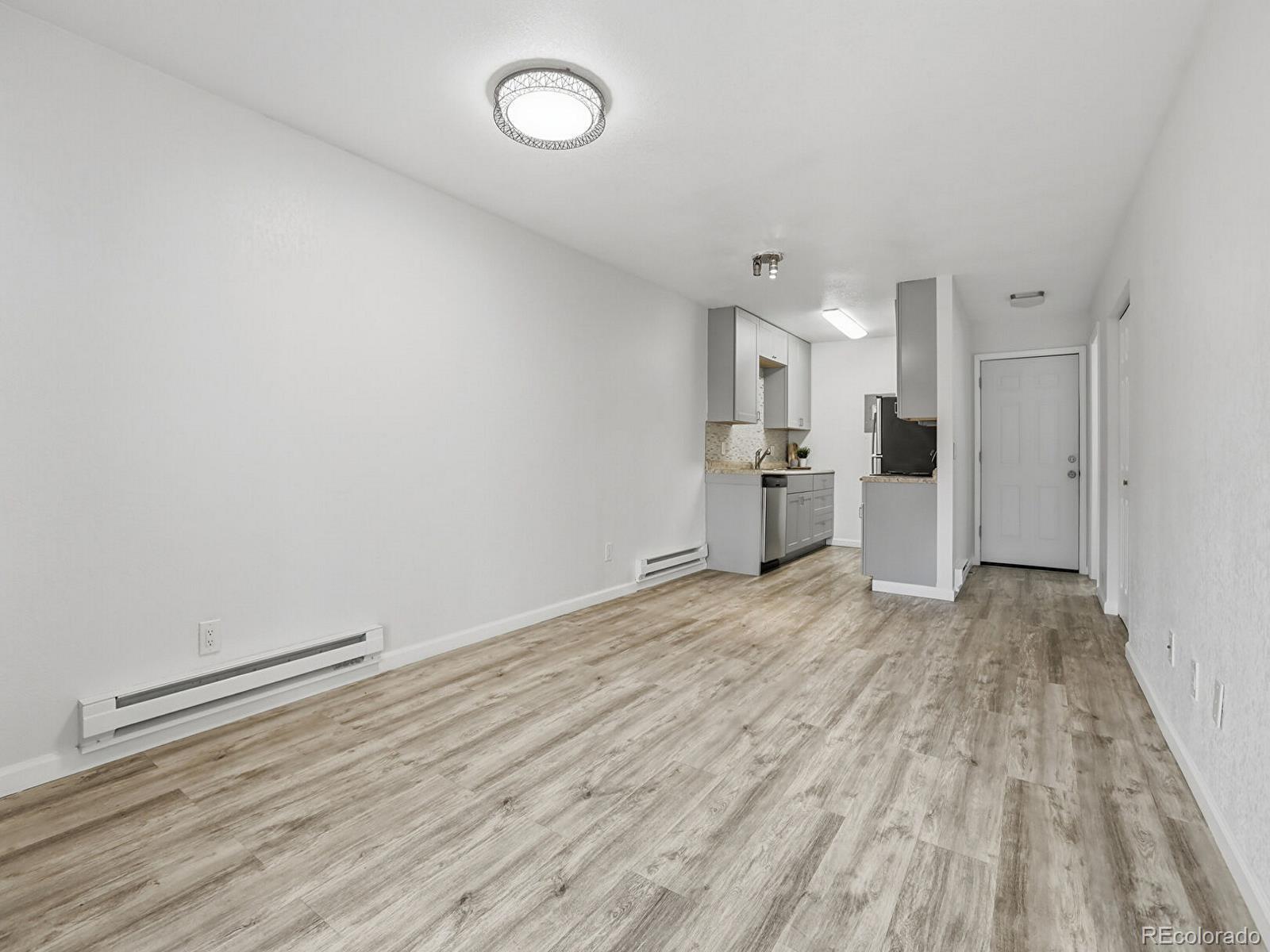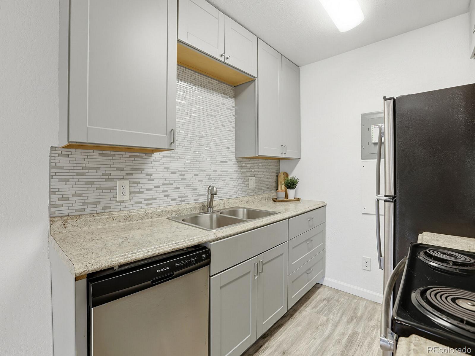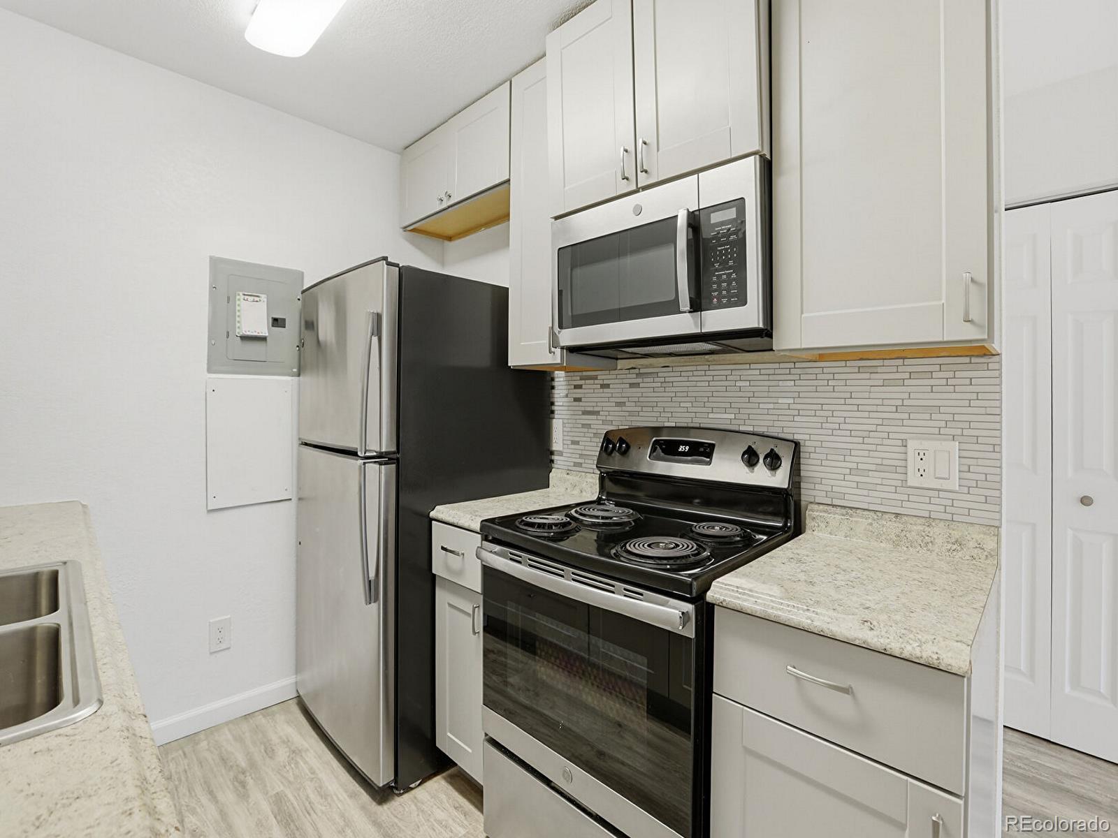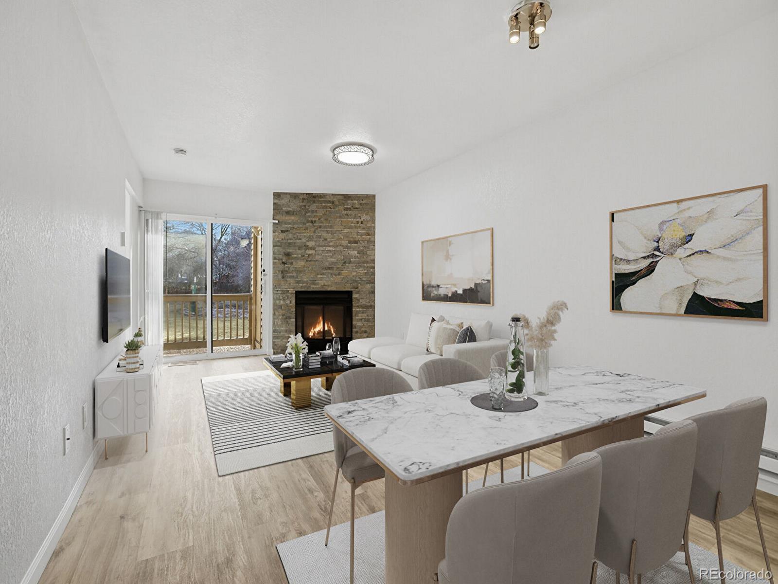 First-floor condo • Covered balcony facing greenspace • Near light rail and I-225 Updated 1-bedroom, 1-bath condo at 14700 E Kentucky Dr, Unit 513, in Aurora. First-floor unit with a bright, open floor plan and large great room featuring a wood-burning fireplace. The great room opens to a spacious covered balcony overlooking landscaped greenspace, with an additional private storage closet. This unit offers extensive, professionally completed interior improvements not commonly found in the community. Popcorn ceilings were professionally removed ; documentation available. All drywall throughout the unit is new. The electrical system within the unit has been fully updated. Additional updates include new kitchen cabinets, stainless steel appliances, laminate flooring, interior paint, lighting, updated vanities, and in-wall A/C. Kitchen offers ample counter space and storage. The bedroom includes multiple closets and a full bath. In-unit washer and dryer are included. Quiet location on the backside of the community. Community amenities include an outdoor pool and dog park. Convenient access to light rail, highways, shopping, dining, parks, and major employment centers. Quick access to I-225 provides efficient routes to Denver International Airport and surrounding destinations. Includes video slideshow tour. Immediate possession available.
