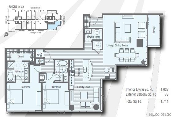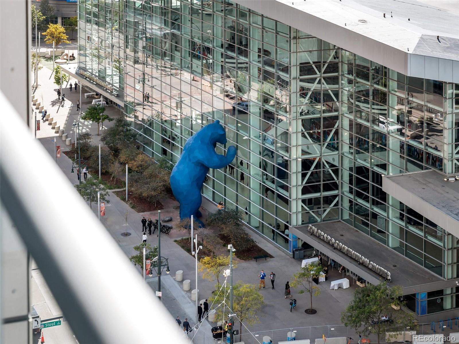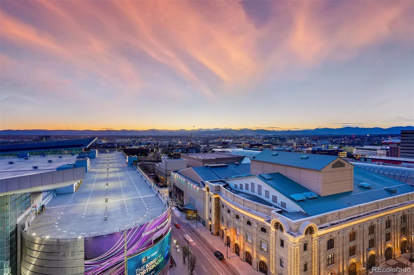 SPIRE CORNER RESIDENCE WITH SPECTACULAR VIEWS! Come home to this contemporary condo perched 17 stories above Downtown Denver and be greeted by floor-to-ceiling windows that wrap around the residence and frame jaw-dropping views of the majestic Rocky Mountains, Mile High Stadium, the Downtown Denver skyline, Elitch Gardens, and beyond! Those floor-to-ceiling windows drench this home in natural light and shine onto newly-replaced hardwood flooring! The loft-style wide-open floor plan includes 1,639 square feet of living area with 2 bedrooms, each with its own ensuite bathroom, newer cozy carpeting & motorized shades throughout. Primary bedroom features a custom closet system. The 2nd bedroom has a built-in Murphy Bed--great to also serve as a quiet workspace. The chef’s kitchen boasts granite countertops, stainless steel appliances, and a large island. Adjacent to the kitchen is a bonus room that works well as a media room, dining room, den, or a work-from-home space. After a long day, unwind with a glass of prosecco on your private balcony and take advantage of our Colorado climate as the sun sets behind the Rocky Mountains and the weather moves in from the West. View this home again at night to appreciate the views! Also included: 2 parking spaces & 1 storage space in the attached garage. Immerse yourself in the vibrant SPIRE community, complete with LEED certification, a pool, hot tub, health club, multimedia lounge, and theater. Your dog will love the dedicated dog park, and the grilling area is perfect for entertaining. Benefit from 24-hour courtesy desk service, guest suites, and a modern access control system. SPIRE has super-fast internet-1 gig dedicated to each condo, along with DirecTV HD-DVR with HBO, Showtime + Cinemax. Very well-maintained building. SPIRE is in the heart of downtown, surrounded by the very best restaurants and a mere stroll to the performance venues and sports arenas. Embrace the downtown lifestyle and make this SPIRE residence your own.