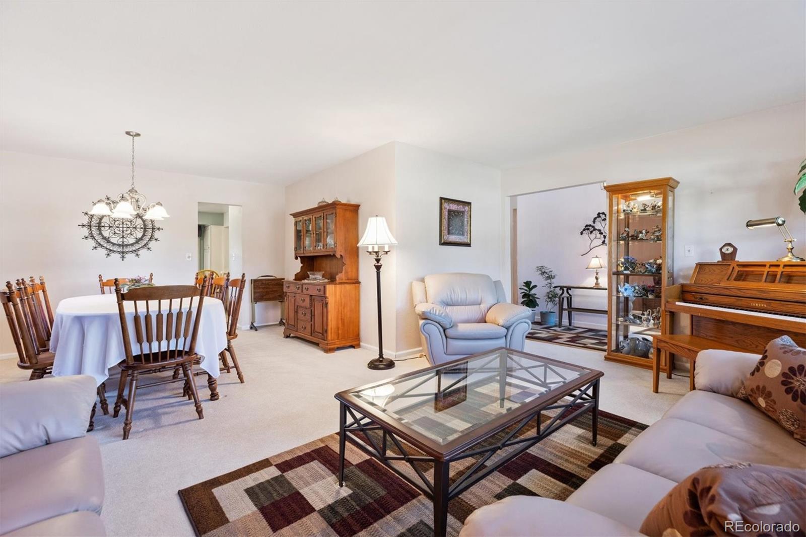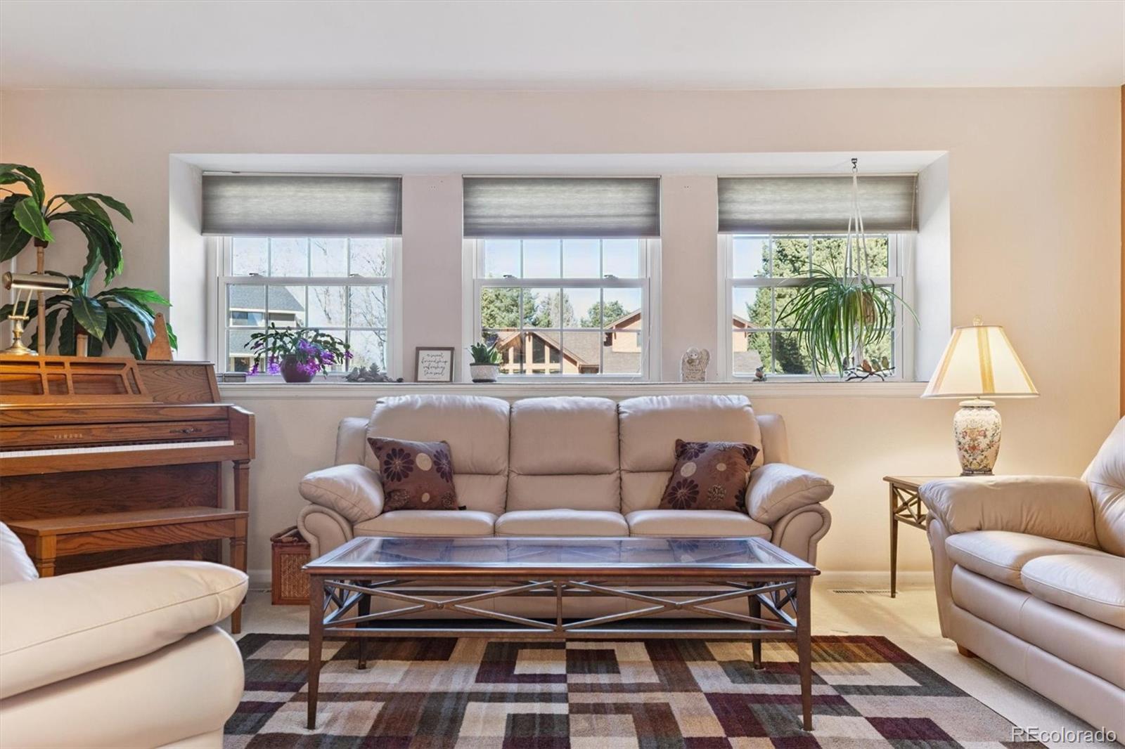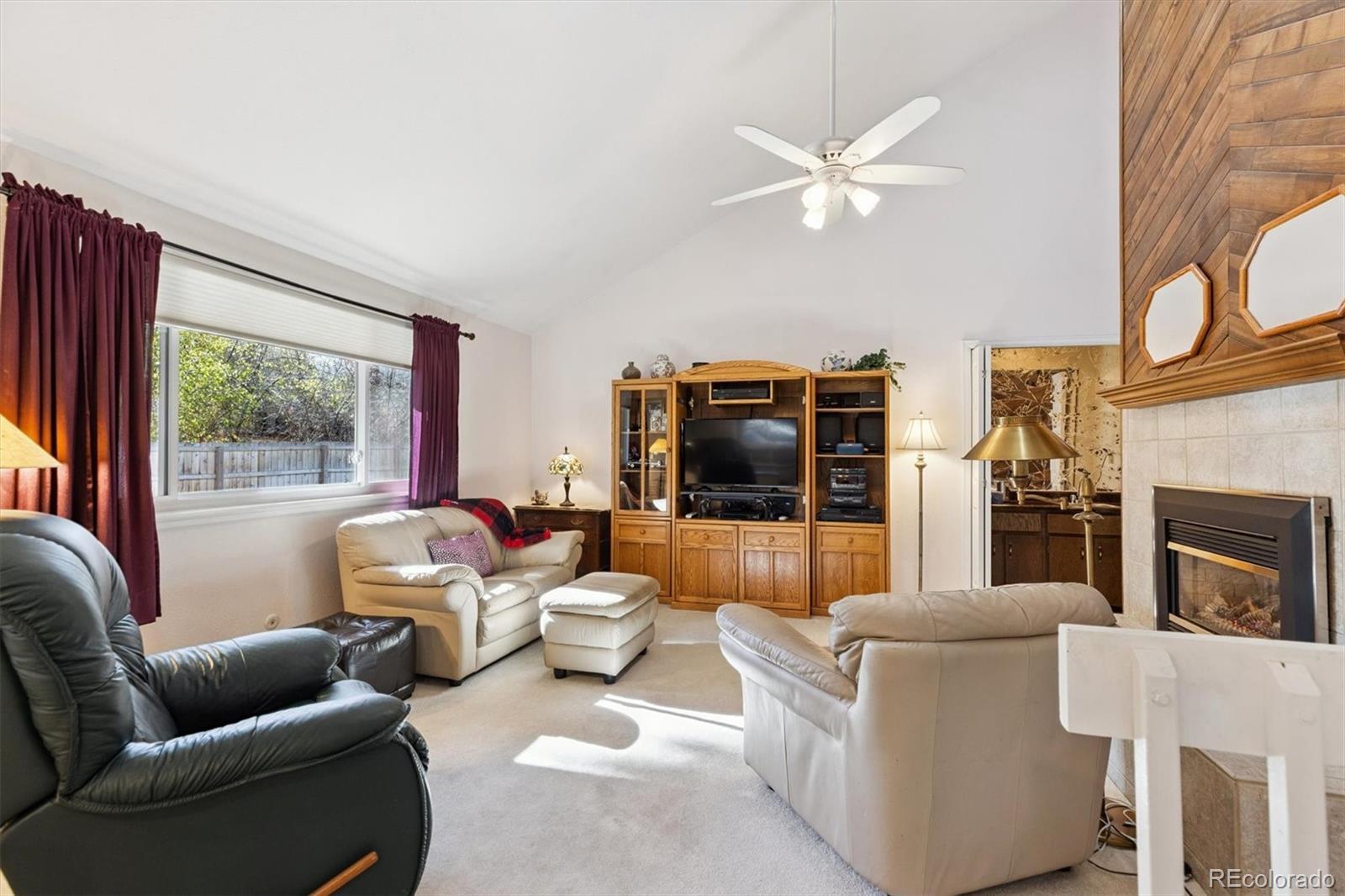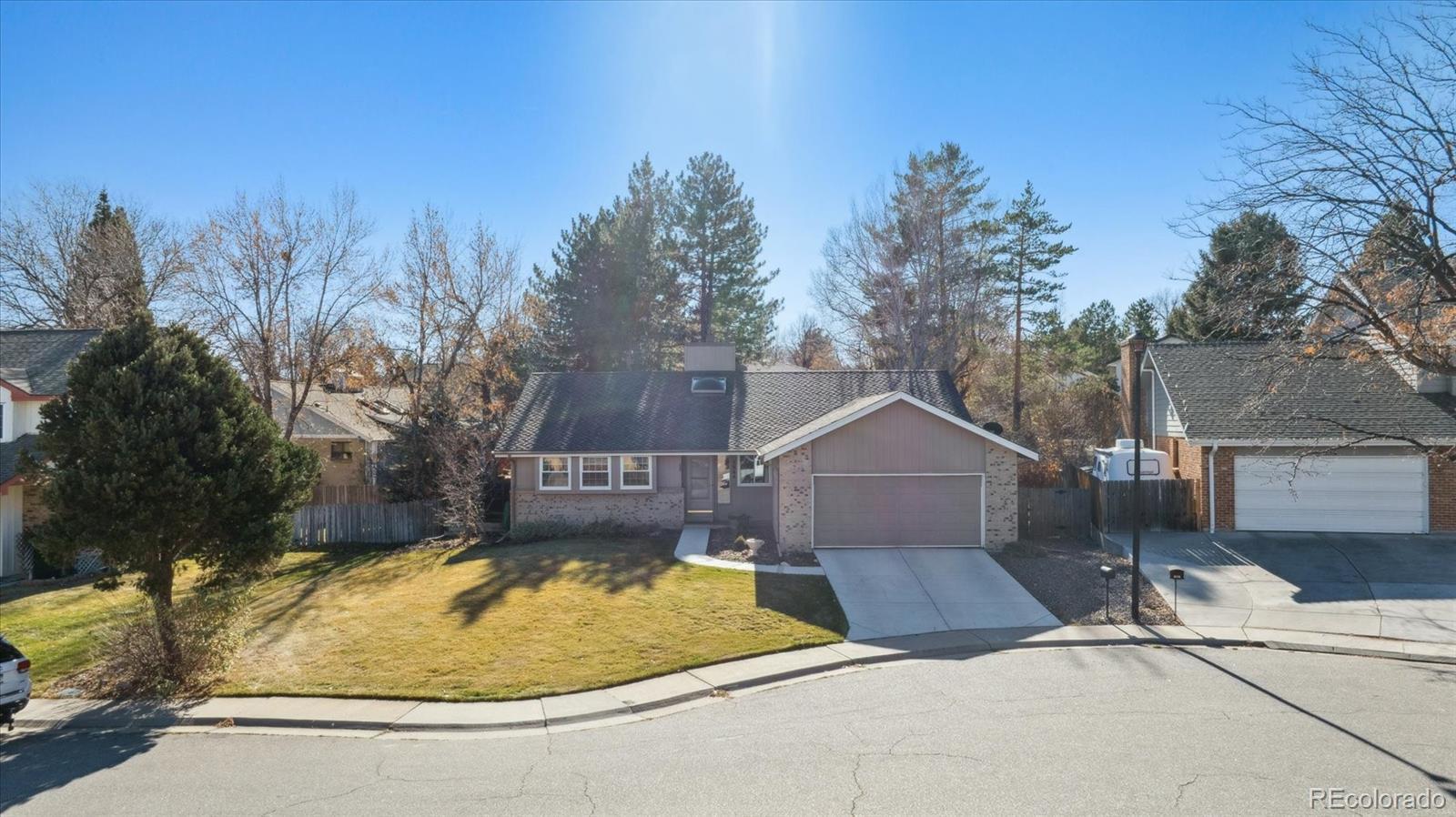 Don’t miss out on this perfectly maintained ranch home, located in one of the most sought-after subdivisions; The Highlands 460. This popular, open-style ranch is in a private cul-de-sac location. Step inside to the bright and cheery wood floor entry with the decorative design of the beautifully showcased fireplace. Just off the entry, enjoy your private and spacious living room with updated plush carpet and plenty of light to welcome you each day. Adjacent to the formal living room is your dining area with plenty of space for holiday dinners or for many of your favorite guests to gather. In the back of the home is the clean and fresh white on white kitchen with roomy storage cabinets, a large separate pantry and an open eat-in area. Enjoy making your daily meals, while gazing out of the glass sliding doors onto your large private, covered patio. The backyard is private and spacious with huge mature trees and a beautifully manicured yard. On the other side of your kitchen is the open, vaulted family room with wet bar, gas-log fireplace, upgraded carpeting and light and bright windows. New Furnace installed in 2025. Down the hallway is the private and roomy primary suite, the double sink, en suite bathroom as well as two additional bedrooms and guest bathroom. But that’s not all, the downstairs basement has a partially unfinished area to make your own, along with finished bonus rooms, an additional bathroom, storage space and the laundry room. This home has been meticulously maintained and is ready for you. Upgrades include double pane windows throughout, plush carpeting and more! Walk or drive to convenient shopping, playgrounds, parks, walking trails, dog parks and fabulous restaurants. Tee off at the South Suburban Golf Course located right across the street. This beautiful home, perfect location and wonderful community, has so much to offer. Make this your home choice today!