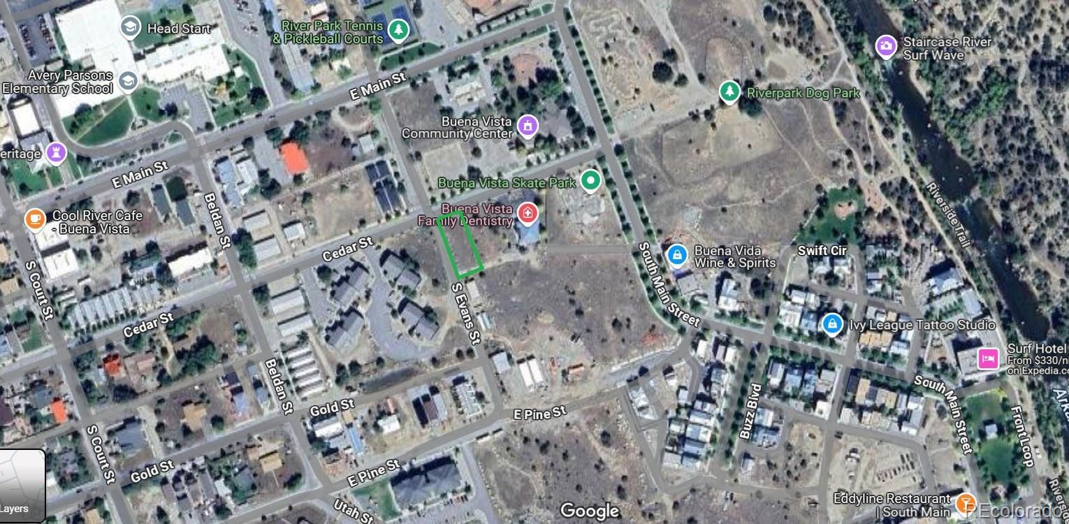 Prime Mixed Use vacant land located across the street from the Buena Vista Community Center, at the entrance to South Main, and just 1,100 feet from the Arkansas River. Lots 1-2 are on the corner of Cedar St and Evans St. Each Lot measures 25’ wide x 125’ deep on a block that will one day be a big part of the connectivity from the downtown business district to South Main and the Arkansas River. The E. Main St business district and South Main are expanding, and this property is ready for development. The Boys & Girls Club are planning to build a brand new 22,000 sq ft facility across the street from this property. This property is zoned MU-2 (Mixed Use 2), which allows for a variety of uses including: residential, commercial, mixed-use, etc. Alley access allows you to maximize your investment and build a garage with ADU. This property is an easy flat walk to coffee, restaurants, music, shops, community events, the river, trails, recreation, and nightlife.
