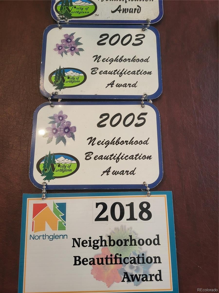 This family home could be your next dream home to live in for the rest of your life. This tri-level home has four bedrooms, three bathrooms, main floor living room, kitchen with stainless steel appliances. Hardwood floors on the main floor. The lower family room has gas free standing stove. In the basement, you have plenty of storage. The outside has a flower garden on the north side, extra driveway parking, storage shed and sprinkler system. This home has received many awards from the City of Northglenn for Neighborhood Beautification in 1998, 2002, 2003, 2005, 2018. The home was awarded Yard of the Month in July 2018