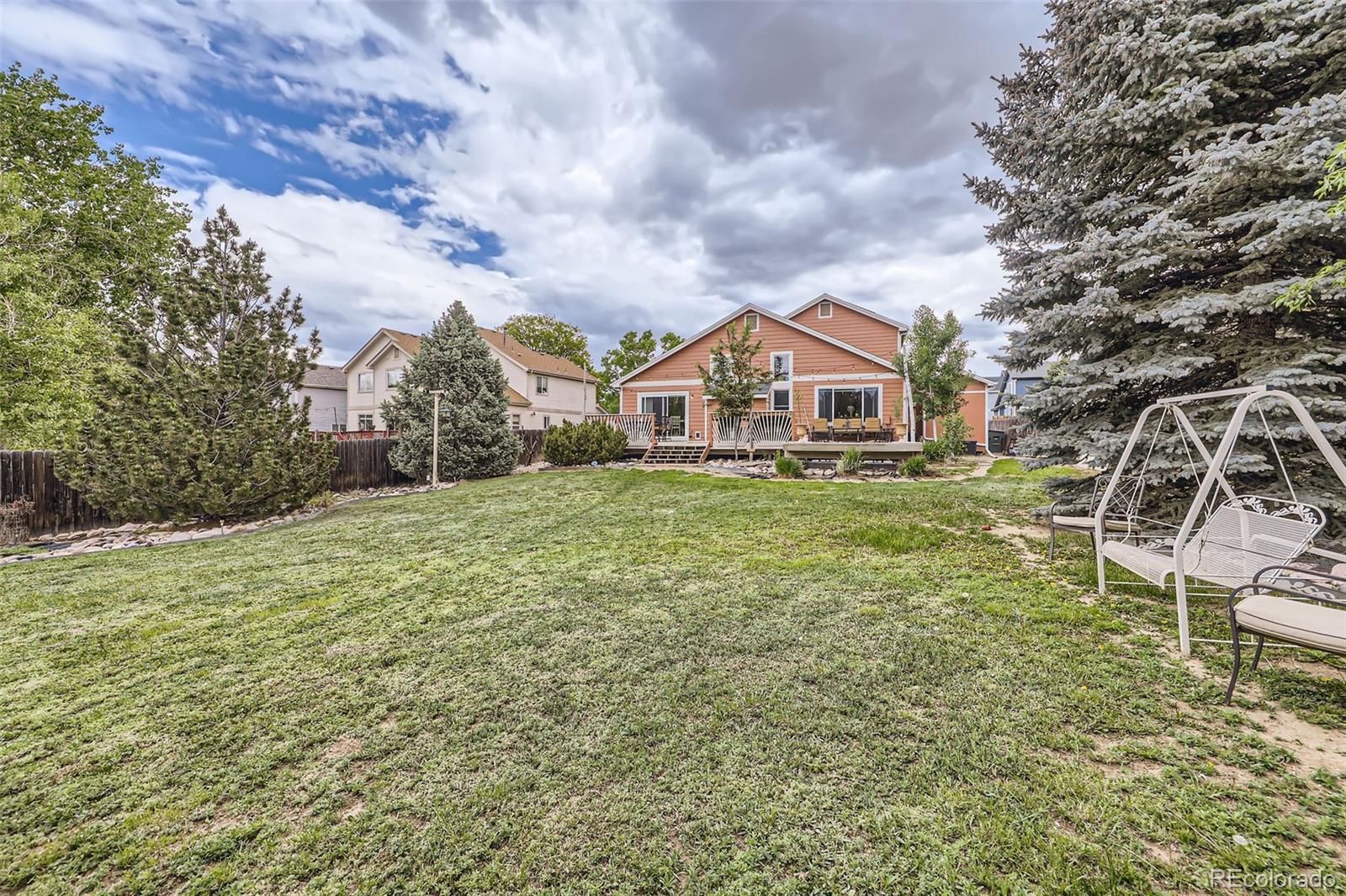 Welcome to your dream home in Thornton! This stunning 5-bedroom, 4-bathroom residence offers 3,785 square feet of beautifully designed living space on a generous 0.25-acre lot — perfect for families, entertainers, or anyone craving comfort with room to grow. Step inside to discover soaring high ceilings and an open floor plan that creates a bright, inviting atmosphere throughout. The family room features a cozy fireplace, ideal for relaxing evenings or hosting guests. The beautiful kitchen with new granite countertops flows seamlessly into the living and dining areas, making it the heart of the home. Retreat to the private and spacious primary suite with a luxurious bathroom, or head downstairs to the finished basement where you’ll find 2 large bedrooms with walk-in closets and a bar — a fantastic bonus for entertaining friends or enjoying a quiet night in. On the second floor you will also find an additional two bedrooms and a full bathroom. With five generously sized bedrooms and four full bathrooms, there’s room for everyone to live comfortably. Outside, the large lot provides plenty of space for outdoor living, gardening, or future customization. Enjoy grilling on the large deck or watching Fido run around in the huge backyard. New roof (less than 1 year old). Located in a desirable Thornton neighborhood close to parks, schools, and shopping, this home truly has it all.