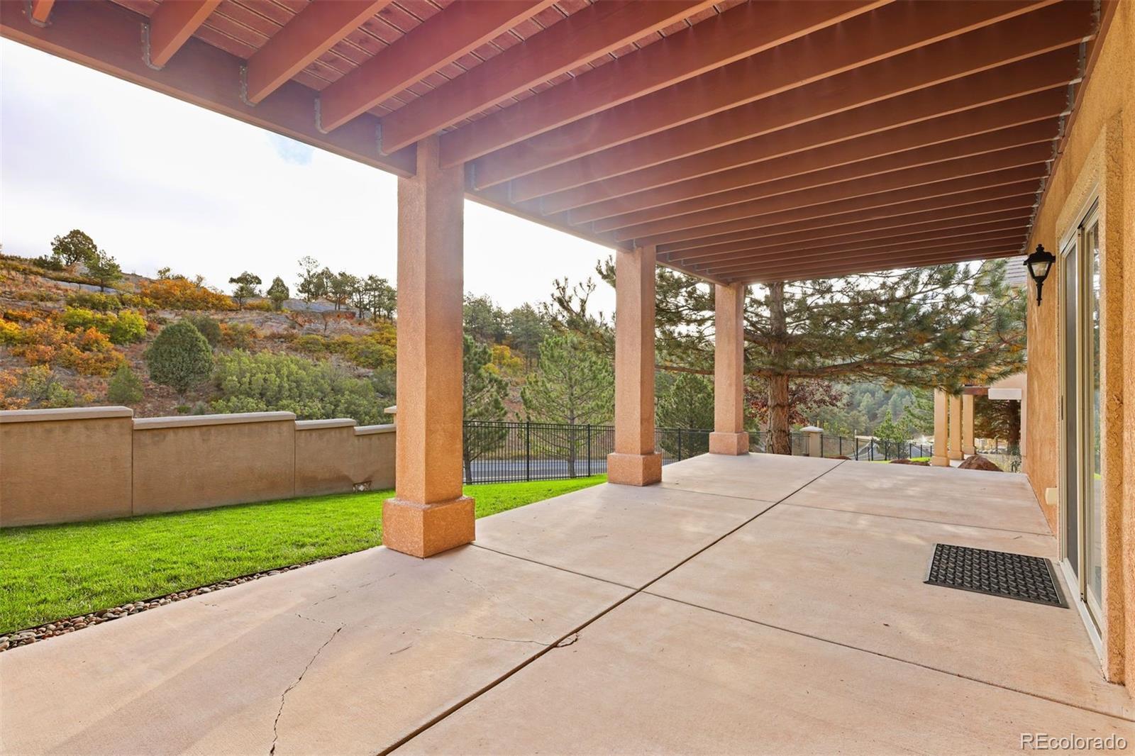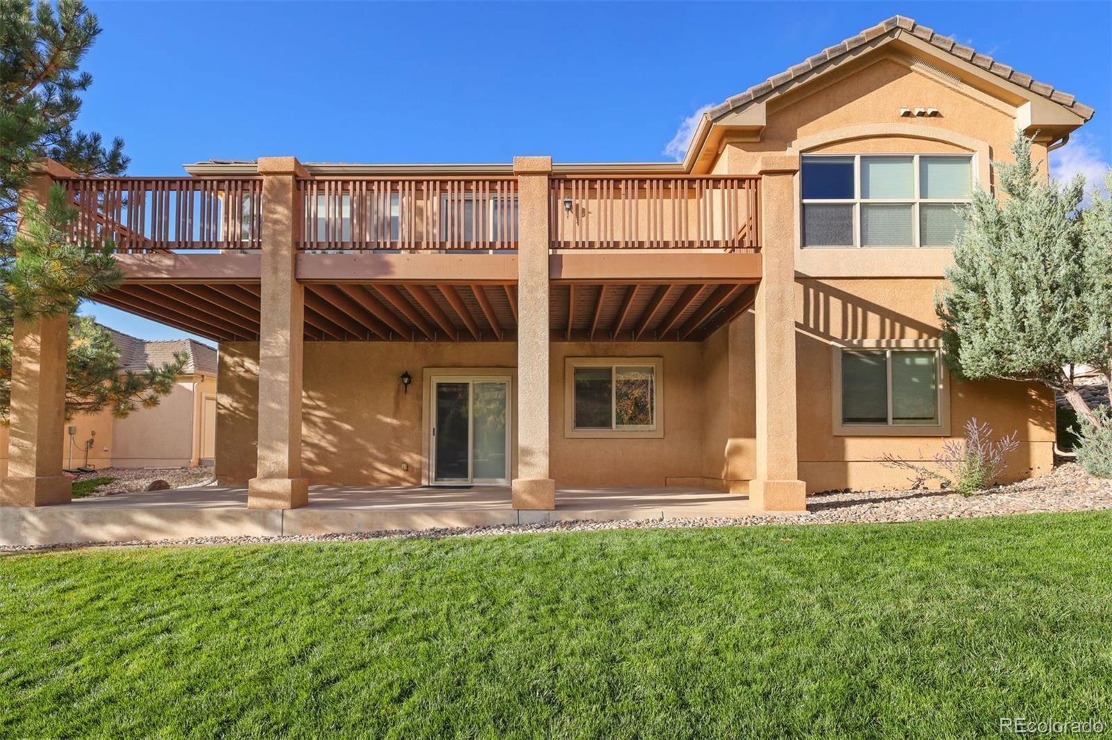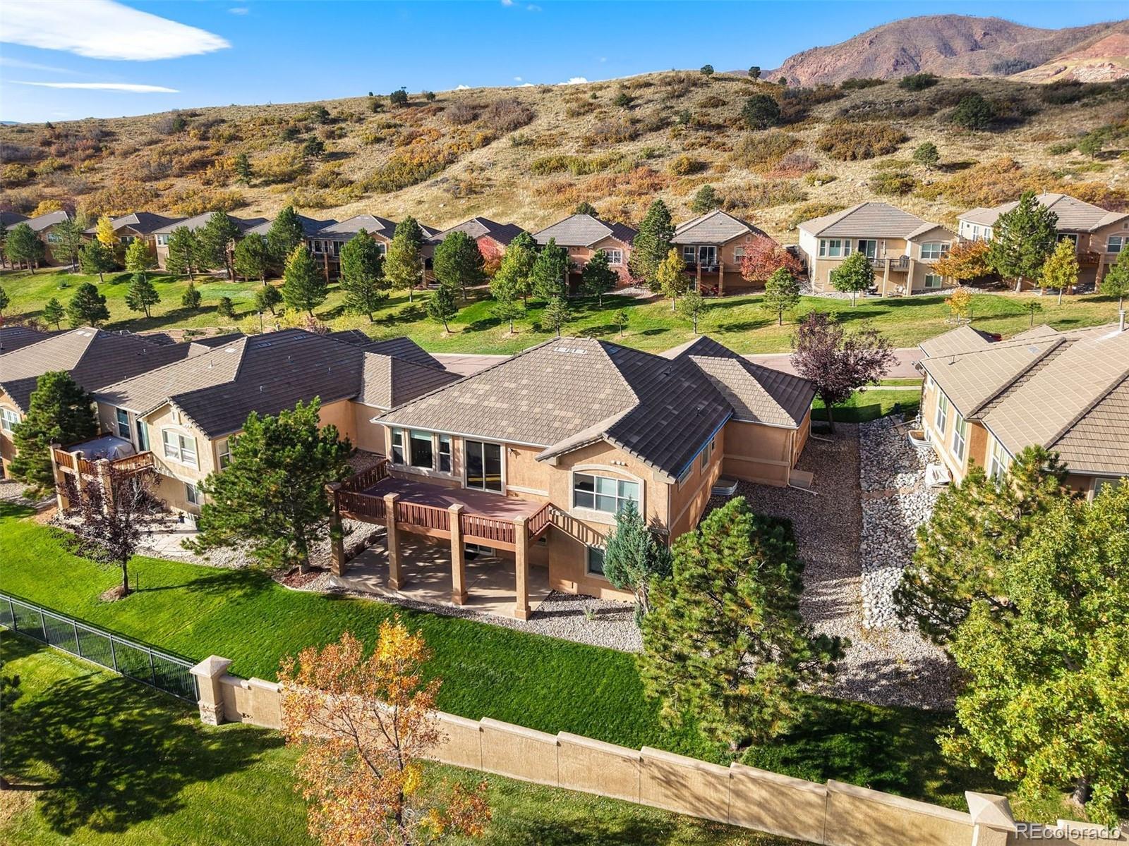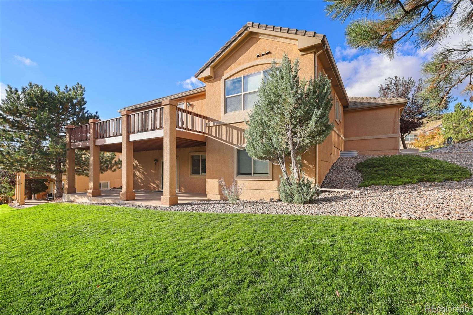 Stunning Ranch Style Home Backing to a Scenic Bluff in Sought-After Peregrine. Welcome home to this beautifully appointed ranch-style retreat offering four bedrooms, three bathrooms, and breathtaking views from every angle. The inviting kitchen features gleaming hardwood floors, granite countertops, stainless steel appliances including a gas range, a walk-in pantry, and an adjoining dining space perfect for everyday living or entertaining. The open-concept family room showcases a cozy gas fireplace, hardwood flooring, and seamless flow to the dining nook. The main-level primary suite is a true haven with a luxurious 5-piece bath featuring a walk-in shower and jetted soaking tub. Step out from the main level to the enclosed composite deck and take in the serene scenery of the bluff directly behind the home. A main-level office provides the perfect space for the stay-at-home professional. Downstairs, the finished walk-out basement offers three spacious bedrooms, a full bath, and a large recreation room with a wet bar, ideal for entertaining or movie nights. Walk out to the lower patio and enjoy the private backyard surrounded by natural beauty. Located in the highly desired Peregrine neighborhood, this home is within the award-winning Academy District 20 schools and just a short drive to the Air Force Academy, shopping, restaurants, and entertainment. Experience the perfect blend of comfort, elegance, and Colorado living at its finest.