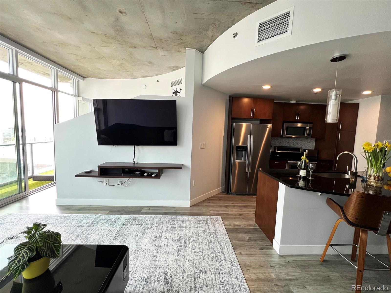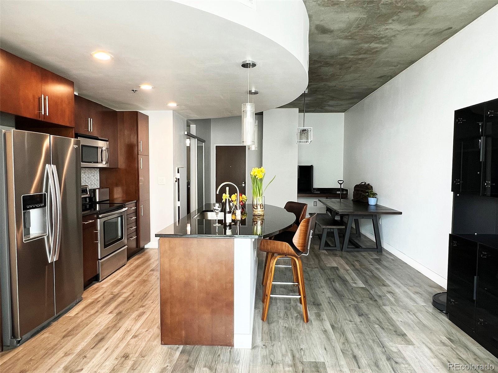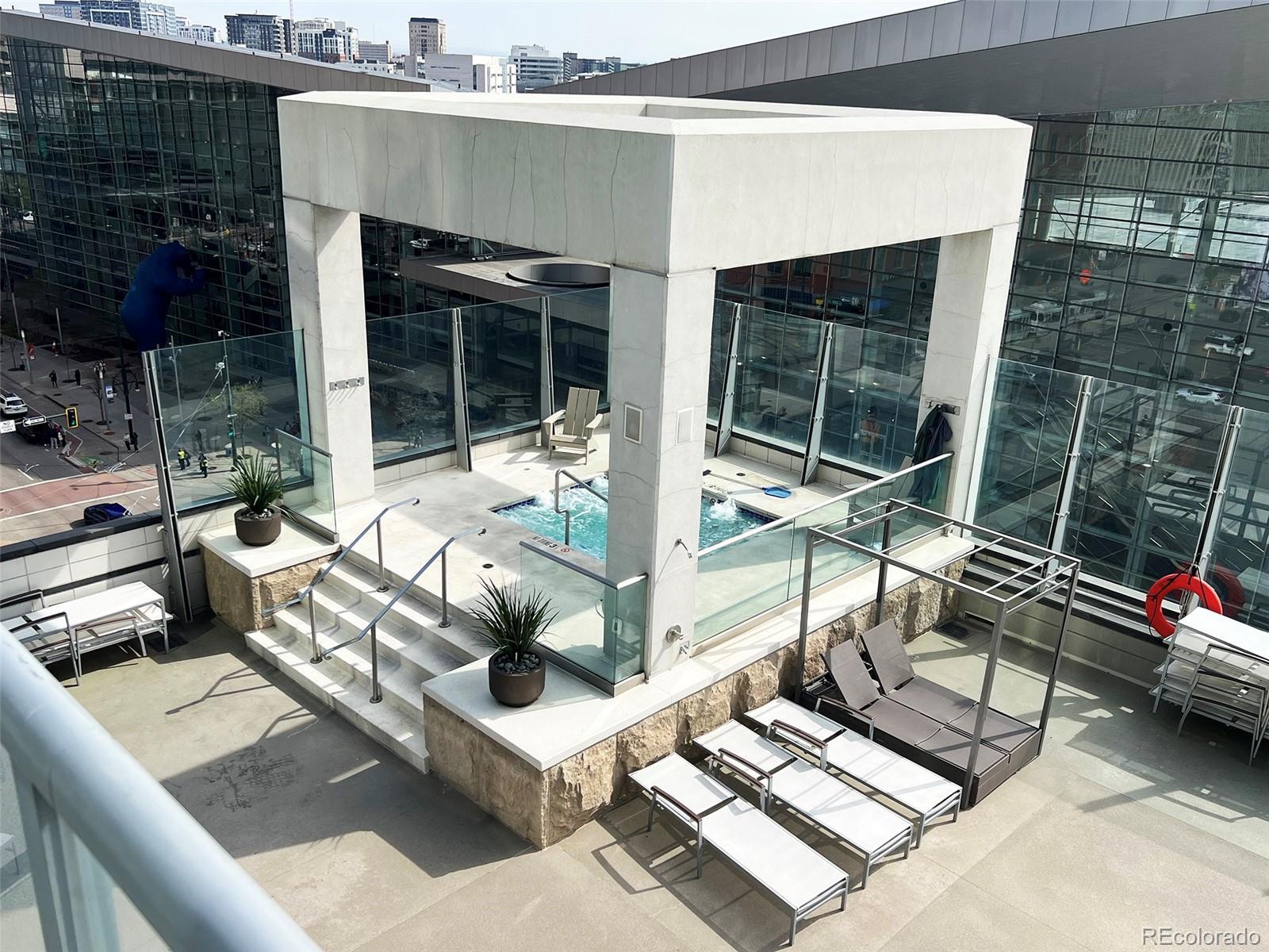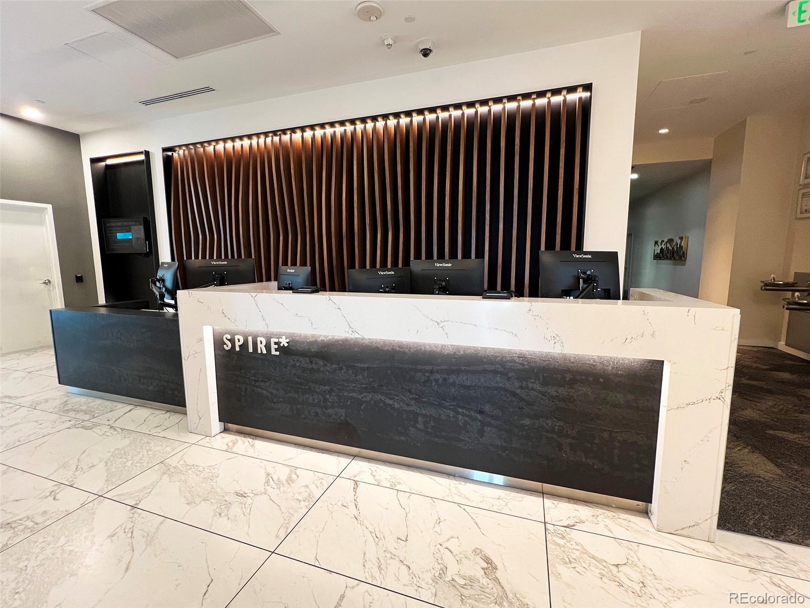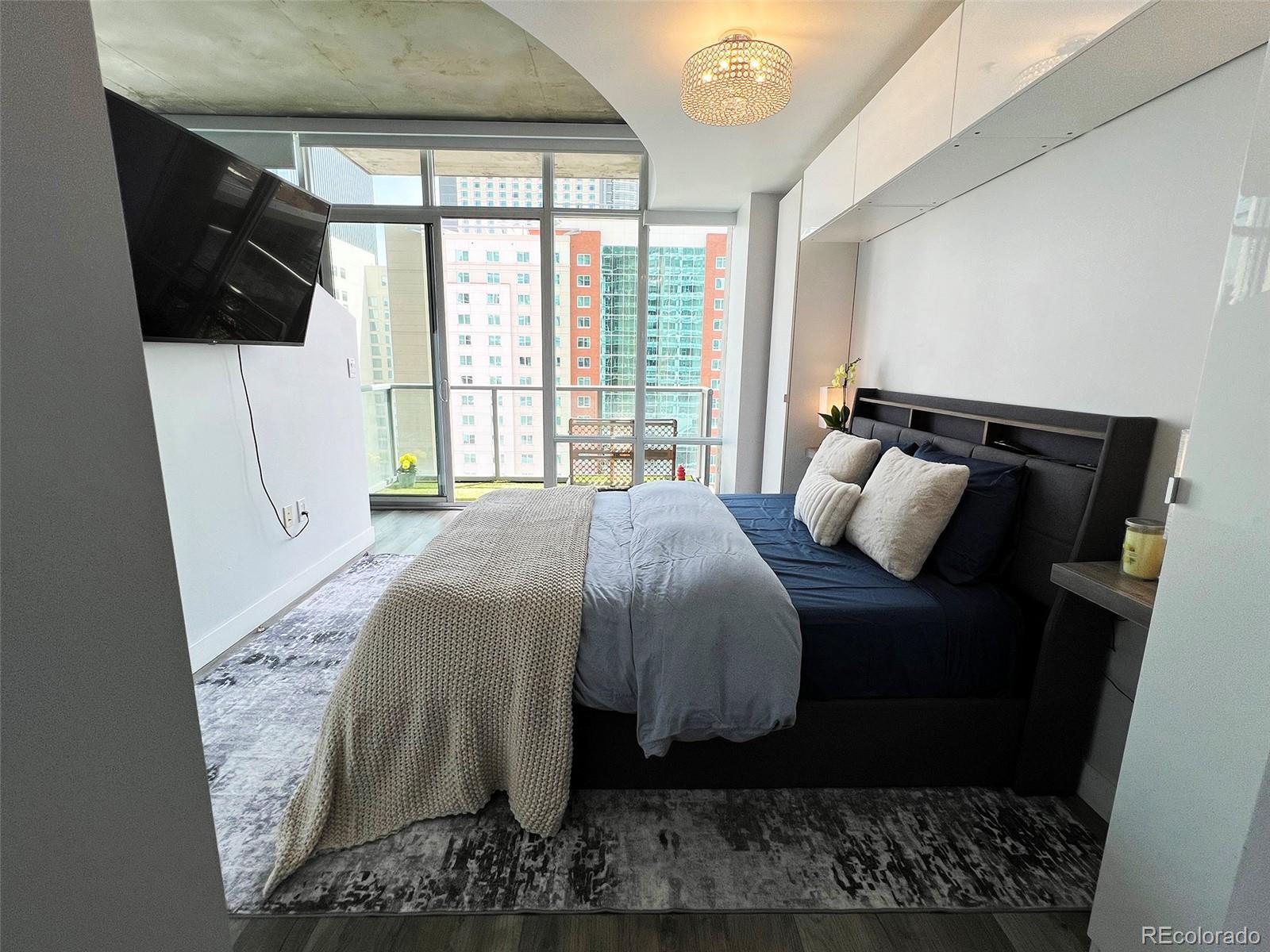 This modern condominium on the 16th floor of Spire is well appointed with flat front cabinets, gorgeous granite countertops, chic lighting, beautiful engineered hardwood floors, floor-to-ceiling windows with black-out roller shades, and sculptural architecture with concrete accents. Experience spectacular city and mountain views from the attached dog-friendly balcony. This condo comes with a deeded parking spot in the Spire garage and a caged storage unit. And, you'll be completely spoiled by the Spire's amenities! There are 24-hour concierge and security desks, year-round swimming/tanning pools and a hot tub, cabanas and chaise lounges, a movie theater, numerous televisions, a pool table, cool and comfy lounges with a variety of work spaces, conferencing tables and kitchenettes, drink and water bottle stations, multiple patios with stellar views, bbq grill stations, a fire pit, a nicely equipped 24-hour fitness center with free weights and machines, electric vehicle charging stations, bicycle racks, a private outdoor mini dog park, a community library, mail and package centers, trash and recycling chutes, and more. You'll love having Downtown Denver as your backyard where you can visit cultural attractions, sporting events, shopping sites, fine dining locales, casual eateries, bars, nightlife, concerts, and more... Many within walking distance. And, both the bus and light rail systems are close and convenient, as are a variety of scooters and e-bikes to rent for making your way around. The Denver Center of Performing Arts and the Museum of Contemporary Art are just down the street, and Union Station is also a hop, skip and jump away for catching the Ski Train to the mountains or the A-Line to Denver International Airport. Plus, Spire also allows rentals of 30 days or longer, so in addition to making a wonderful home, this condo could be your income property! Come and see us, the Big Blue Bear in front of the Convention Center will be waiting to greet you!