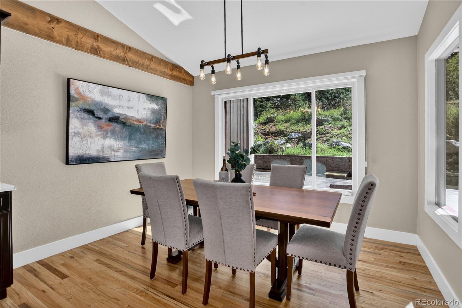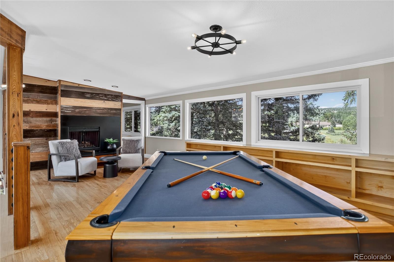 MIDCENTURY MODERN MOUNTAIN HOME! Beautifully remodeled 4 bed plus office/den, 4 bath, 4,225 sq ft mountain home in the coveted & convenient Evergreen Meadows neighborhood. Private, wooded 2 acre property with lovely meadow & Turkey Creek views. Light & bright open concept home with main floor living, large loft & walk-out basement. Many custom & designer touches make this beautiful home unique & charming. Fantastic renovations including hardwood floors, staircases & railings, kitchen, powder room, fireplaces, wood beams, shelving, laundry, office, wood walls & large deck. Worry free living with new & newer upgrades including Anderson windows, Generac whole house generator, well, furnace, water treatment system & hot tub. The living room showcases designer fireplace & ample windows to take in the views. Gorgeous gourmet kitchen with custom cabinets, white quartz, waterfall island, designer tile, wine fridge, subzero refrigerator & wolf stove. Open floorplan flows into dining room & onto large deck for entertaining & enjoying the views. Main floor primary suite with deck access & 5 piece ensuite bath complete with jetted tub & walk-in closet. Additional 2 bedrooms, full bath, den, powder room & laundry room (washer & dryer included) are conveniently located on the main floor. The open loft with custom fireplace is the perfect game room with pool table included. Office with built-ins (could be 5th bed) is also located. The walk-out basement is great for multigenerational living. The family room features custom built-in shelving & access to lower patio. Lower bedroom (closet in bathroom), full bath & versatile bonus room for gym, crafts or storage complete the lower level. Fenced yard for your furry friends. Storage shed & newer hot tub. Attached 2 car heated garage. Septic is 3 bedrooms - 6 people. County maintained roads & school bus route. Enjoy peaceful, private mountain living with easy access to 285, 73, shopping, restaurants & schools!