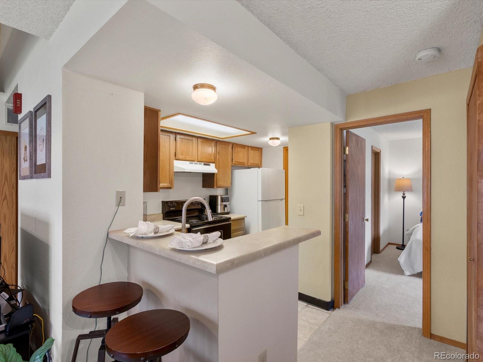 Step into comfort and convenience with this light-filled 2-bedroom, 2-bathroom 1st floor condo offering 900 square feet of well-designed living space at an amazing value. Both bedrooms feature ensuite bathrooms & walk-in closets, making it a perfect setup for roommates, guests, or a dual primary arrangement.? Enjoy a spacious living room with vaulted ceilings and an abundance of natural light. The eat-in kitchen flows seamlessly into a separate dining area, ideal for everyday living or entertaining. Brand new carpet has just been installed, and the in-unit laundry adds convenience. Recent updates also include a brand new water heater and windows that were replaced within the last 10 years. This condo comes with a dedicated covered parking space and a separate storage unit—both valuable bonuses in this location. The well-maintained HOA recently completed major exterior updates including a new roof and siding in 2024, fully paid for through a special assessment by the seller. That means no deferred maintenance headaches for years to come. Ideally located within walking distance to King Soopers and local favorites like Asian Spice and Southside Pizzeria. Outdoor enthusiasts will appreciate the close proximity to Chatfield Reservoir and the Denver Botanic Gardens at Chatfield Farms. Commuting is a breeze with easy access to Wadsworth Blvd and C-470. Buyers are being offered a free 1-0 buydown through preferred lender: Matt Weaver w/ Excel Financial. Please contact listing agent for details.