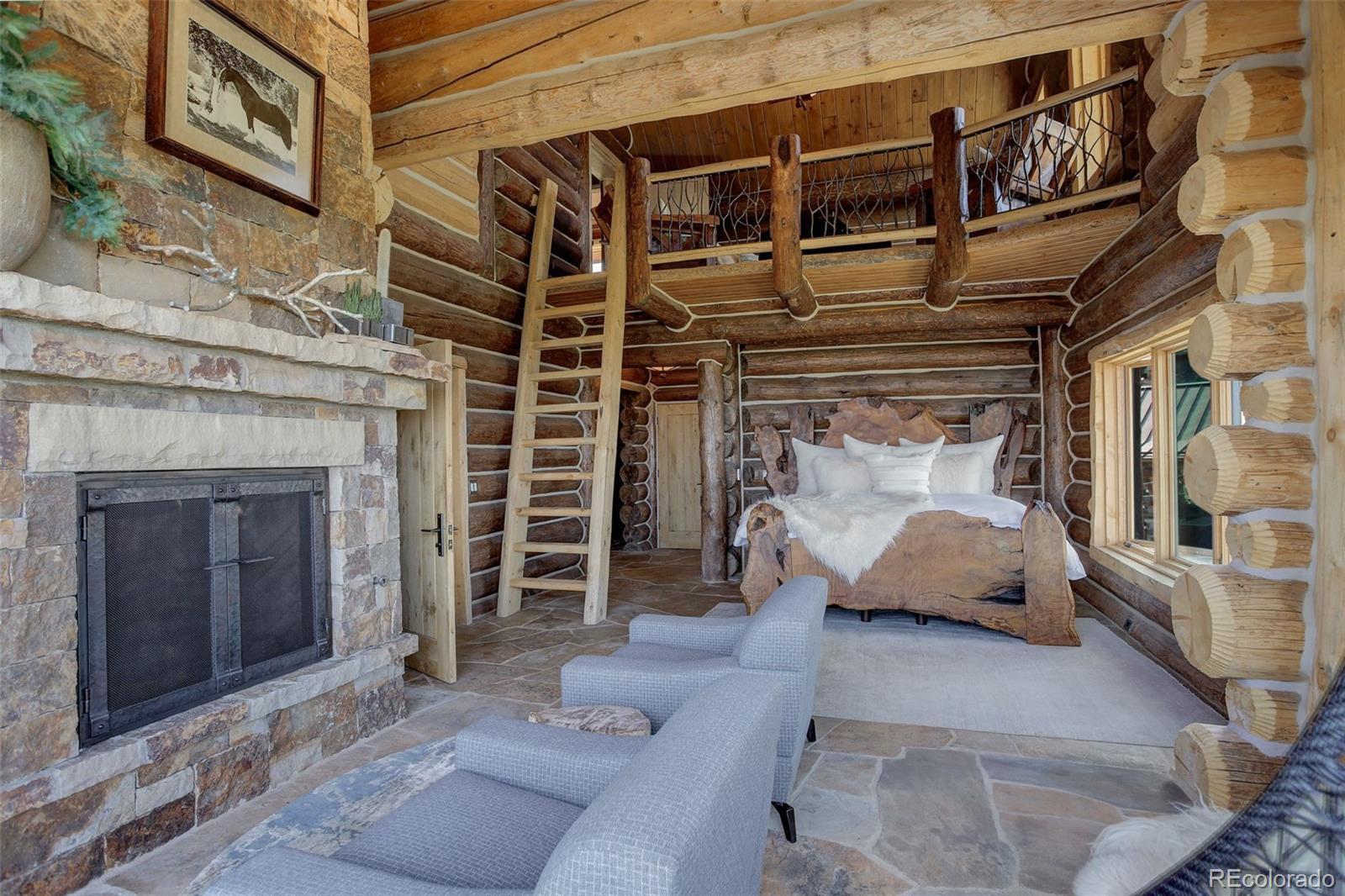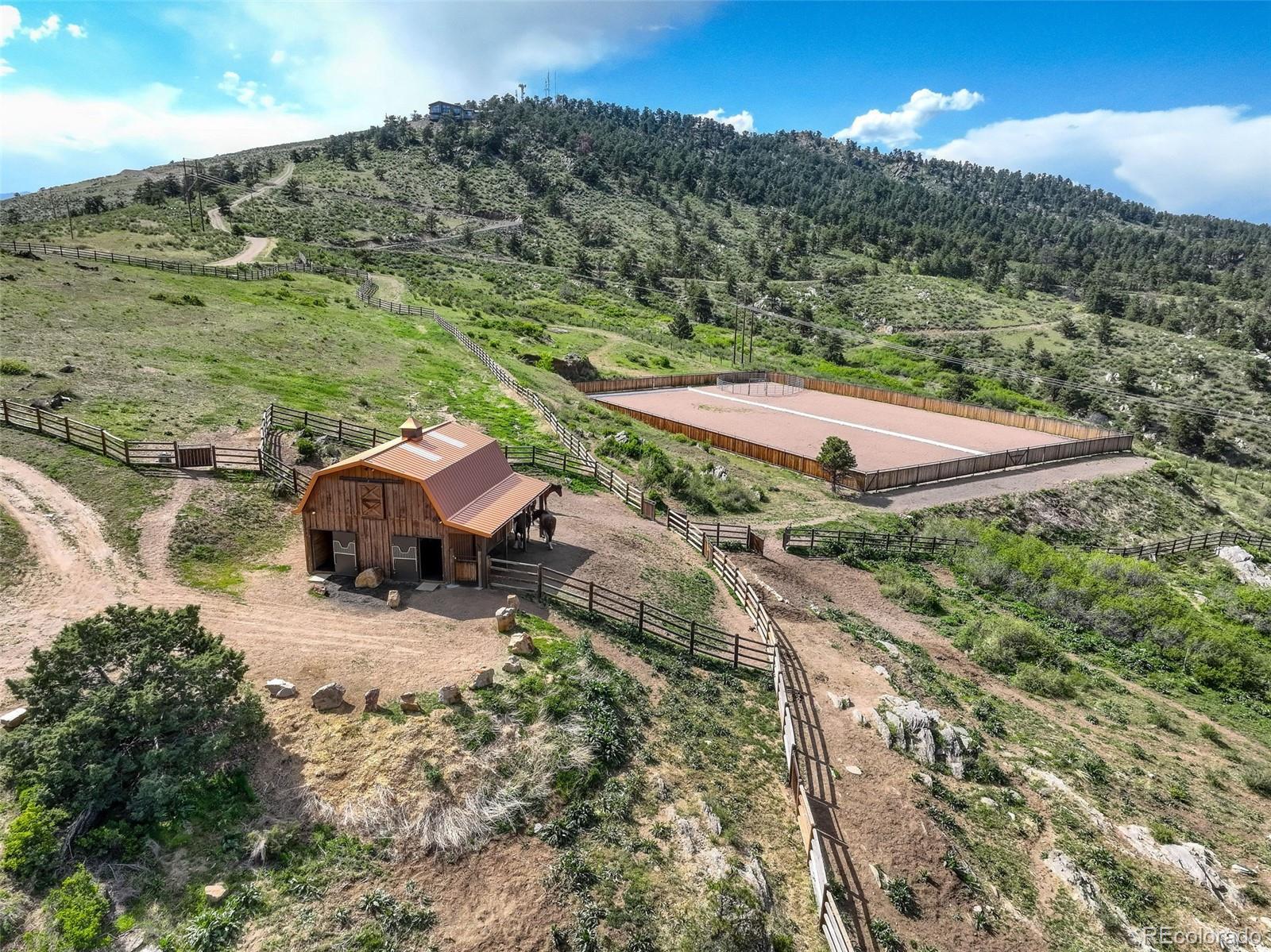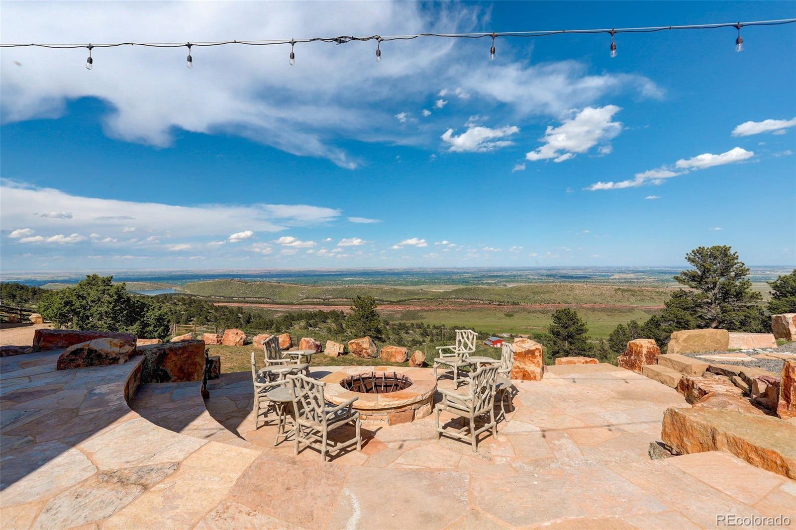 One-of-a-kind, exceptional equestrian estate spanning over 38 acres with 360-degree views. Luxurious indoor/outdoor living at its finest, this estate combines mountain log home grandeur with the refined elegance of top-quality finishes. Utmost exclusion & privacy lie here behind the gates of this exclusive community. Upon entering the property, you will be WOW'd by views framed by the accordion doors creating walls of glass that make up the entire east side of the home. The kitchen has been outfitted with premium appliances, including Subzero, Meile & AGA. Eye-catching copper & reclaimed wood countertops on the large center prep island make up this opulent space. Seamless flow to the great room highlighted by soaring, beamed ceilings. The main level primary suite boasts unbeatable views to Horsetooth Reservoir, deck access, & loft. Sumptuous copper soaking tub in the luxe 5-piece bath which also features a rain shower. The walk out lower level makes for another great entertaining space with wet bar & two secondary bedrooms with outdoor access. The equestrian facilities are state of the art and offer a heated, 2 stall barn with auto water, & comfort mats. 4 fenced horse pastures on the property. Full-size dressage riding arena with round pen & plenty of warm up space. You will love the outdoor entertaining space in this breathtaking setting that has every amenity imaginable: a huge, well-appointed kitchen with Viking appliances, wood pizza oven, wood fire pit, lighting & sound system. The city lights below provide a priceless backdrop for sophisticated entertaining & stylish living.
