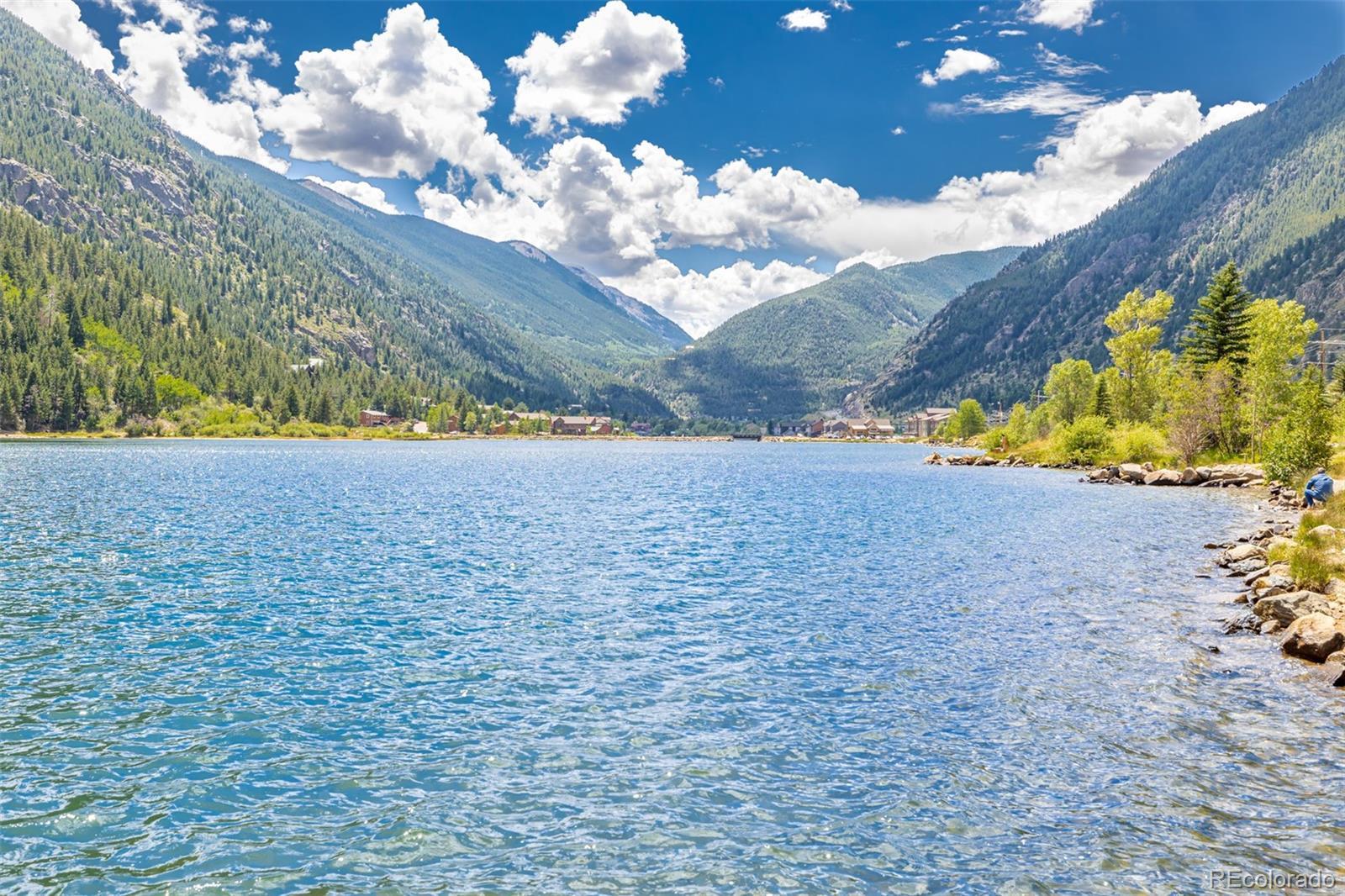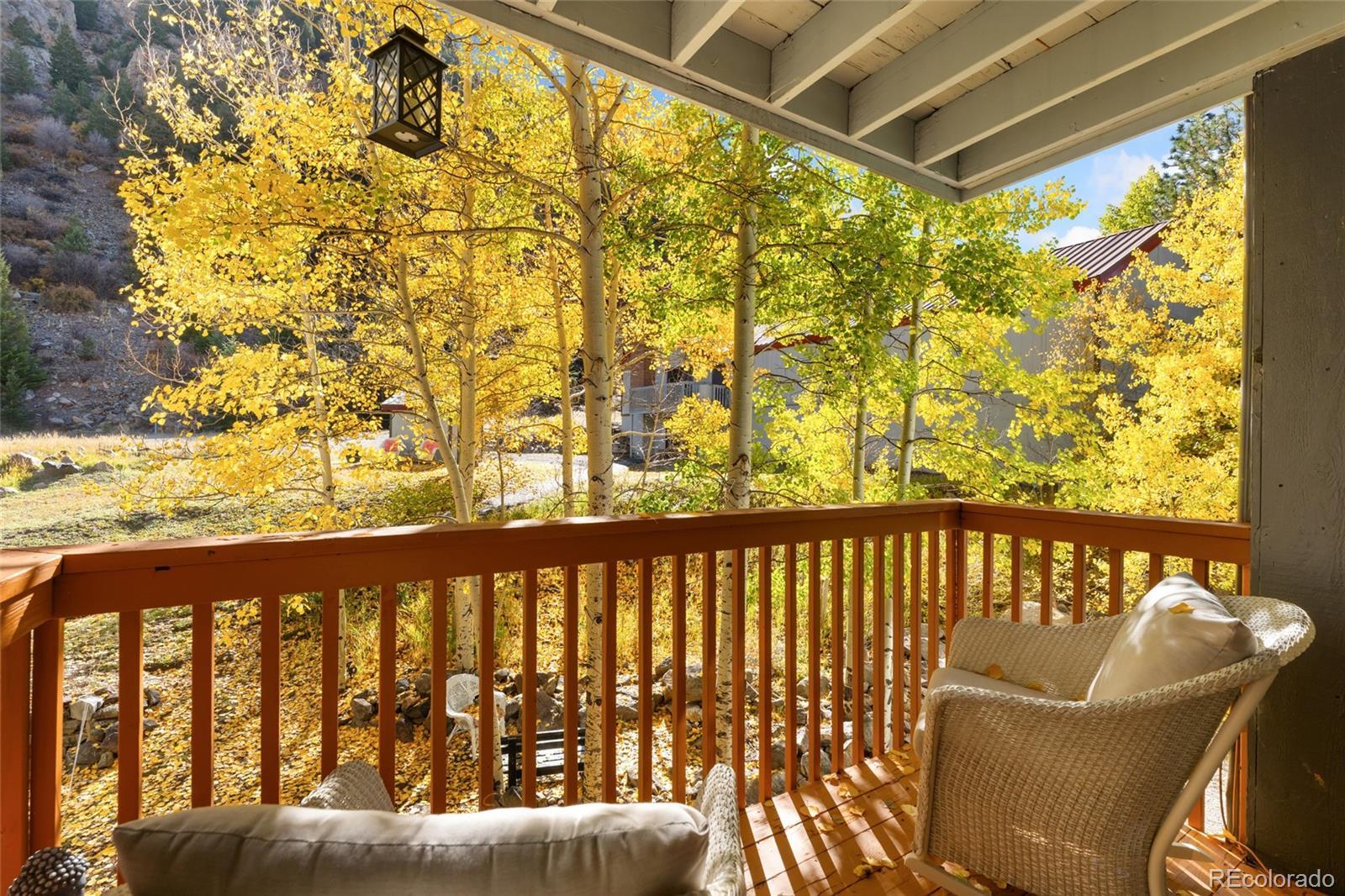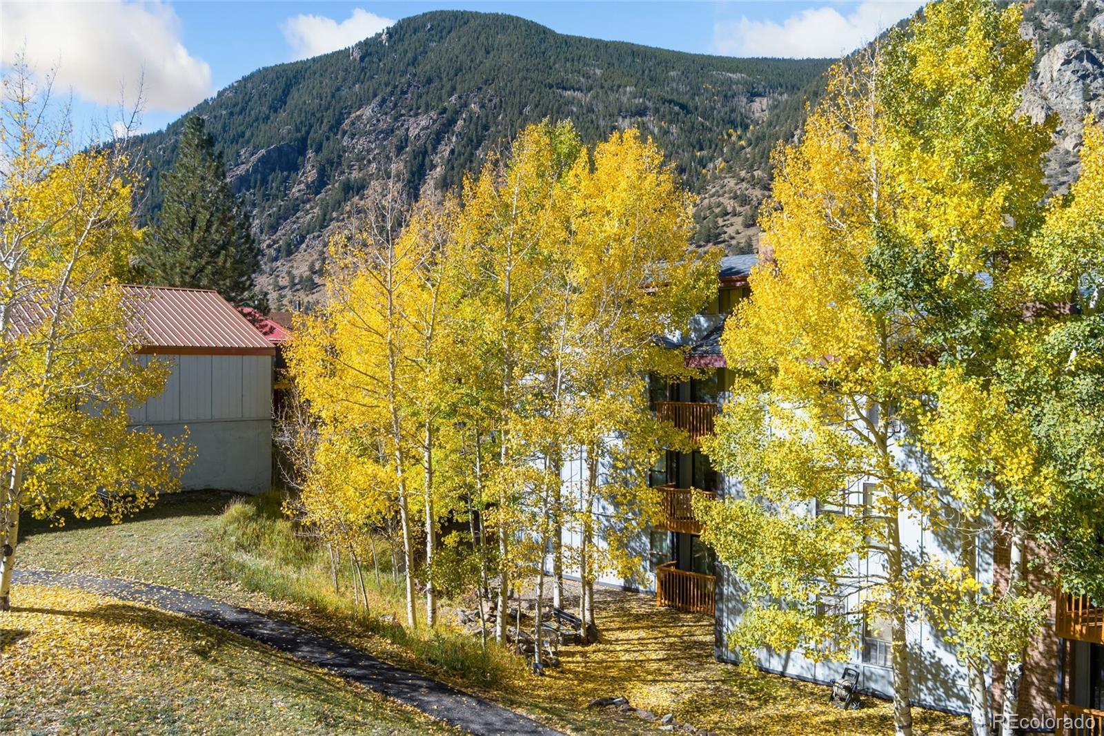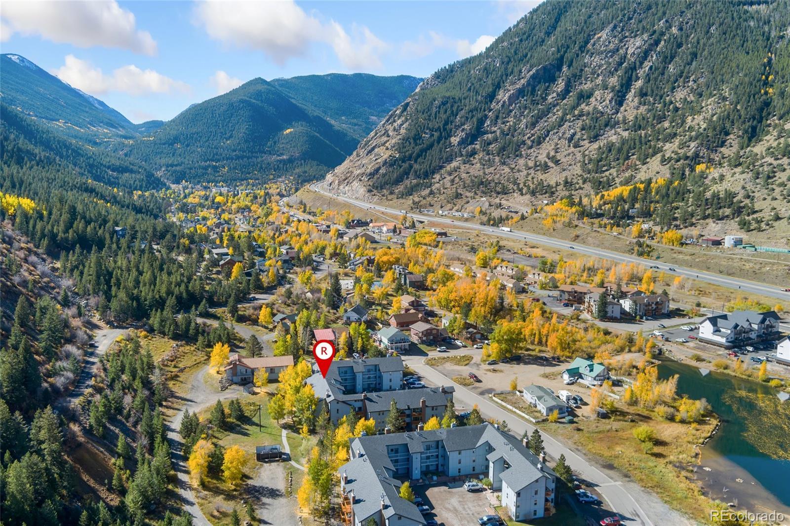 Spacious and cozy mountain condo in a prime Georgetown location, offering the perfect blend of comfort, nature, and convenience. Enjoy stunning views to the east from your private covered balcony overlooking the peaceful courtyard framed by aspens and mountain peaks. The setting is serene and full of character, with big horn sheep often seen just beyond the backyard and hummingbirds visiting in the summer. The HOA maintains beautiful landscaping with quaint sitting areas and mature trees that create a true mountain retreat feel. Outdoor enthusiasts will love being steps from Silver Creek, Purdy, and Mount Saxton trailheads, with world-class fly fishing across the street and paddle boarding on the nearby lake. Local restaurants and breweries are within walking distance, yet the condo is tucked away from I-70 for quiet and privacy. Inside, the large one-bedroom layout feels bright and inviting with an open living and dining area, sliding door to the deck, and easy-maintenance LVP flooring throughout. The updated bath feature modern finishes, new vanity, flooring, tile, and fixtures. The home also includes new major updates—furnace, water heater, stove, dishwasher, hearth, mantel, doors, and trim—plus a Flo by Moen smart water shut-off system for peace of mind. With high owner occupancy, and low rental turnover, this condo is a rare find. Relax on the deck and watch the wildlife, or take in the mountain air after a day at Loveland Ski Area just minutes away. Peaceful, updated, and perfectly located—your ideal mountain getaway awaits.