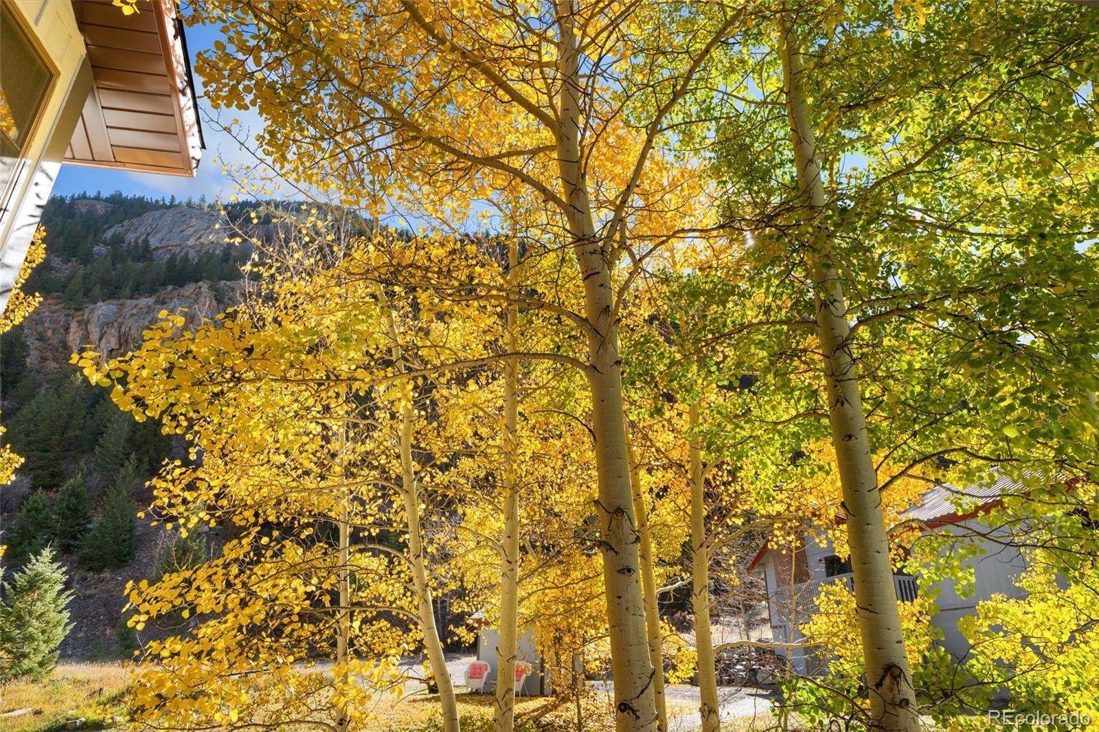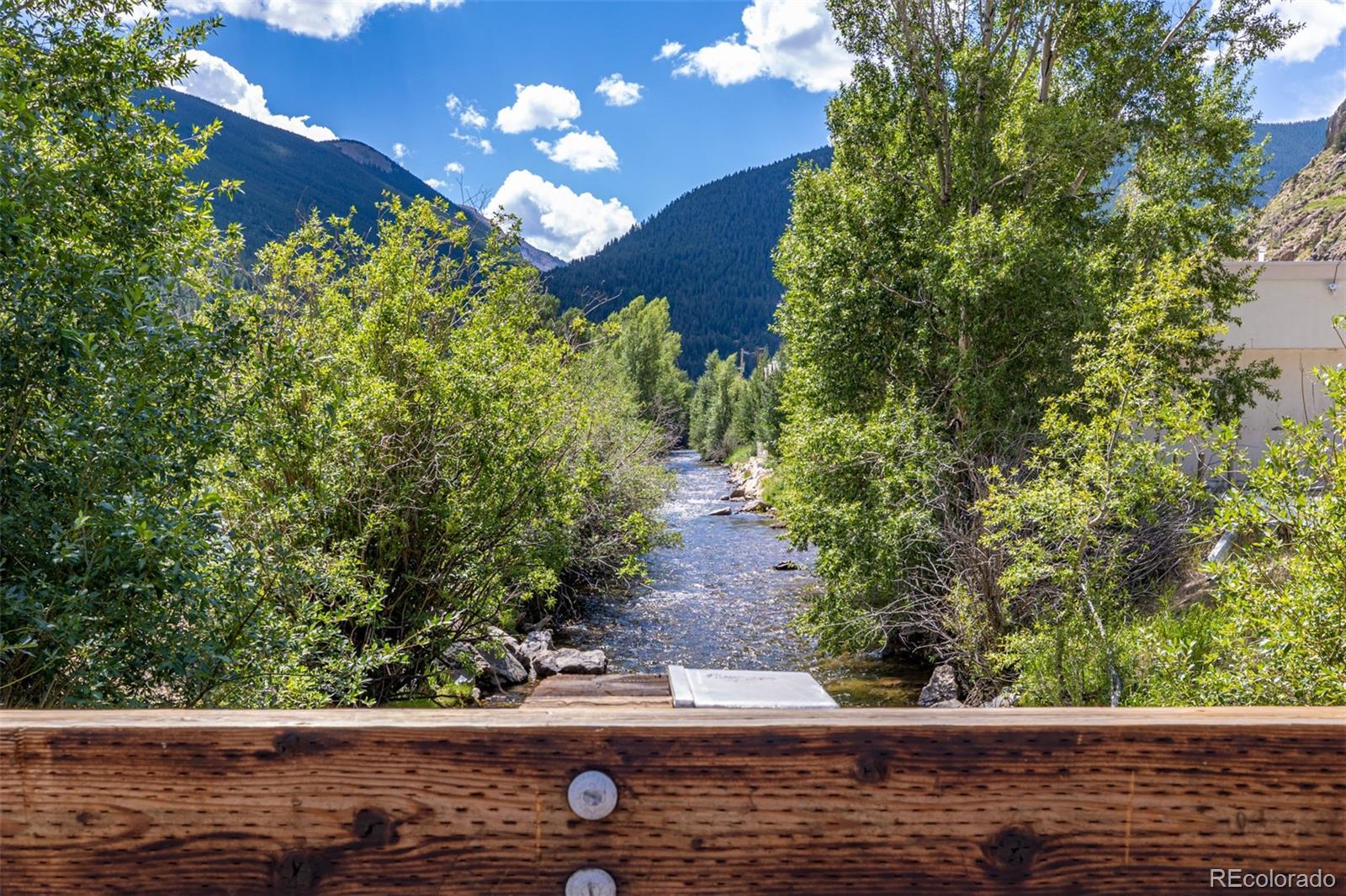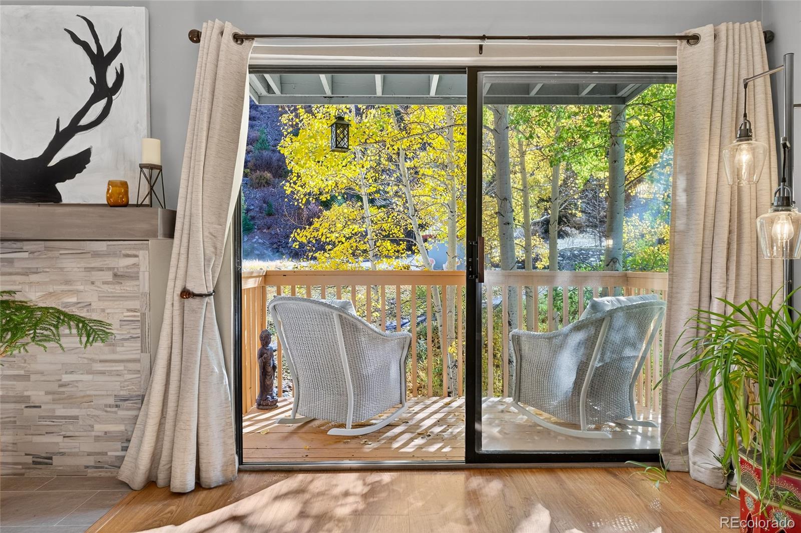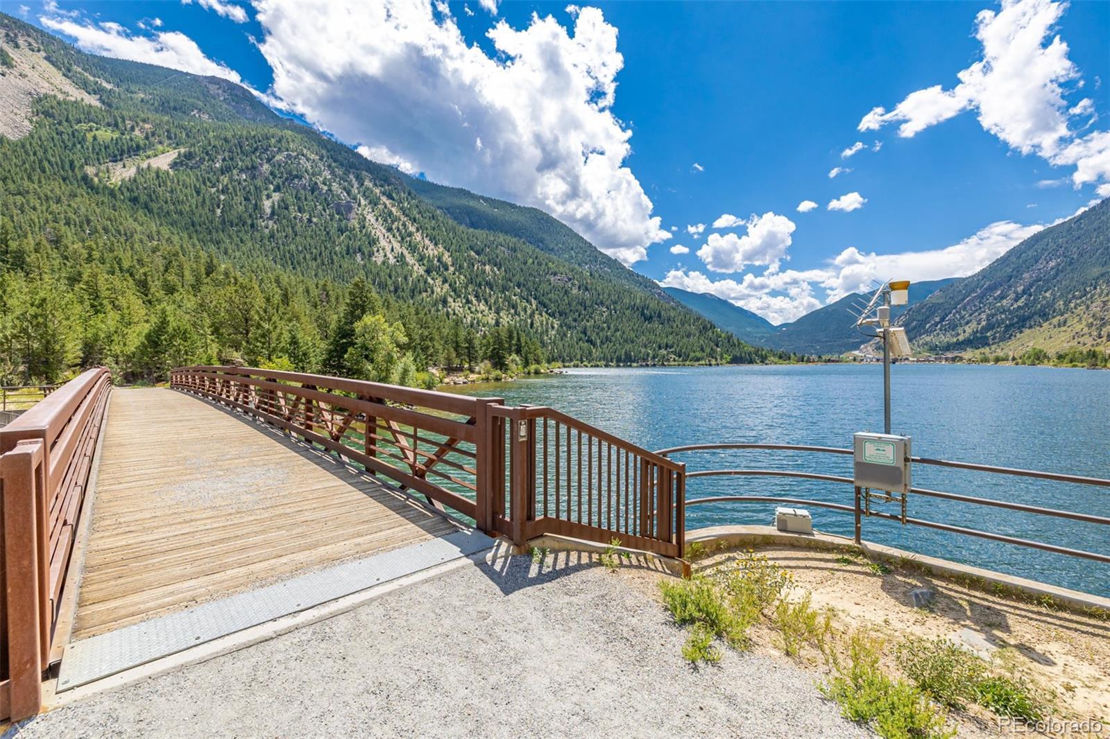 Spacious and cozy mountain condo in a prime Georgetown location, offering the perfect blend of comfort, nature, and convenience. Enjoy stunning views to the east from your private covered balcony overlooking the peaceful courtyard framed by aspens and mountain peaks. The setting is serene and full of character, with big horn sheep often seen just beyond the backyard and hummingbirds visiting in the summer. The HOA maintains beautiful landscaping with quaint sitting areas and mature trees that create a true mountain retreat feel. Outdoor enthusiasts will love being steps from Silver Creek, Purdy, and Mount Saxton trailheads, with world-class fly fishing across the street and paddle boarding on the nearby lake. Local restaurants and breweries are within walking distance, yet the condo is tucked away from I-70 for quiet and privacy. Inside, the large one-bedroom layout feels bright and inviting with an open living and dining area, sliding door to the deck, and easy-maintenance LVP flooring throughout. The updated bath feature modern finishes, new vanity, flooring, tile, and fixtures. The home also includes new major updates—furnace, water heater, stove, dishwasher, hearth, mantel, doors, and trim—plus a Flo by Moen smart water shut-off system for peace of mind. With high owner occupancy, and low rental turnover, this condo is a rare find. Relax on the deck and watch the wildlife, or take in the mountain air after a day at Loveland Ski Area just minutes away. Peaceful, updated, and perfectly located—your ideal mountain getaway awaits.