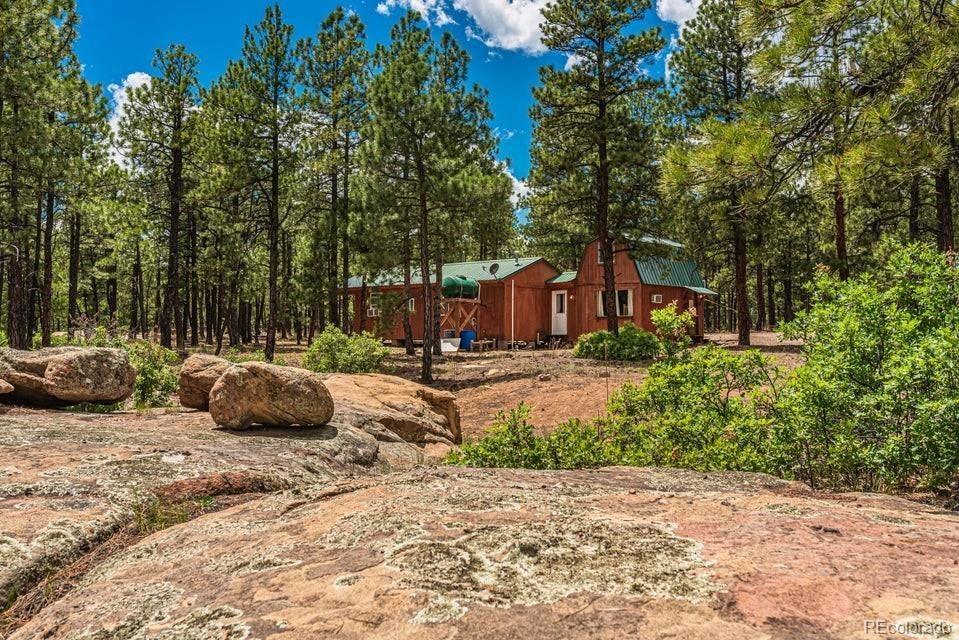 End of the road mountain getaway that offers true privacy on more than 36 wooded acres—exactly the kind of place you escape to when you want the world to slow down. The hand-built cabin, crafted by Amish artisans, blends rustic charm with comfort, featuring a full bathroom, functional kitchen, and cozy living space. Spend your mornings on the covered porch breathing in crisp mountain air, then wander through peaceful forest terrain, explore natural rock outcroppings, or enjoy the open meadow—ideal for horses or other livestock. Hosting friends or family is easy with RV hookups and a separate bath house for guests. Located near Stonewall, Monument Lake, North Lake, and the charming mountain town of Cuchara, this property puts hiking, fishing, hunting, and endless outdoor recreation within easy reach. If you've been dreaming of a private retreat where nature takes center stage, this one deserves a closer look. Schedule your private tour today.