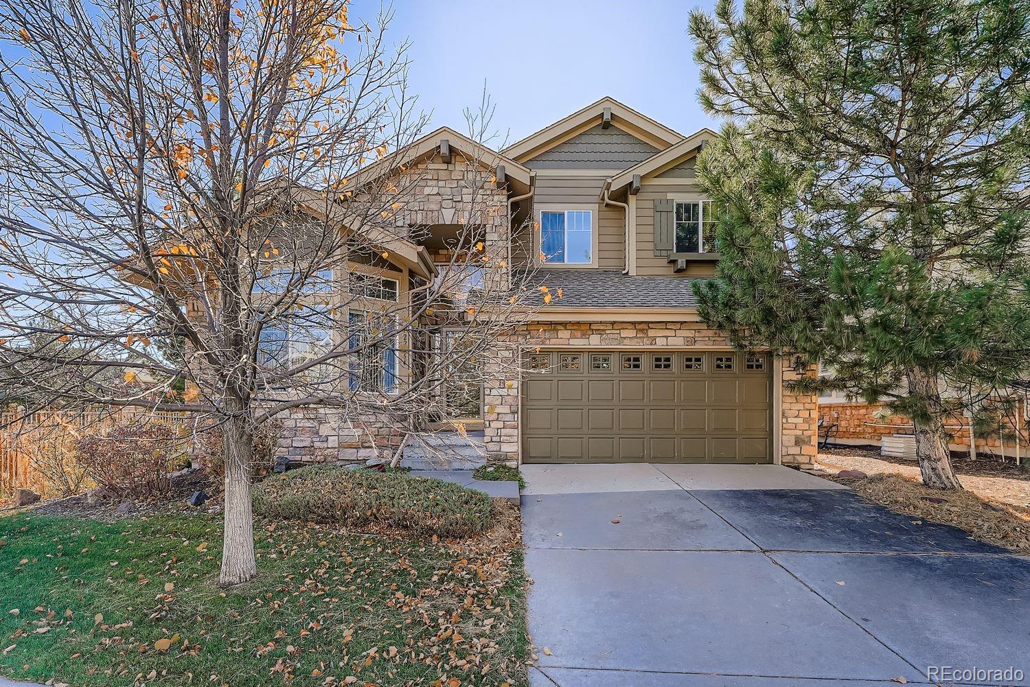 Welcome home to this well maintained former model home in Saddle Rock Star Pass. This home is one of the few homes in the development that has a front load 2 car garage on a corner lot! The home features a lovely open floor plan with vaulted ceilings that flow from the entry to the family room and kitchen. The Primary Suite is located just off of the main floor hallway along with a 5 piece attached bathroom and vaulted ceilings as well. The kitchen has beautiful cherry cabinets and lovely granite counter tops, highlighted by stainless steel appliances. The family room has matching built ins for entertainment storage as well as pre-wiring for surround sound set next to a lovely gas fire place. Upstairs, there are 2 guest bedrooms along with a bathroom and plenty of closet space and storage. There is a full basement, with plenty of room to make it a great entertainment area with enough space for a fourth bedroom and bath as well!