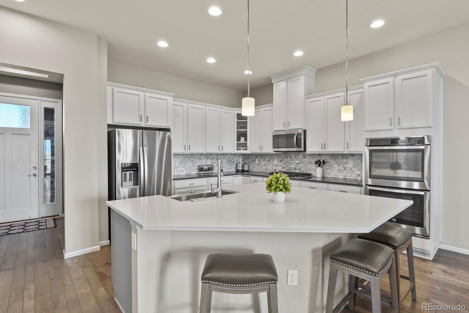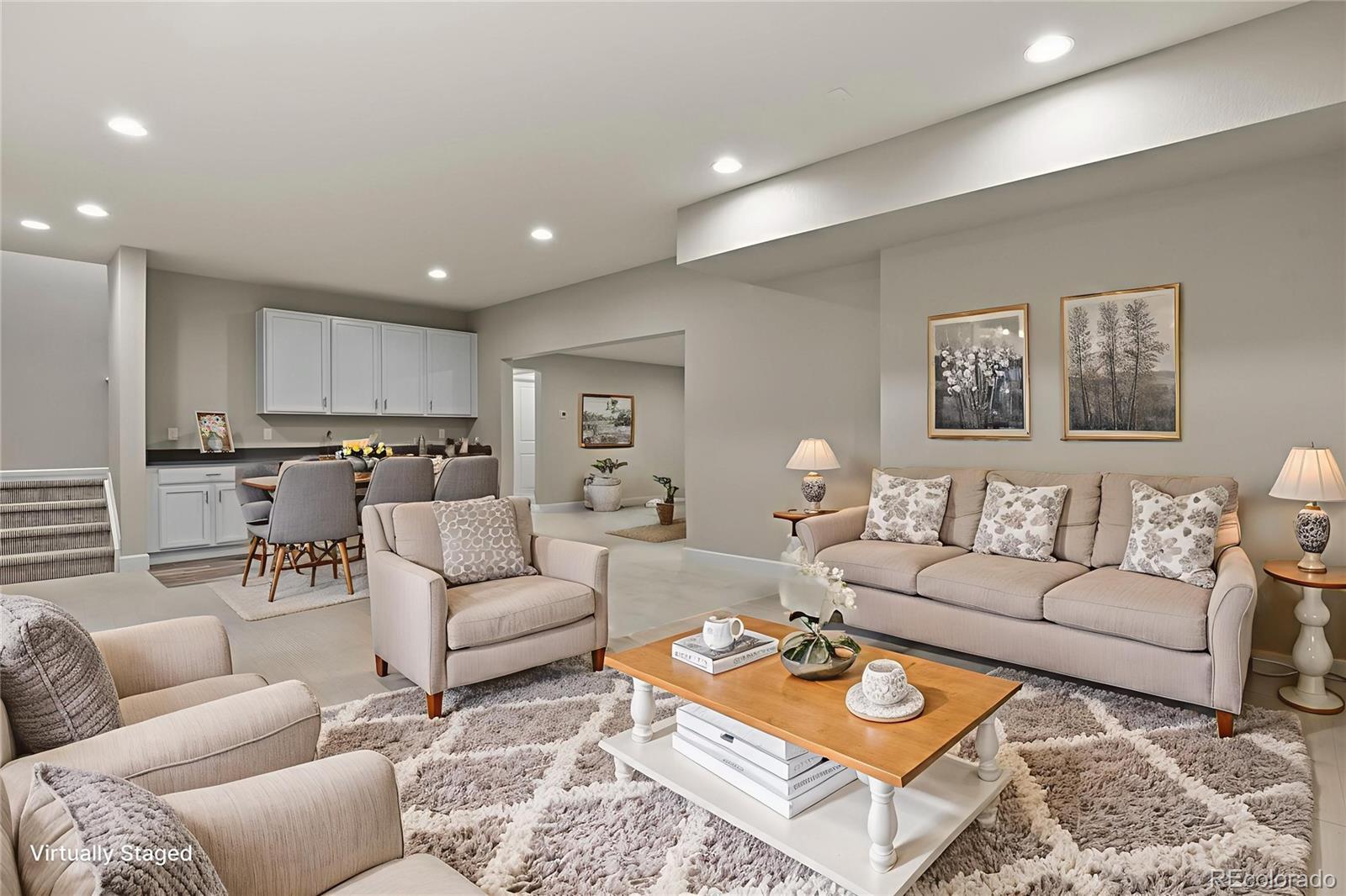 ***2/1 INTEREST RATE BUYDOWN AND FREE NO FEE FUTURE REFINANCING FOR THE LIFE OF THE LOAN...see details below*** GORGEOUS PANORAMIC MOUNTAIN VIEWS/OPEN SPACE/PRIVACY...right outside your back door and Mountain Views from inside the home! Welcome to this prestine/Turn-Key South Aurora home offering a perfect blend of style, comfort, and functionality. Step through the entry into a beauitful foyer before entering the bright, open living area. The gorgeous modern kitchen features a spacious island with Stainless Steel appliances, quartz counter-tops, upgraded cabinets, center island seating and so much more! The kitchen area flows effortlessly into the dining area and living room—ideal for gathering and entertaining. The primary suite has stunning mountain views and includes an ensuite bath with dual sinks, a walk-in shower, and a generous walk-in closet. Down the hall you will find another bedroom and full bath on the main floor which adds versatility for guests or a home office. The finished basement expands your living space with two large living areas-- One living area could easily become an additional bedroom—the other living area features a Kitchenette with wet bar/counter-tops/cabinets...ready for entertaining or basement suite as it is currently configured!—along with an additional bedroom and full bath plus plenty of extra walk-in storage. A spacious unfinished section provides endless possibilities for storage, hobbies, or future customization. Step outside to enjoy a covered patio with AMAZING PANORAMIC MOUNTAIN VIEWS!!!...also overlooking plenty of green space, perfect for relaxing outdoors and enjoying wildlife. Conveniently located near Southlands Shopping Center, E-470n for easy DIA airport runs, local dining, and beautiful parks, this home offers a quiet setting with easy access to E-470 & all the amenities Aurora has to offer. ***Buyer must be approved by and use Orchard Mortgage for financing. Some restrictions do apply...call agent for details.