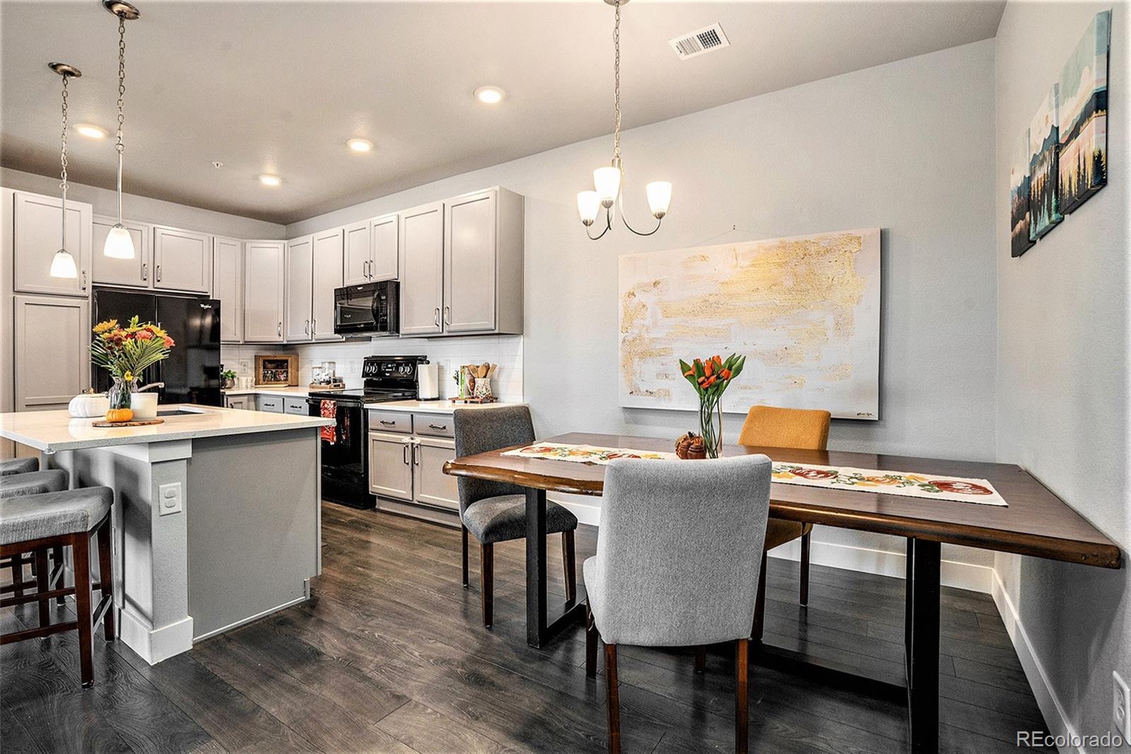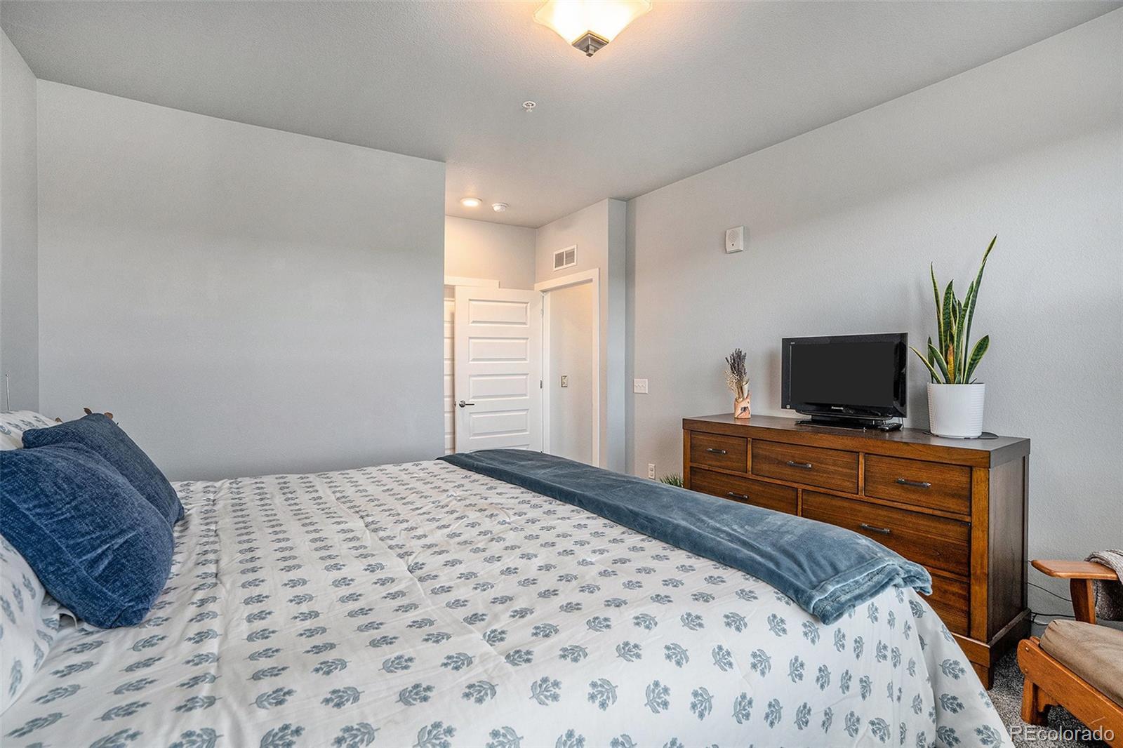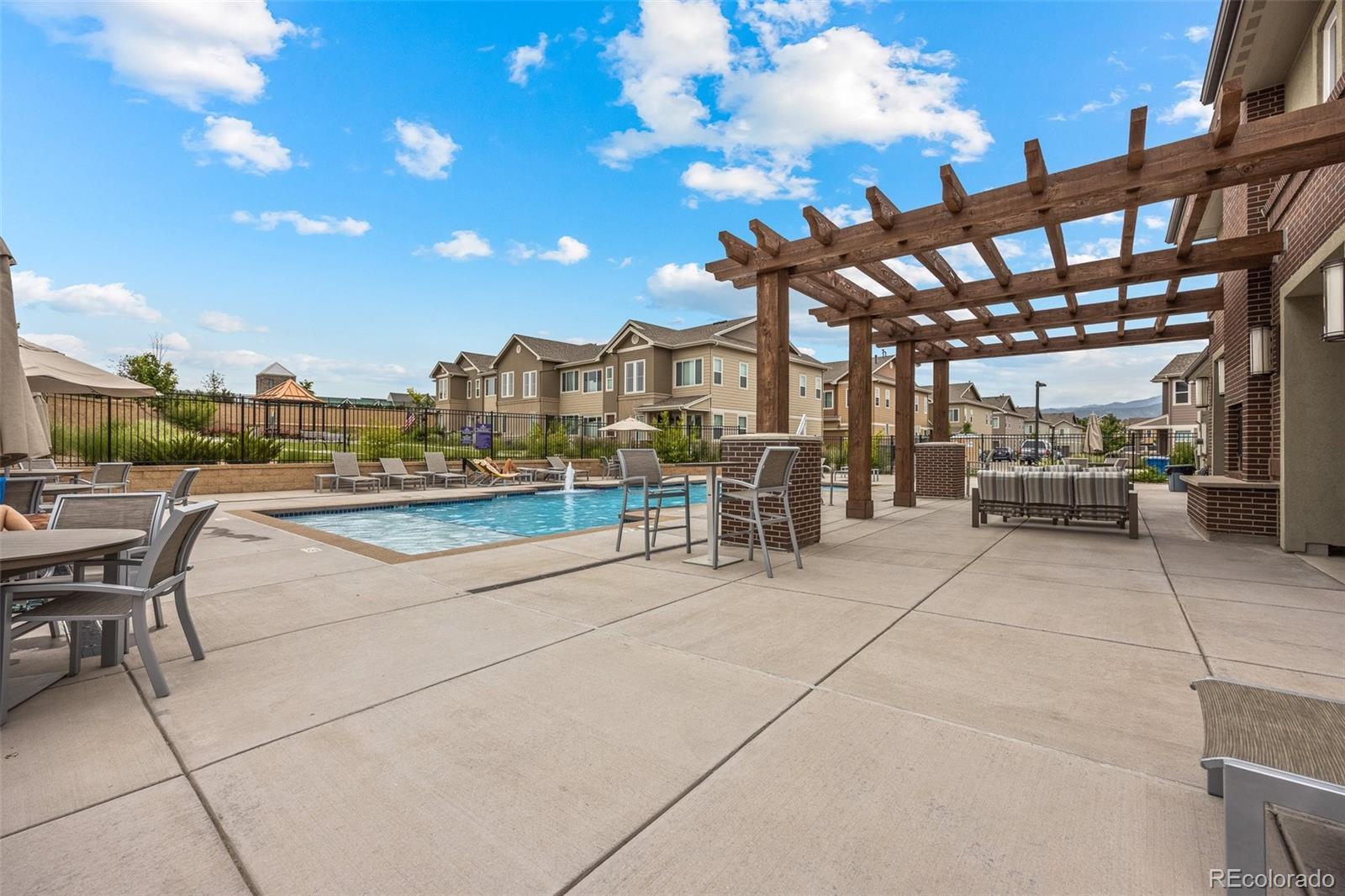 Step into this beautifully maintained 2-bedroom, 2-bathroom condo, perfectly positioned in the sought-after Westown community. Situated on the top floor with no neighbors above, this East-facing home offers bright natural light, modern updates, and high-end finishes rarely found at this price. The open-concept layout showcases modern finishes throughout, including a stylish kitchen with sleek Quartz countertops, a spacious island with eat-in seating, and a large single-basin undermount sink. Ample cabinetry and a built-in pantry ensure plenty of storage. One of the few units in the building with a true dining space, spacious enough to fit a full-size table for gatherings or everyday meals. Down the hallway, a thoughtfully designed alcove provides the perfect spot for a home office or study area. Step out onto the fully covered patio and enjoy breathtaking eastern sunrises — an ideal place to relax or nurture your favorite plants. Additional outdoor storage adds convenience and organization. The oversized primary suite offers the perfect retreat, complete with a generous walk-in closet and a luxurious en-suite bathroom featuring double sinks, Quartz countertops, and elegant tile flooring. The second oversized bedroom is equally inviting, with easy access to the nearby full bathroom down the hall. One additional storage closet sits across from the laundry area, equipped with a full-size washer and dryer plus built-in shelving. Enjoy elevator access and the peace of mind of a secure building with keypad entry. Community amenities include two on-site meeting rooms, an outdoor pool, a park, and scenic walking trails. Plenty of off-street parking adds everyday convenience on a first-come, first-serve basis. Located within walking distance to Ralston Creek Trail, local shopping, dining, and schools — with easy access to Hwy 58, I-70, and Hwy 93 for quick commutes to Lakewood, Golden, or Boulder.