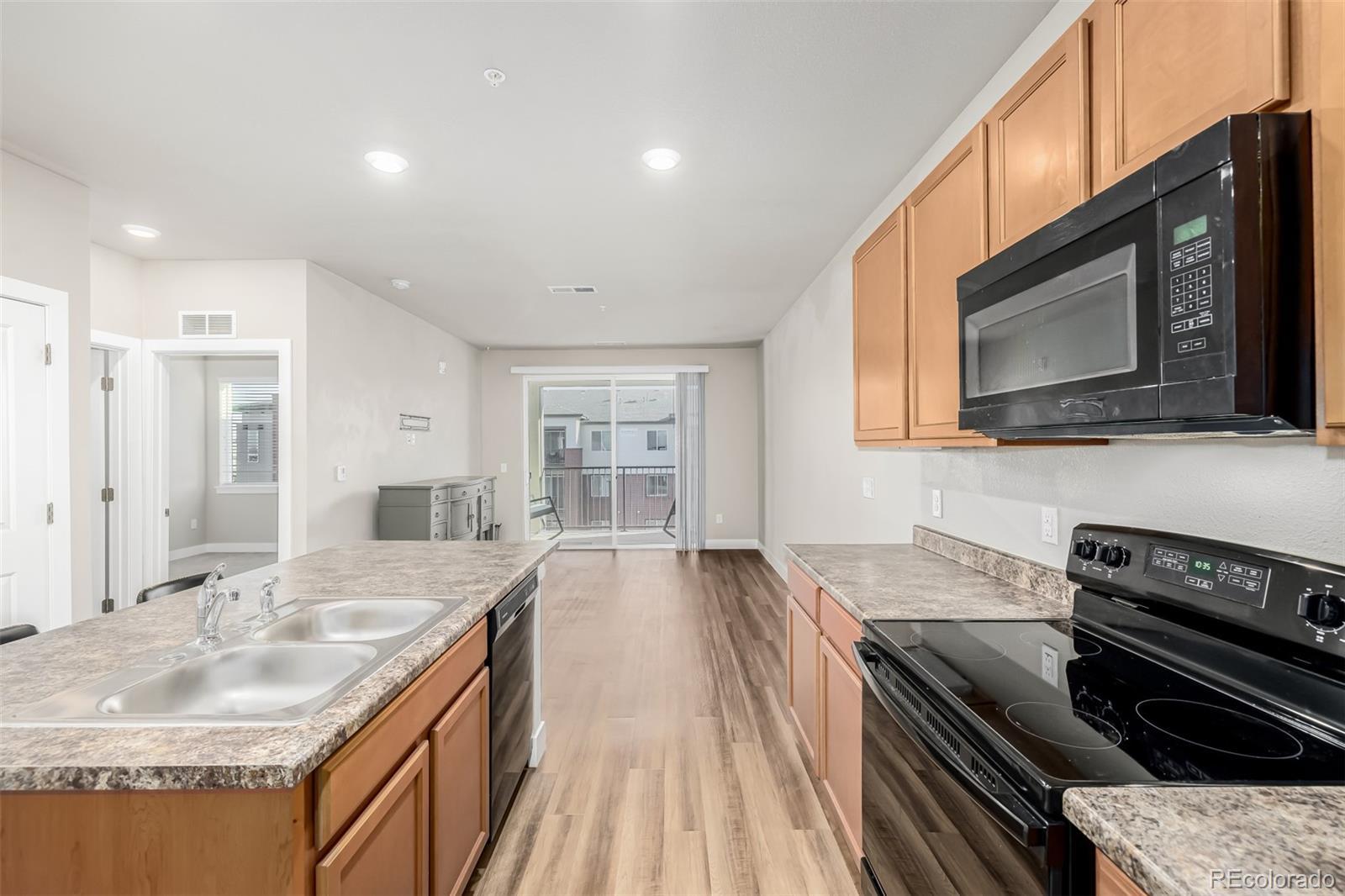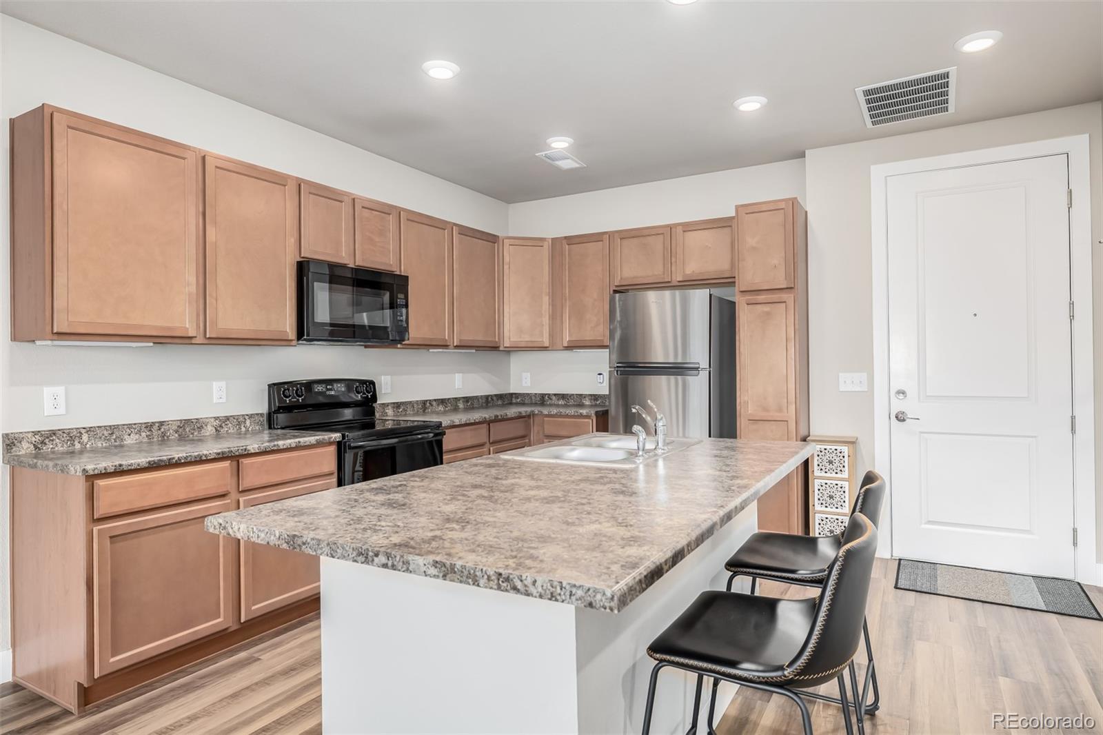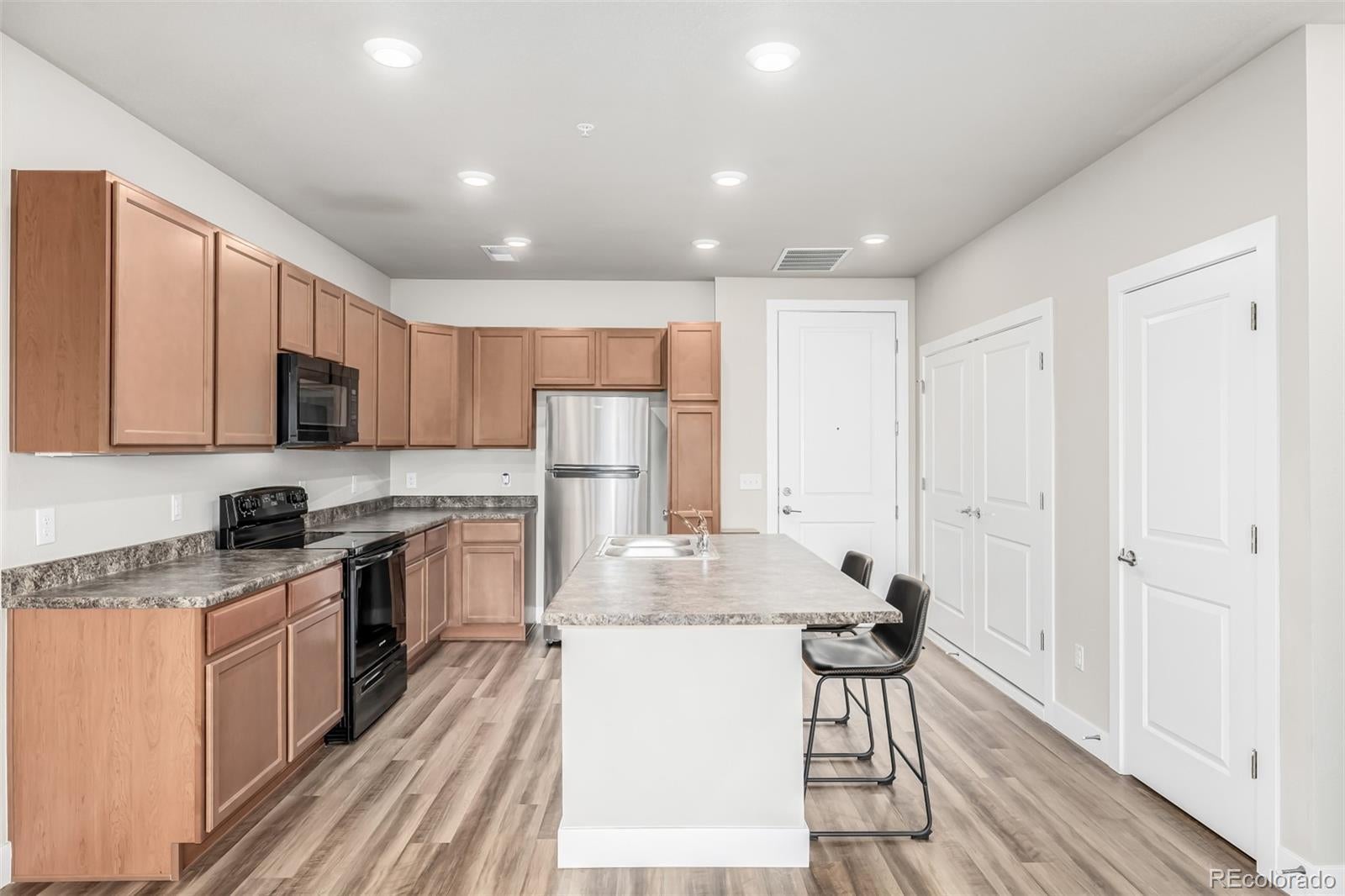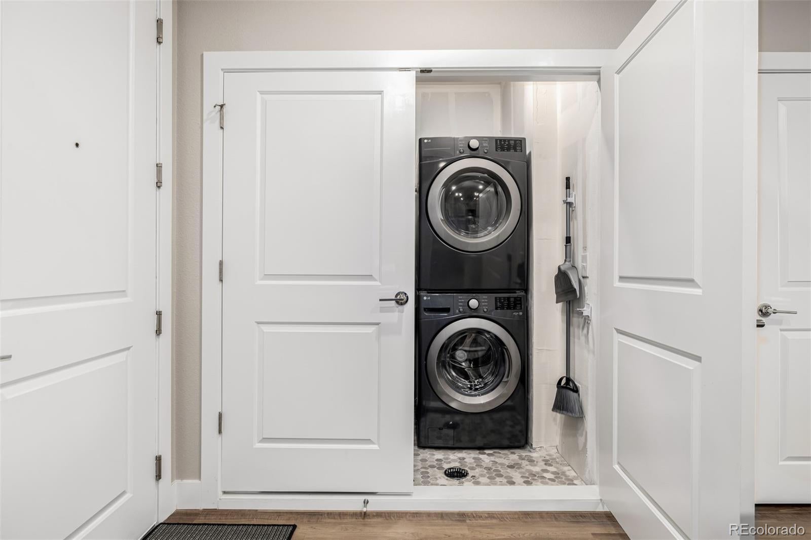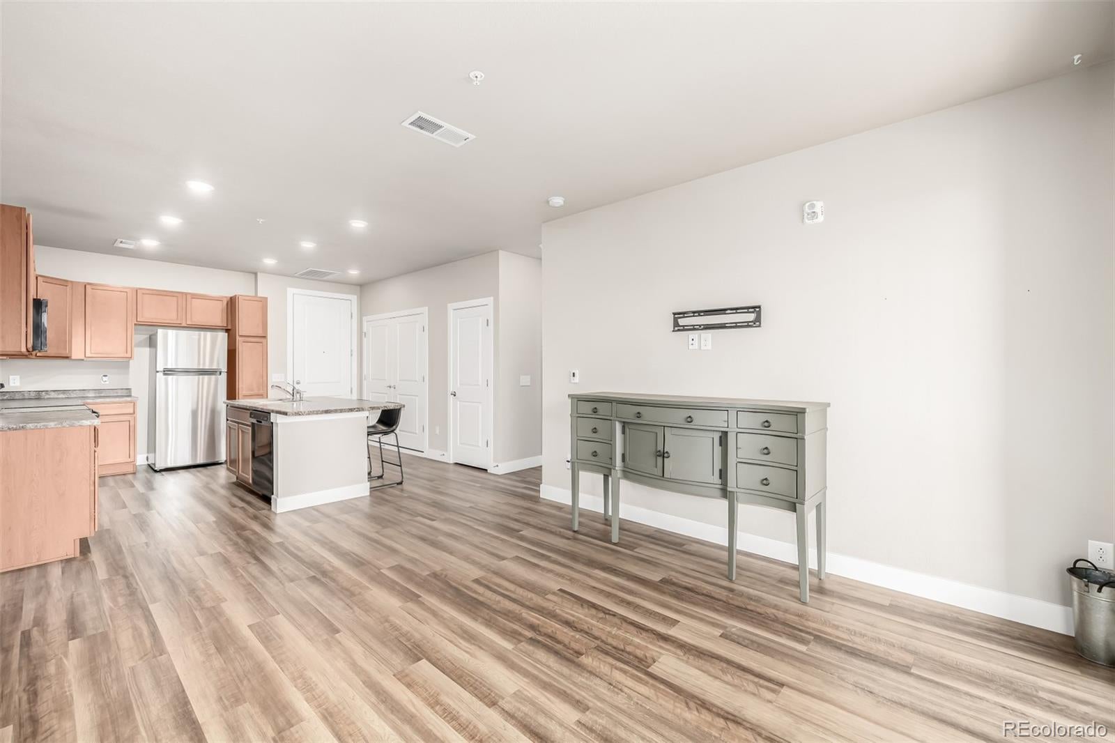 SHORT SALE OPPORTUNITY!! This stunning home, built in 2020, embodies the perfect fusion of modern design and urban convenience The open concept layout is a masterpiece of simplicity and style, with soaring ceilings, warm honey-toned plank flooring, and soft neutral tones that bathe the space in light and warmth. The kitchen stands out as a focal point, blending form and function with rich wood cabinetry, recessed lighting, and a versatile island. Whether serving as a prep station, breakfast bar, or gathering hub, the island anchors the space with both practicality and charm. Seamless transitions between the kitchen, dining, and living areas create a dynamic space that feels expansive yet inviting. A serene retreat, the spacious bedroom is designed for comfort, featuring plush carpeting and a generous walk-in closet that balances functionality with elegance. The full-size stacked washer and dryer add an element of convenience, while the secure building entry offers peace of mind. The private covered balcony feels like an urban oasis, perfect for sipping a morning latte, soaking up the fresh air, or unwinding with a favorite book. The one-bedroom layout offers a low-maintenance, intentionally designed living experience, ideal for embracing a more streamlined and carefree lifestyle. The location celebrates the vibrancy of city life, with unparalleled access to RTD light rail, major highways, and an eclectic mix of shops, boutiques, and eateries. From trendy cafés to a variety of dining establishments, culinary adventures await at every turn. Nearby recreation and entertainment options add to the appeal, offering endless possibilities for exploration and enjoyment. This move-in-ready condo is a harmonious blend of modern elegance and urban energy. Recently appraised at $205k, this is a fantastic opportunity for instant equity!