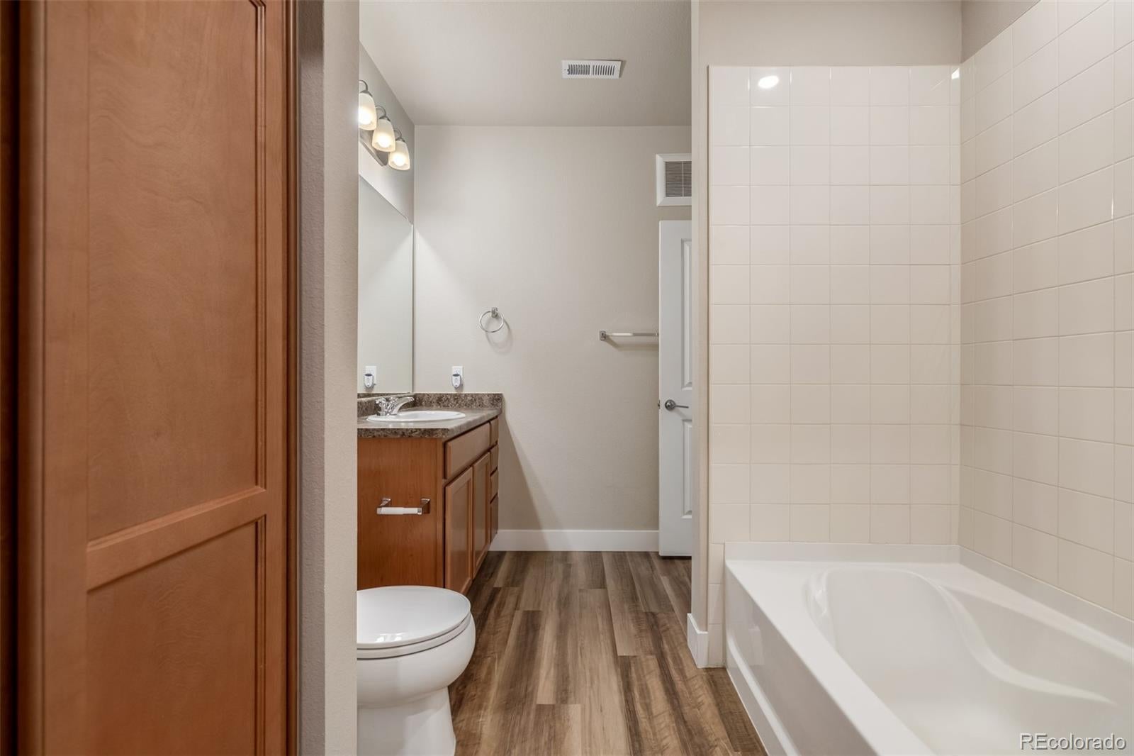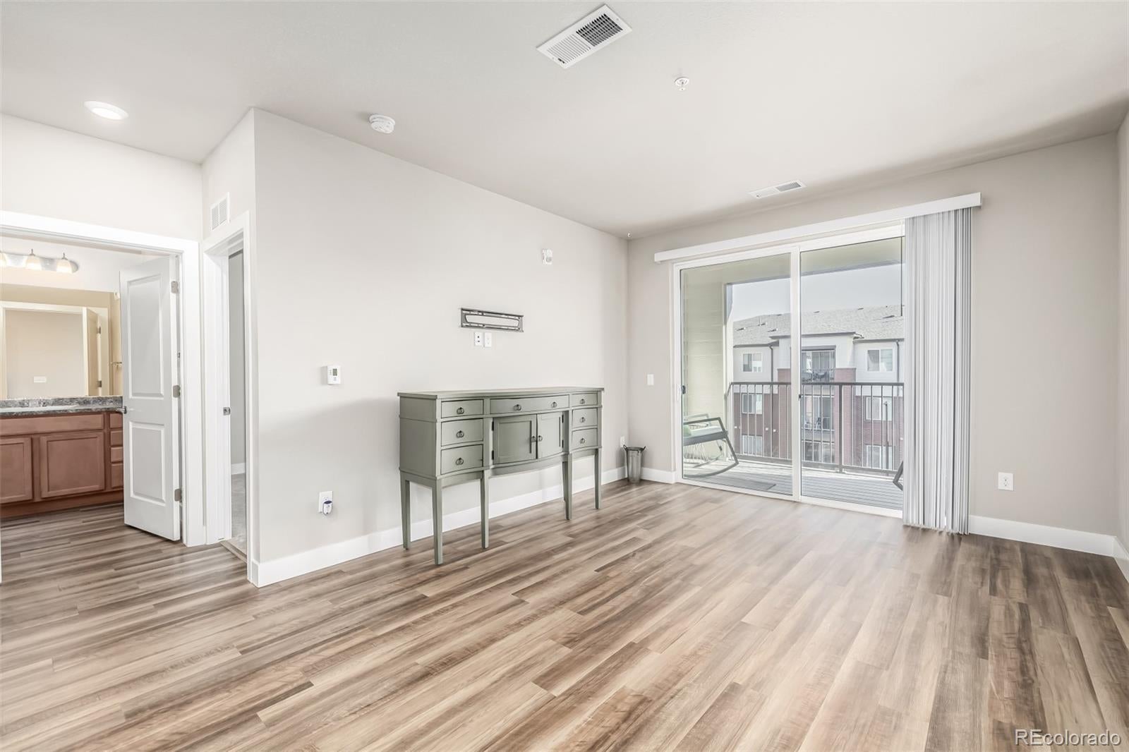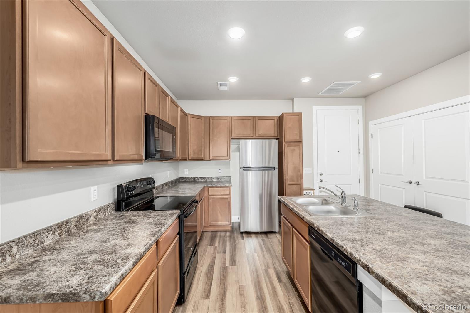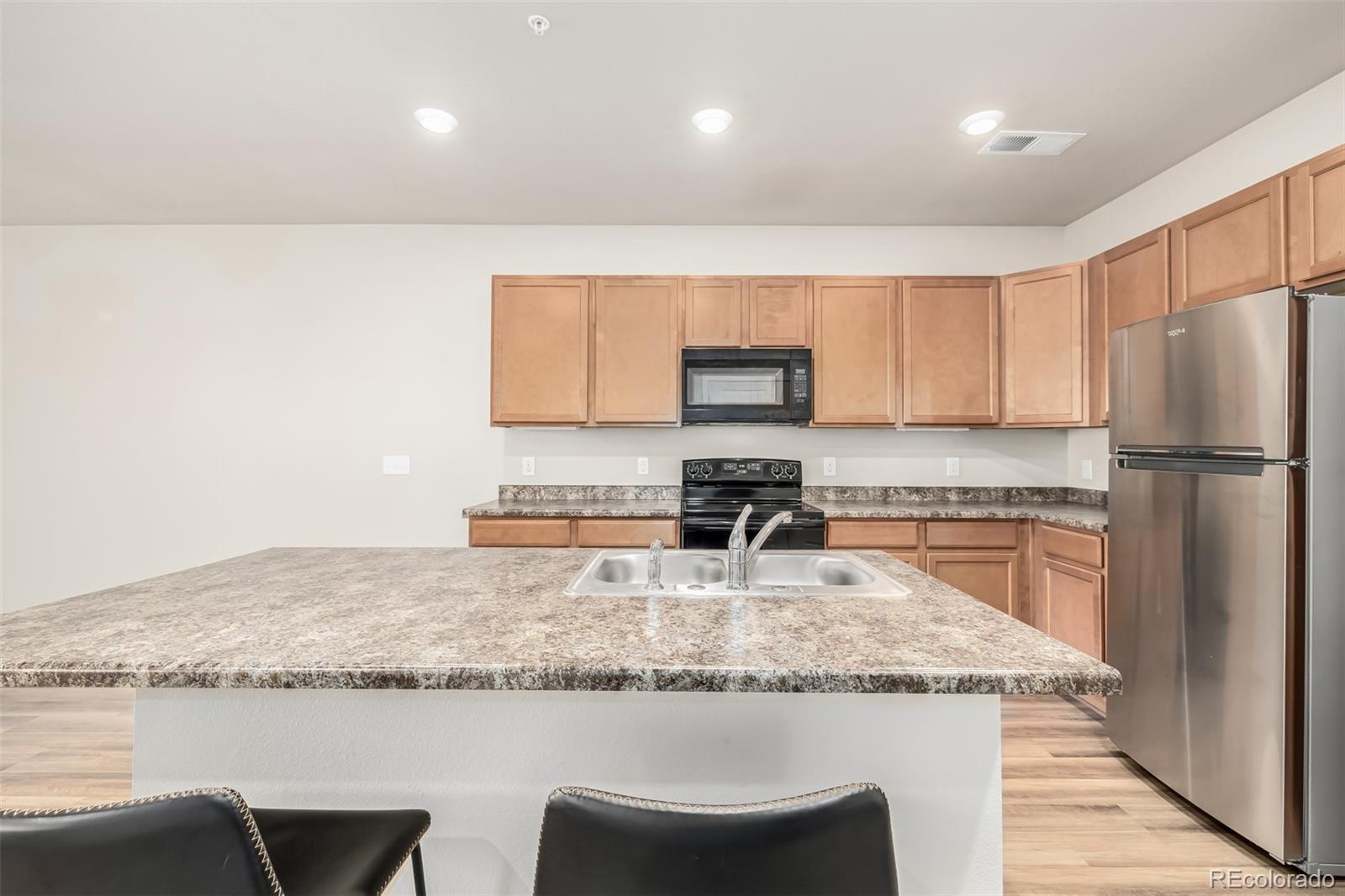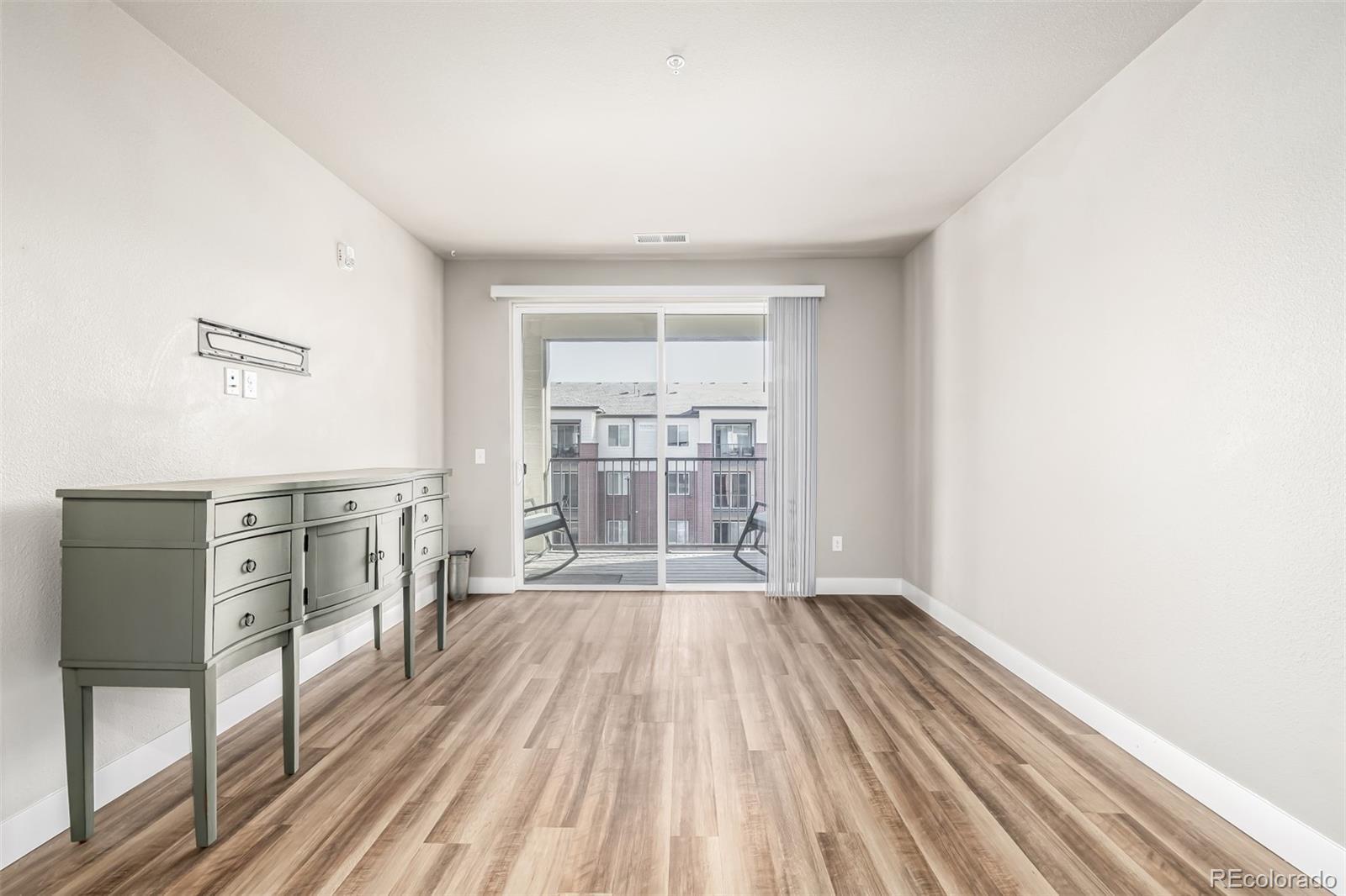 SHORT SALE OPPORTUNITY!! This stunning home, built in 2020, embodies the perfect fusion of modern design and urban convenience The open concept layout is a masterpiece of simplicity and style, with soaring ceilings, warm honey-toned plank flooring, and soft neutral tones that bathe the space in light and warmth. The kitchen stands out as a focal point, blending form and function with rich wood cabinetry, recessed lighting, and a versatile island. Whether serving as a prep station, breakfast bar, or gathering hub, the island anchors the space with both practicality and charm. Seamless transitions between the kitchen, dining, and living areas create a dynamic space that feels expansive yet inviting. A serene retreat, the spacious bedroom is designed for comfort, featuring plush carpeting and a generous walk-in closet that balances functionality with elegance. The full-size stacked washer and dryer add an element of convenience, while the secure building entry offers peace of mind. The private covered balcony feels like an urban oasis, perfect for sipping a morning latte, soaking up the fresh air, or unwinding with a favorite book. The one-bedroom layout offers a low-maintenance, intentionally designed living experience, ideal for embracing a more streamlined and carefree lifestyle. The location celebrates the vibrancy of city life, with unparalleled access to RTD light rail, major highways, and an eclectic mix of shops, boutiques, and eateries. From trendy cafés to a variety of dining establishments, culinary adventures await at every turn. Nearby recreation and entertainment options add to the appeal, offering endless possibilities for exploration and enjoyment. This move-in-ready condo is a harmonious blend of modern elegance and urban energy. Recently appraised at $205k, this is a fantastic opportunity for instant equity!