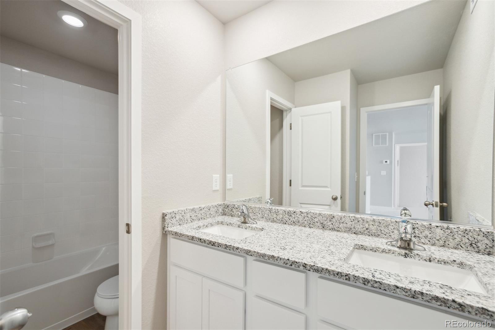 Welcome to the stunning San Juan plan available for quick move-in at Hidden Valley Farm located just north of Denver! This floor plan features four bedrooms, but doesn’t stop there. It includes a large flex room downstairs and a bonus room upstairs where the opportunities to customize this home to suit your family’s needs are endless. In the kitchen, you are sure to fall in love with the huge granite island and countertops, tall cabinetry with crown molding and the complete suite of stainless-steel Whirlpool® appliances. Upstairs, you will find all four spacious bedrooms and an incredible master suite that includes a private bath with dual sinks, separate shower and tub, as well as a spacious walk-in closet. The home pictured is representative of the property that is being built.