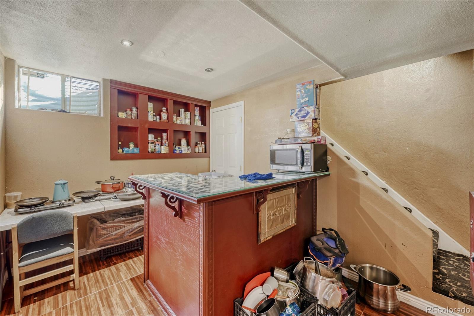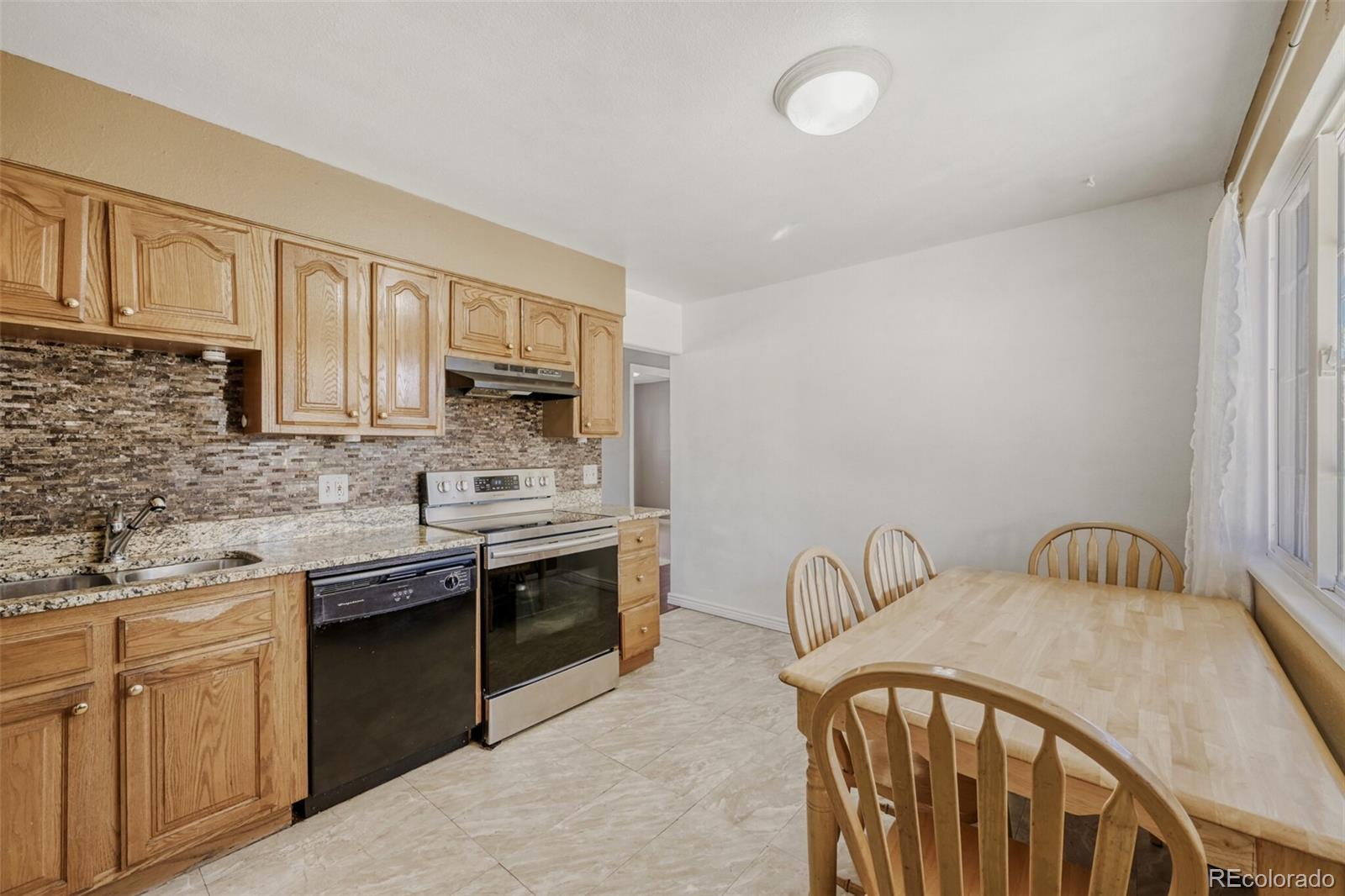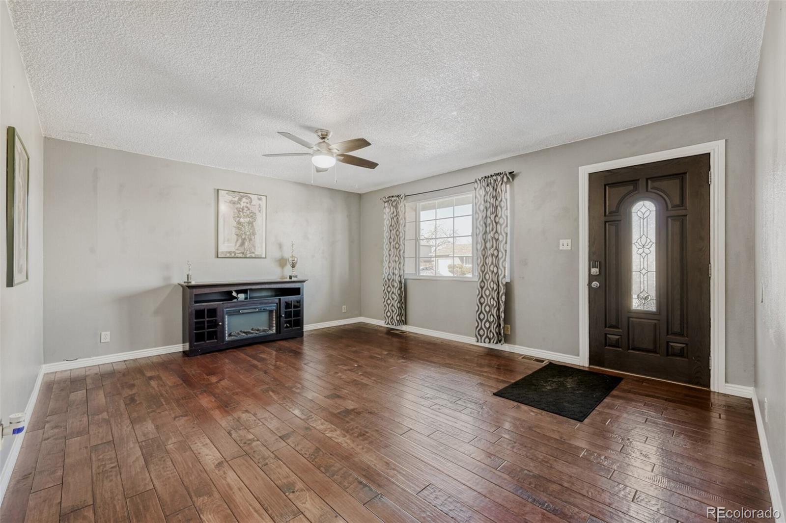 Great opportunity in the established Montbello neighborhood! This well maintained, ready to move in solid brick 5 bed, 2 bath home sits on a desirable corner lot with a huge yard and mature fruit trees. Featuring a 2-car attached garage, 2 sheds, plus a dedicated RV parking cement pad with side street access!, Plenty of space for vehicles and toys. The kitchen offers granite countertops and all appliances stay including washer and dryer! Finished basement includes a built-in bar and cozy electric fireplace, perfect for extra living space and entertaining. Major updates like newer roof, gutters, furnace, and hot water heater within the last year to add to your peace of mind. A rare find with this much space at an entry-level price in Denver!