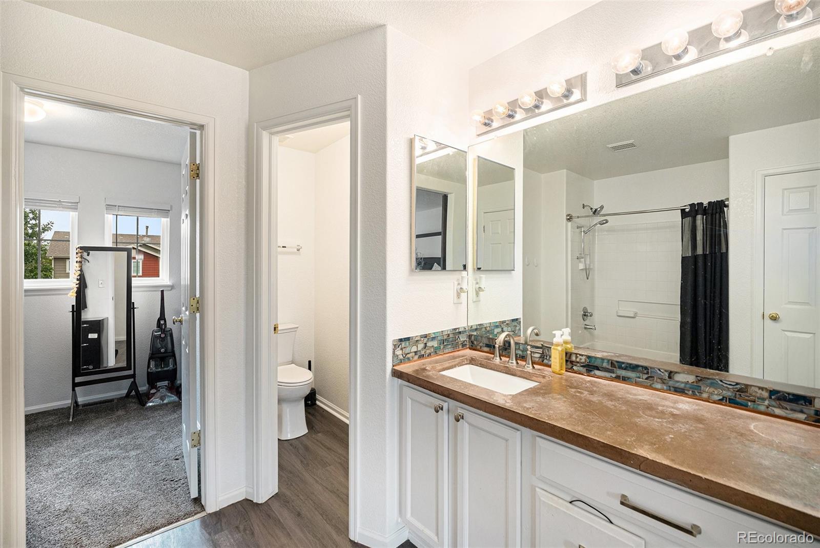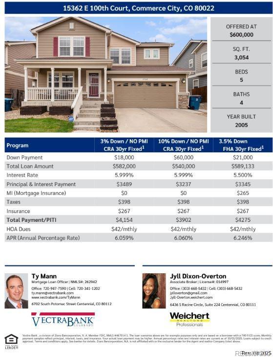 Welcome to this spacious 5-bed, 4-bath home in the rapidly growing community of Commerce City! With over 3,000 sq. ft. of comfort and style, this move-in-ready gem offers fresh new carpet and paint inside and out. The beautifully updated kitchen is the heart of the home, featuring a massive, functional island with durable concrete counters and custom cabinetry — perfect for cooking, entertaining, and everyday life. The main level offers a bright family room and a versatile formal dining or flex space along with a convenient powder bath. Upstairs, you’ll find generously sized bedrooms, including a massive primary suite with sweeping views and a spa-like five-piece bath. The fully finished basement extends your living space with a large family room, a conforming bedroom, and a newly updated full bath — ideal for guests or multi-generational living. Enjoy Colorado’s outdoor lifestyle in the spacious, fenced backyard with a covered patio and outdoor kitchen setup, perfect for gatherings year-round. This home checks every box — comfort, style, space, and location! ****THIS PROPERTY MAY BE ELIGIBLE FOR A LENDER INCENTIVE OF CASH BACK AFTER CLOSING!! ASK ME ABOUT DETAILS AND CHECK OUT THE FLYER IN SUPPLEMENTS.