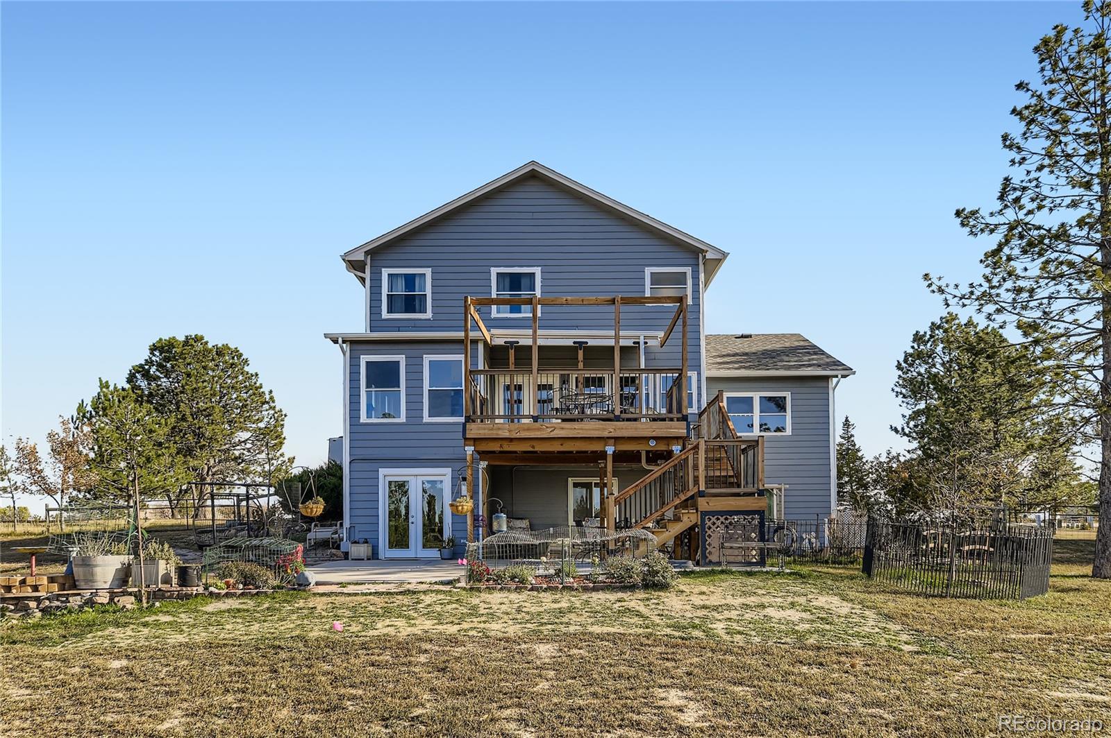 Are you looking for a charming home on acreage in the Elizabeth area? This is it! This beautifully maintained home features 6 bedrooms, 4 bathrooms, attached 2 car garage and a 1500 square foot insulated workshop/garage. This home also features a whole home humidifier to help keep you comfortable. The yard has a sprinkler system in front and back. The property features natural grassland, Ponderosa Pine trees, flowering shrubs, flower beds and a fire pit to enjoy and entertain family and friends. And on the cooler evenings, the gas fireplace in the family room is the place to be! Come tour this home to appreciate it's uniqueness.