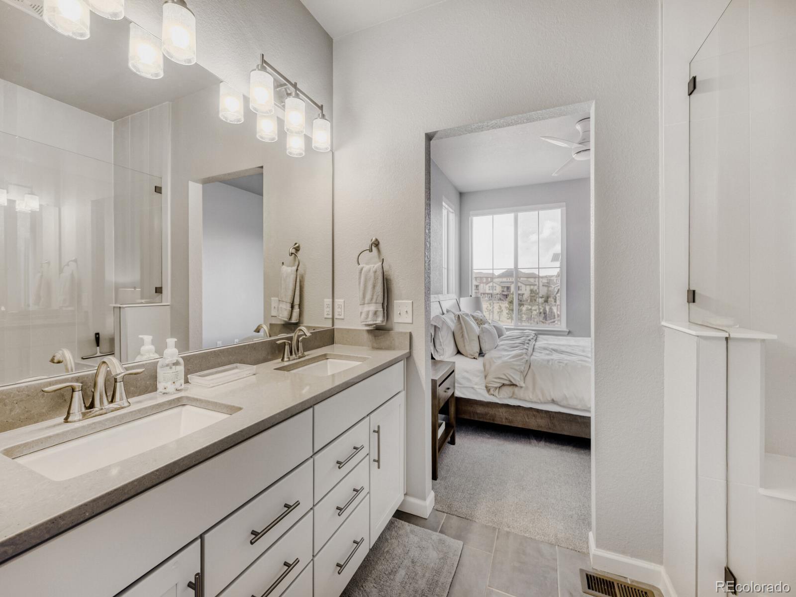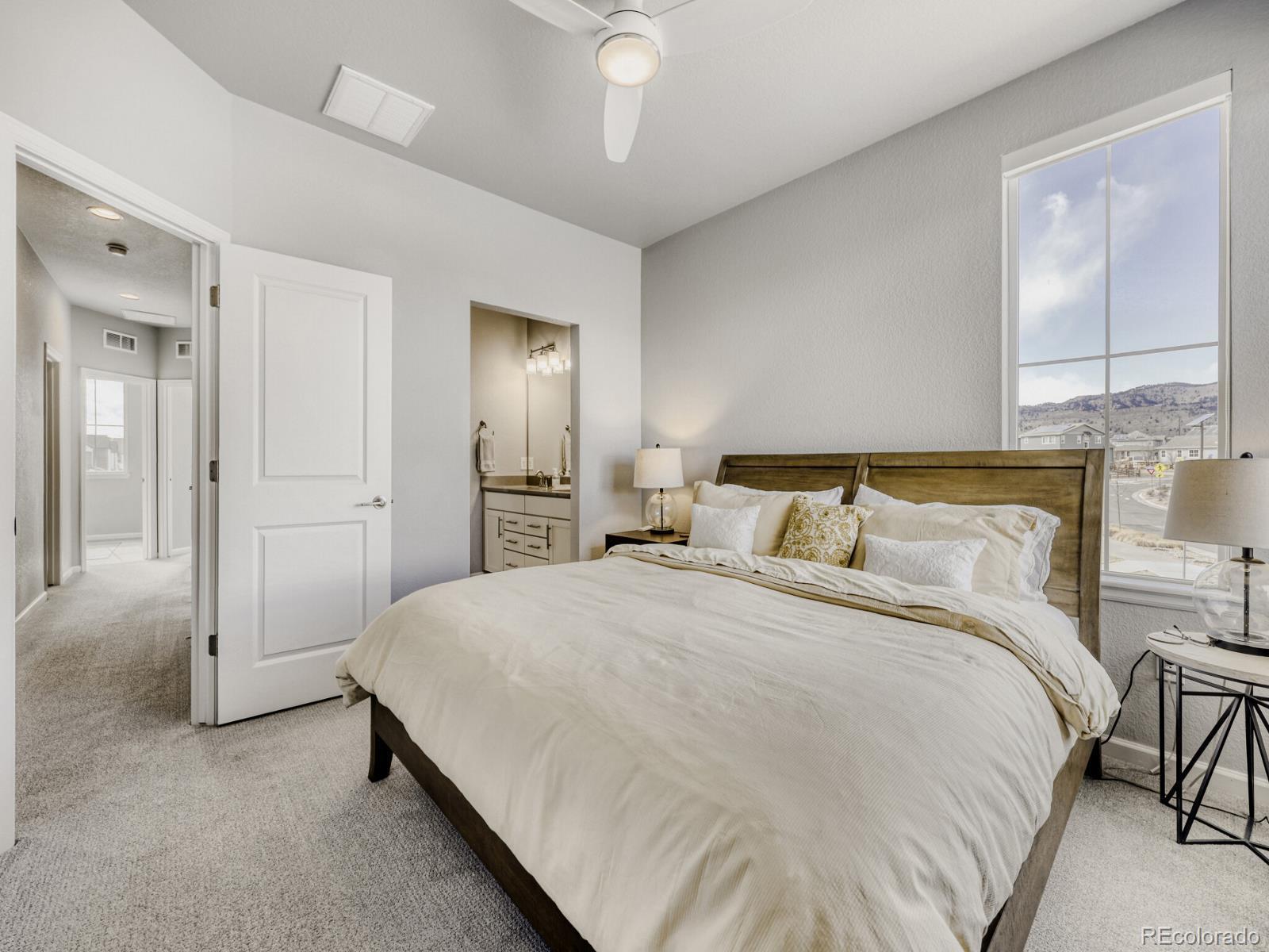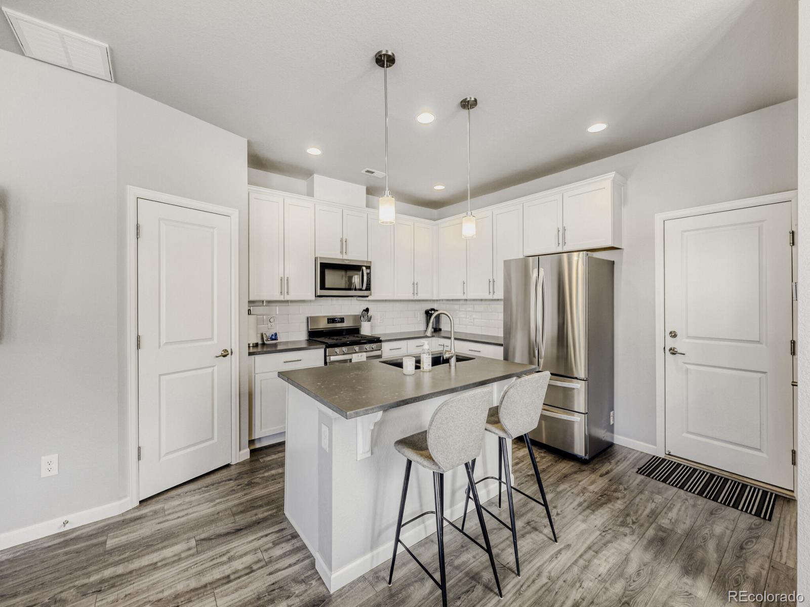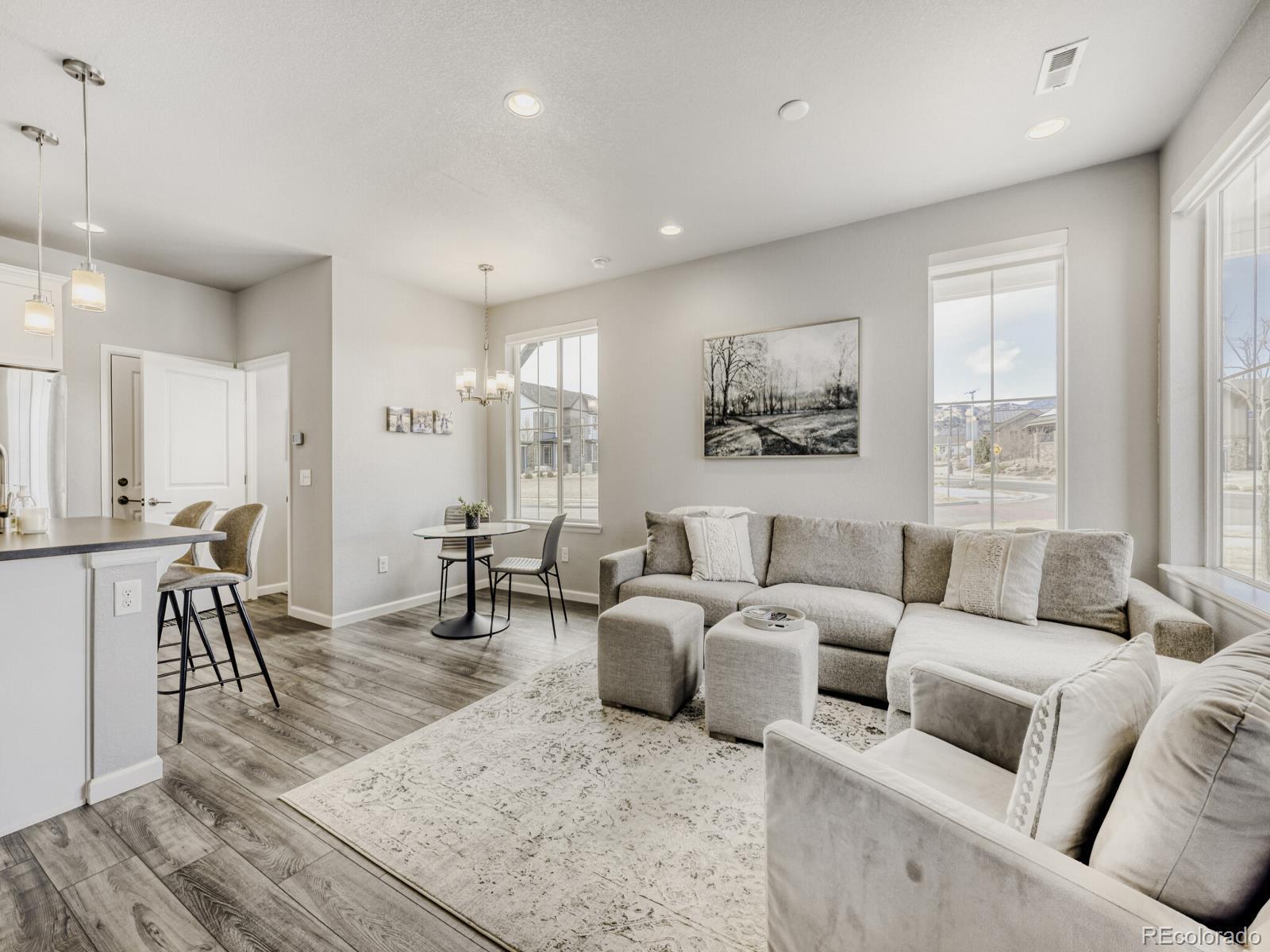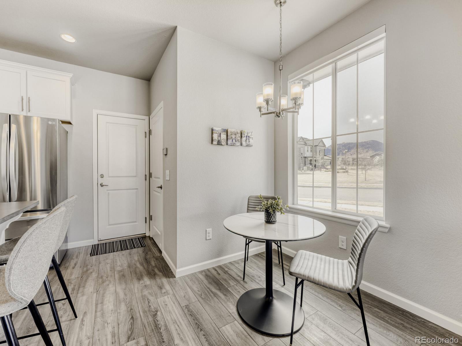 Impeccable West Arvada End Unit Townhome Facing Park With Incredible Mountain Views!! $17,500 Grant Available / Could Be Sold Fully Furnished (Crate & Barrel, Pottery Barn & Room & Board Furnishings) / Owner Financing Available / Shaker Sale Kitchen Cabinets / Soft Close Doors With Double Roll Out Trays / Quartz Counter Tops / Luxury Vinyl Plank Flooring / Crown Mounding 42' Cabinets / Pantry / Kitchen Island With Breakfast Bar / Power Blinds On Main Level / Brushed Nickel Hardware / 8' Insulated Garage Door / Recessed Lights / Ceiling Fans / 5 Burner Gas Stove / Glass Tile Backsplash / Electric Fireplace With Blower / Extended Covered Front Porch / 9' Ceilings On Both Levels / Pendant Lights / Walk-In Closets With Organizers / Dual Sinks / Frameless Shower Door / Humidifier / Upper Level Laundry With Full Size Washer & Dryer / Tile Floors / Central Air Conditioning / Walking Distance To Park, Clubhouse, Fitness Club, Pool, Trails & K-12 School!! This Unit Was A Special Decorators Package!! Location!! Location!! Location!! Top Rated Schools!!