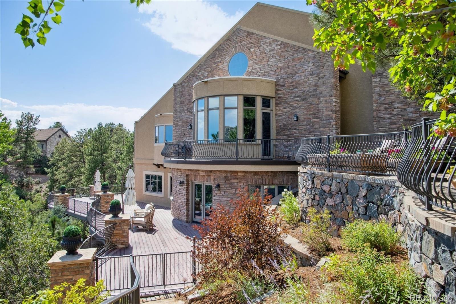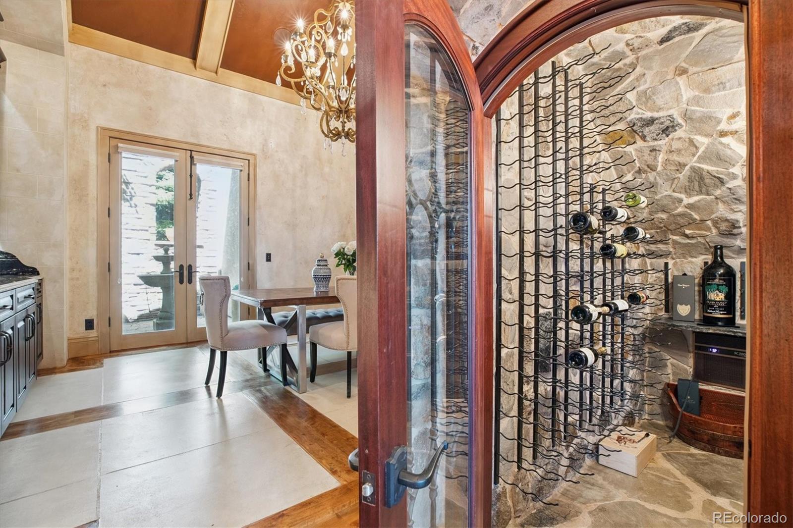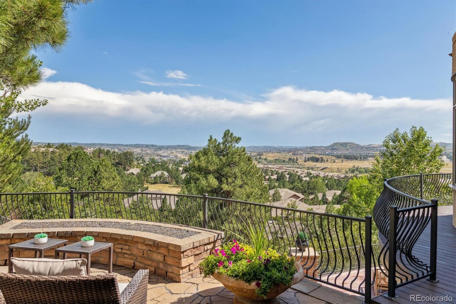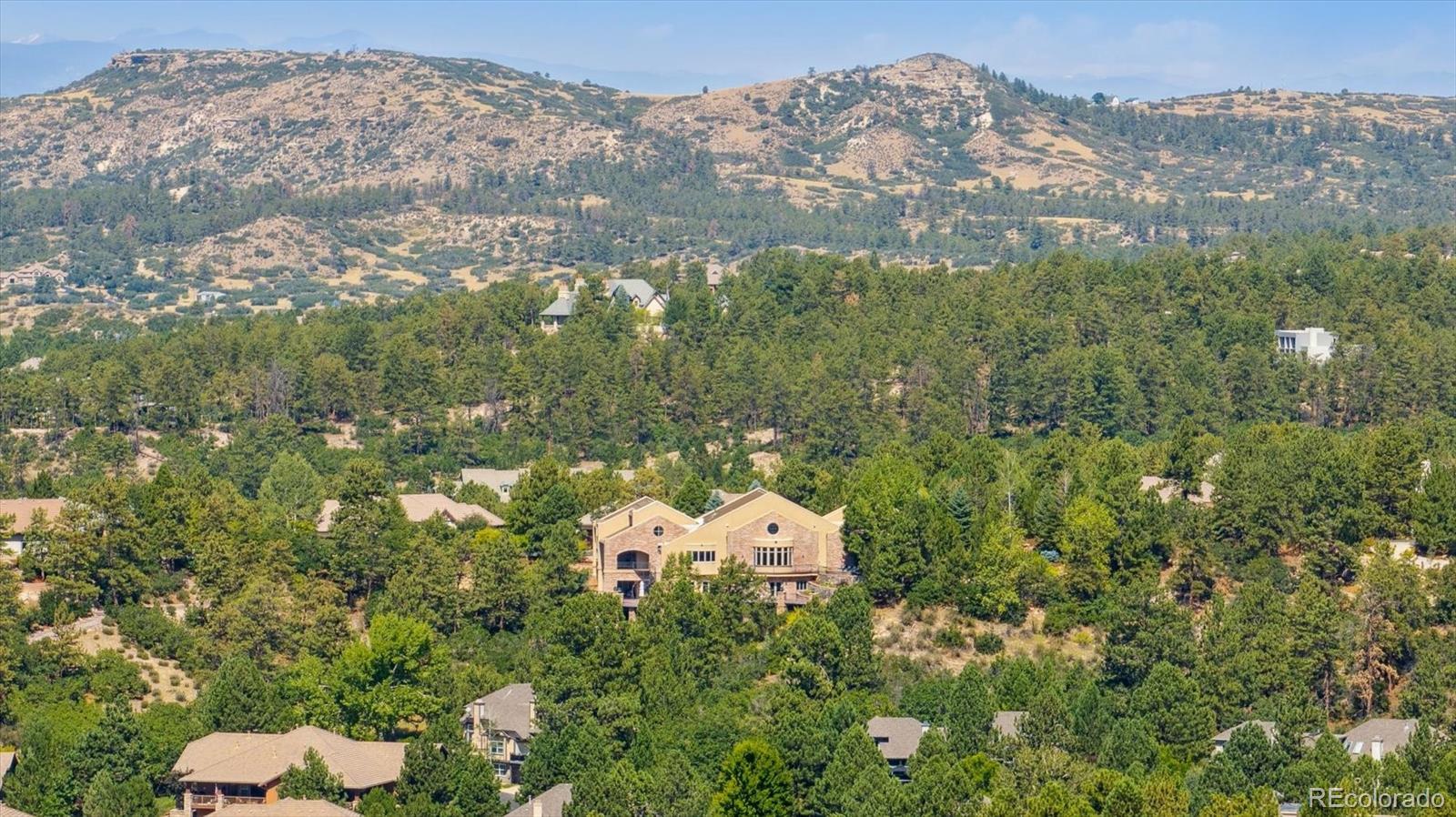 Spectacular Views & Unparalleled Luxury in Castle Pines Village. Nestled on a serene 1.75-acre wooded lot in the exclusive Castle Pines Village, this custom estate offers the perfect blend of privacy, elegance, and breathtaking views. From the moment you step inside, you are greeted by a stunning entryway and exquisite custom woodwork that set the tone for the home’s timeless charm. The great room, highlighted by soaring wood cathedral ceilings and walls of windows, frames panoramic mountain views and flows seamlessly into the gourmet kitchen. Designed for both everyday living and entertaining, the kitchen features top-of-the-line appliances, a large center island, and an adjacent 300-bottle wine cellar. A formal dining room provides an elegant space for gatherings, while multiple living areas invite comfort and relaxation. The primary suite is a true retreat, offering dramatic views, a spa-inspired bath with heated floors, infinity tub, steam shower, and a custom wardrobe dressing room. Each of the spacious secondary bedrooms features en suite baths, and a private guest suite with deck access ensures comfort for visitors. Designed for entertainment, this home includes a bonus room with a pub-style bar and billiards, a theater room, and a private office with custom built-ins. A cozy den with a grand fireplace provides yet another inviting living space. Step outside to experience unbelievable outdoor living with multiple decks overlooking the treetops and mountains, a fire pit, hot tub spa, and a beautifully landscaped private yard. This rare Castle Pines Village retreat combines luxurious living with Colorado’s natural beauty. Fantastic gated community with swimming, tennis, fitness center trails and Security rate access to restaurants and shopping.