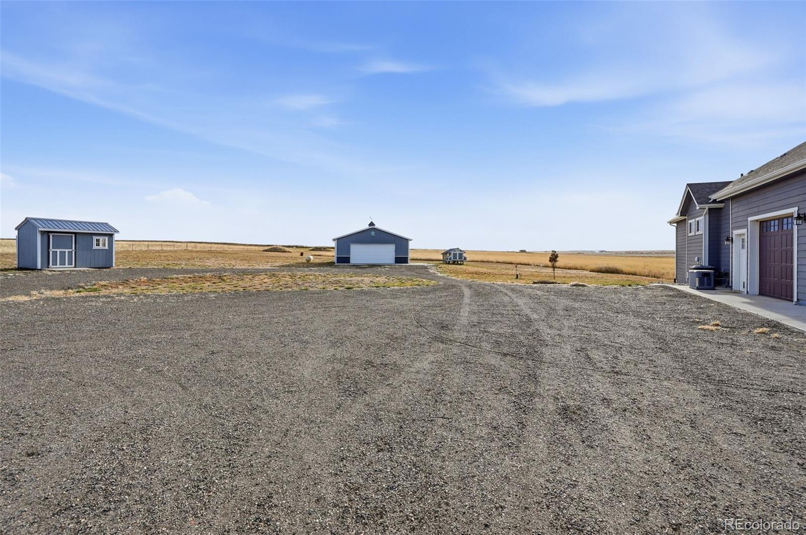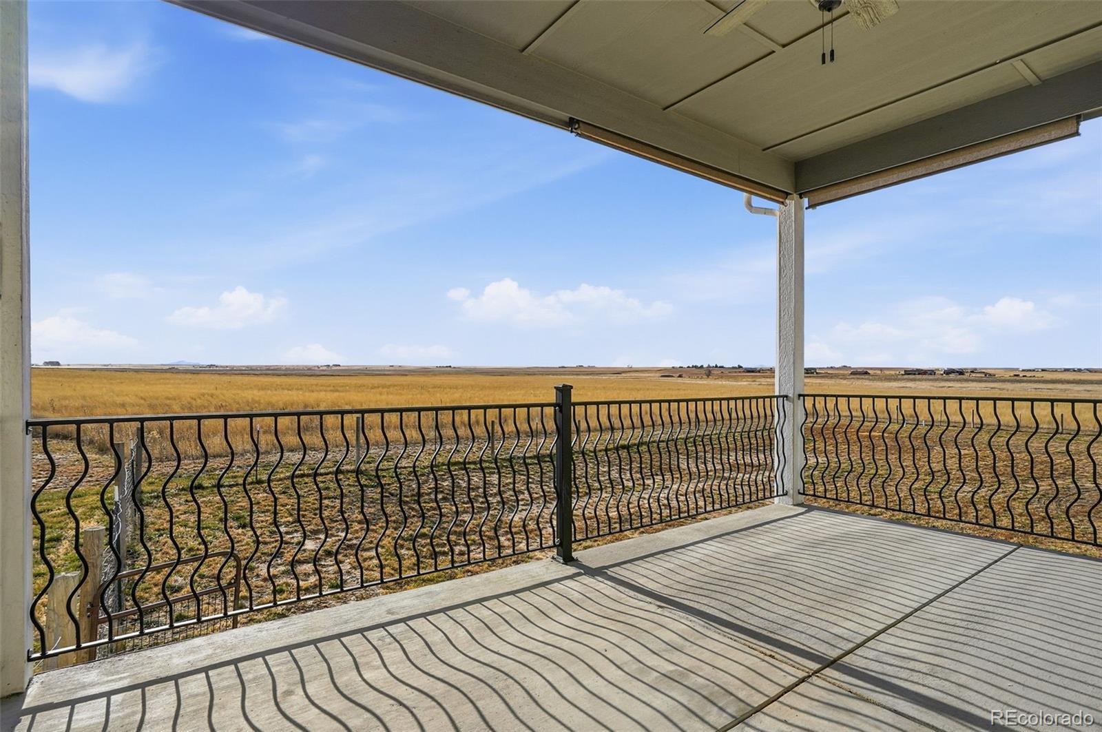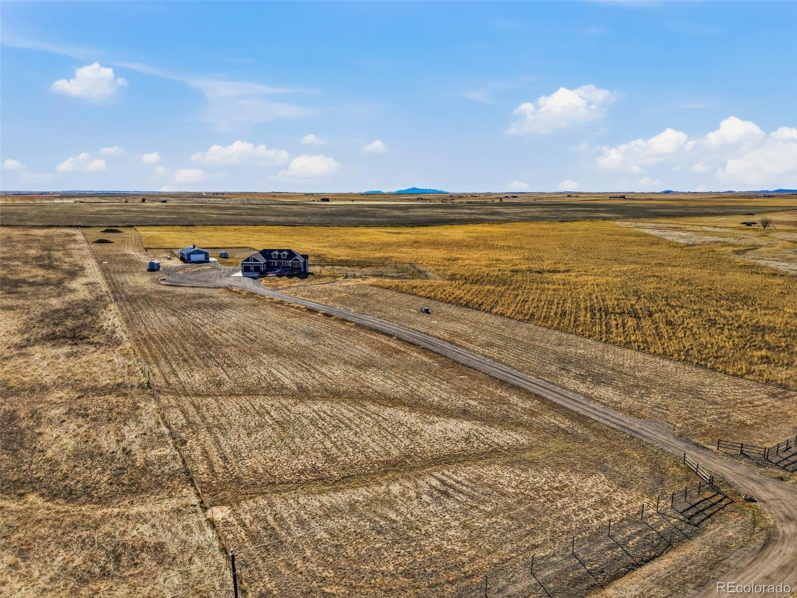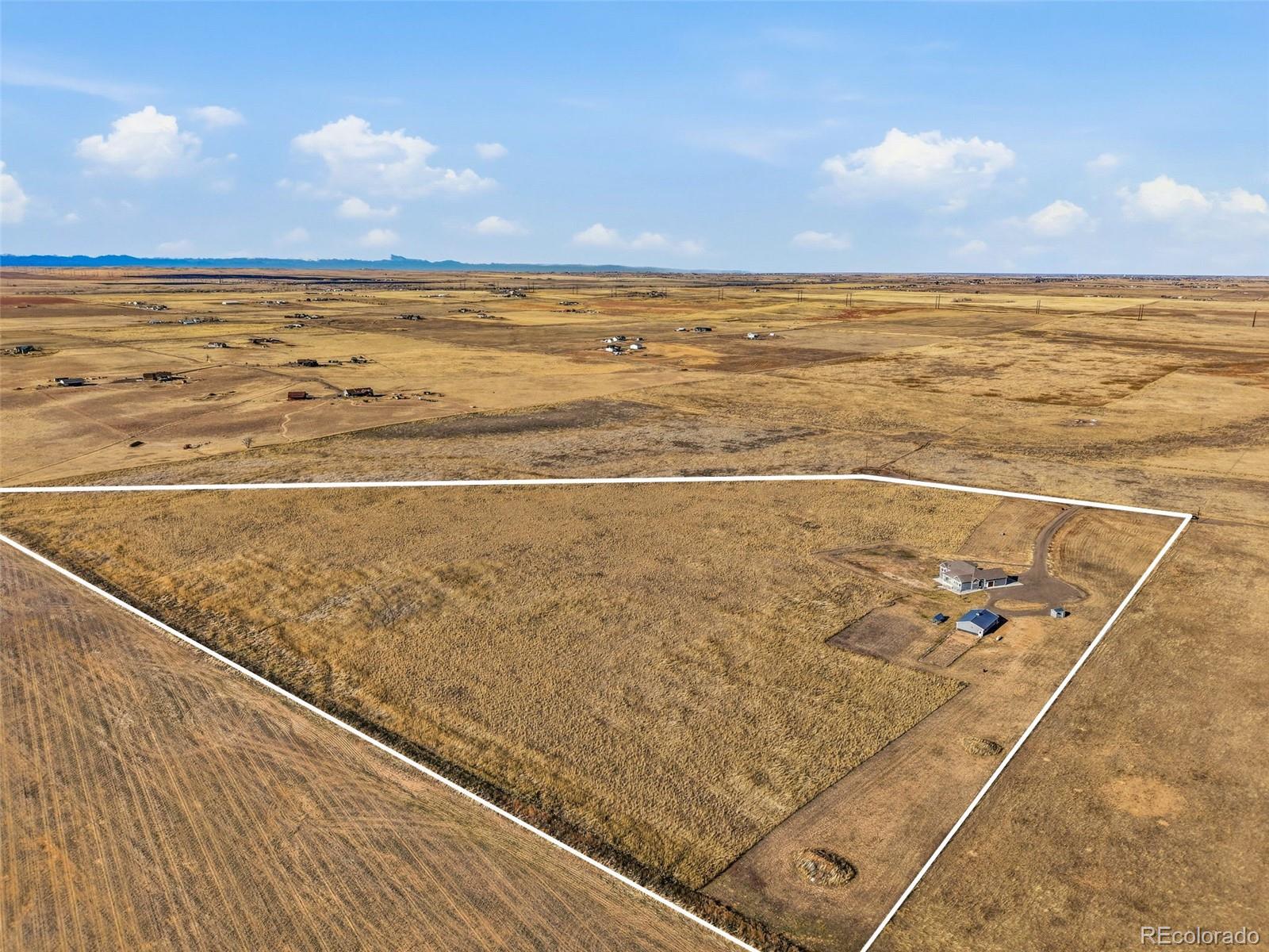 Situated on 40 acres of level, sunlit plains with expansive skies and panoramic distant Rocky Mountain views, this property offers complete privacy with no immediate neighbors—ideal for equestrian activities, gardening, raising animals, or pure seclusion. This stunning modern ranch home offers 4 bedrooms and 4 bathrooms across 5,756 total square, featuring soaring vaulted ceilings and expansive windows that flood the interiors with natural light. At the heart of the home is a gourmet kitchen equipped with a large granite island, whitewashed soft-close cabinetry, ZLINE professional stainless range, Bosch appliances, farmhouse sink, and custom tile backsplash—perfect for daily meals or entertaining. The luxurious primary suite includes dual walk-in closets and a spa-inspired bathroom with an oversized walk-in shower, rainfall fixture, pebble flooring, and elegant stone and tile finishes. The finished walk-out basement serves as an exceptional entertainment level, complete with a full wet bar featuring stone accents and new appliances, a dedicated wine room, and a home theater with projector—ideal for game nights. This level also provides an additional bedroom, bathroom, and a fitness room that can easily be converted to a fifth bedroom. Additional highlights include a water filtration system, an oversized 3 car attached garage, matching chicken coop, and expansive deck offering views of seasonal beauty: spring wildflowers, summer starry nights, and snow-capped Rocky Mountains. A heated outbuilding, originally designed as a kennel, features a sealed concrete floor with full-length wrought-iron trench drain for easy cleaning, a partially completed dog washing station with existing plumbing and framing, and a spacious office area pre-plumbed for an additional bathroom. Escape to your private Colorado ranch retreat at 50950 East Maplewood Place, just 45 minutes from DIA and DTC—delivering convenient city access alongside unparalleled peace and privacy.