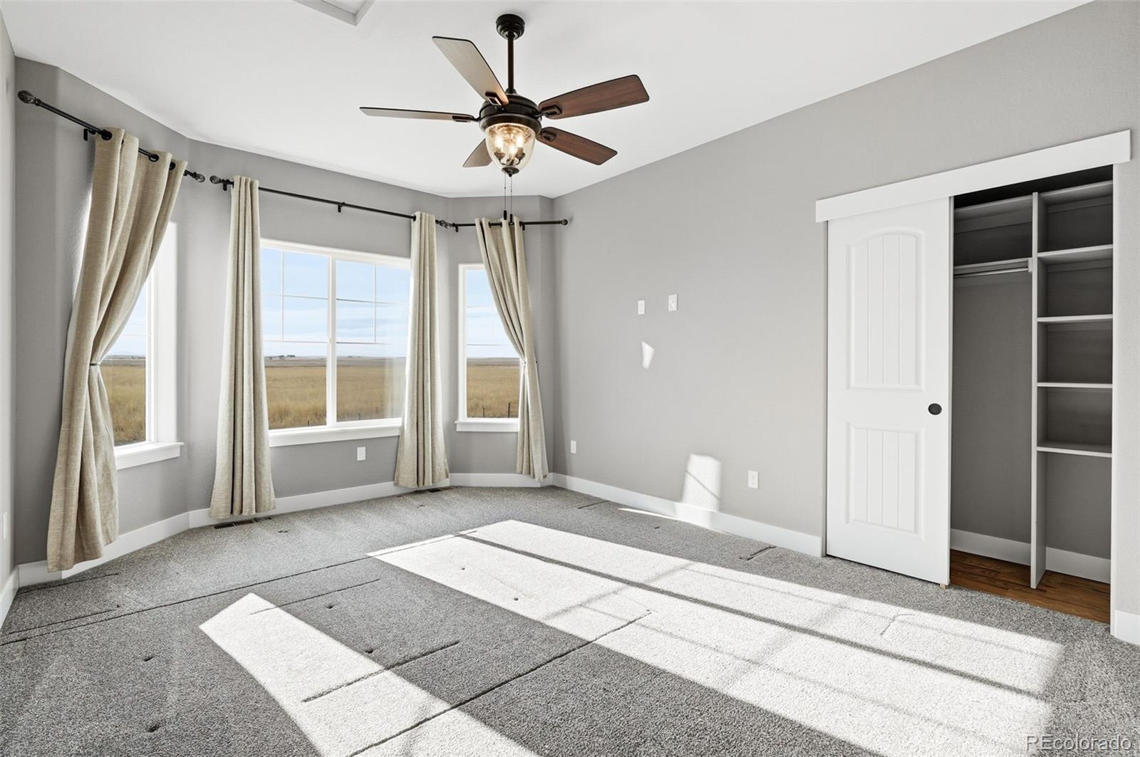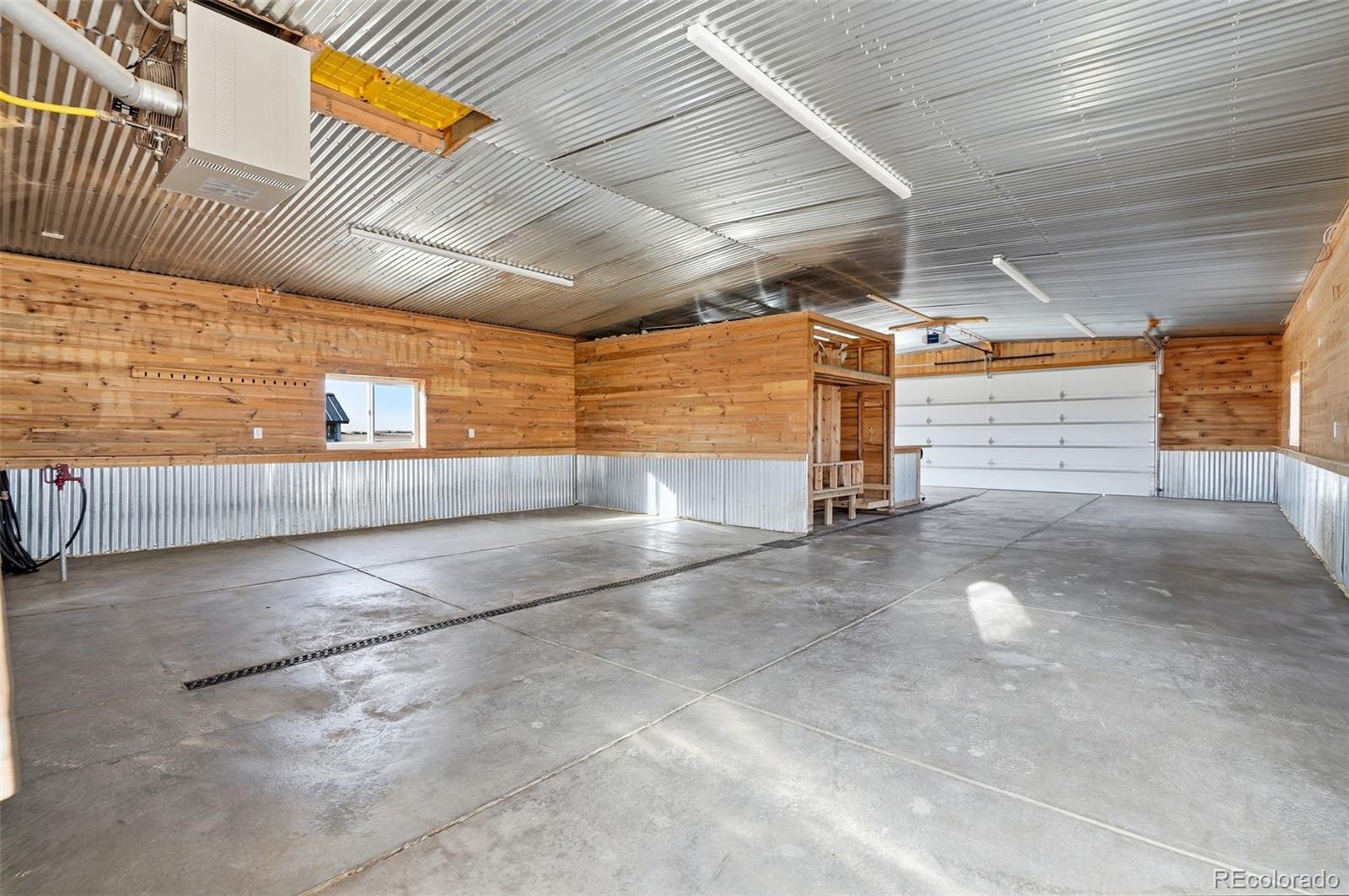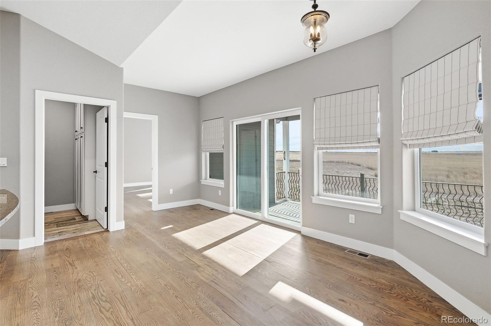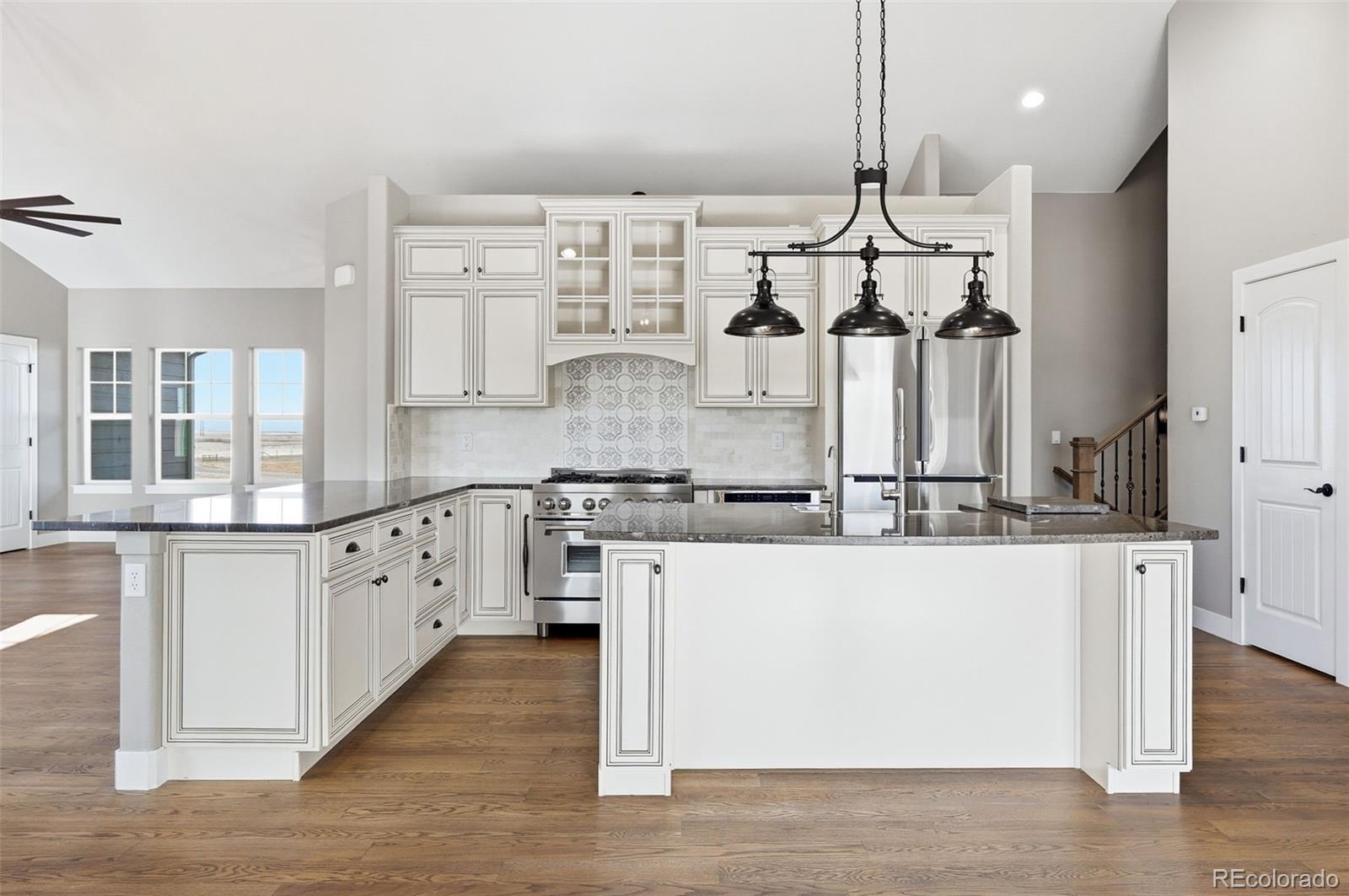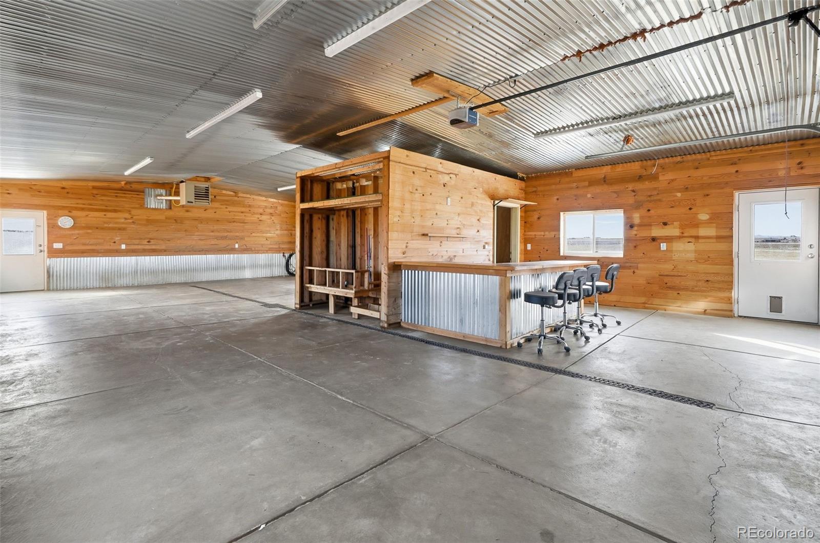Situated on 40 acres of level, sunlit plains with expansive skies and panoramic distant Rocky Mountain views, this property offers complete privacy with no immediate neighbors—ideal for equestrian activities, gardening, raising animals, or pure seclusion. This stunning modern ranch home offers 4 bedrooms and 4 bathrooms across 5,756 total square, featuring soaring vaulted ceilings and expansive windows that flood the interiors with natural light. At the heart of the home is a gourmet kitchen equipped with a large granite island, whitewashed soft-close cabinetry, ZLINE professional stainless range, Bosch appliances, farmhouse sink, and custom tile backsplash—perfect for daily meals or entertaining. The luxurious primary suite includes dual walk-in closets and a spa-inspired bathroom with an oversized walk-in shower, rainfall fixture, pebble flooring, and elegant stone and tile finishes. The finished walk-out basement serves as an exceptional entertainment level, complete with a full wet bar featuring stone accents and new appliances, a dedicated wine room, and a home theater with projector—ideal for game nights. This level also provides an additional bedroom, bathroom, and a fitness room that can easily be converted to a fifth bedroom. Additional highlights include a water filtration system, an oversized 3 car attached garage, matching chicken coop, and expansive deck offering views of seasonal beauty: spring wildflowers, summer starry nights, and snow-capped Rocky Mountains. A heated outbuilding, originally designed as a kennel, features a sealed concrete floor with full-length wrought-iron trench drain for easy cleaning, a partially completed dog washing station with existing plumbing and framing, and a spacious office area pre-plumbed for an additional bathroom. Escape to your private Colorado ranch retreat at 50950 East Maplewood Place, just 45 minutes from DIA and DTC—delivering convenient city access alongside unparalleled peace and privacy.