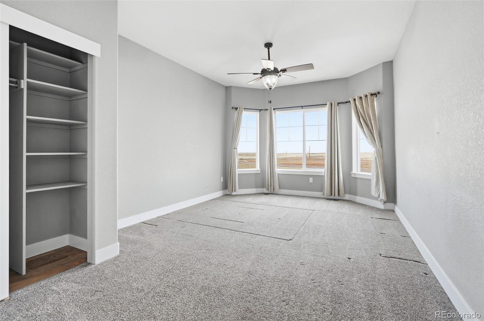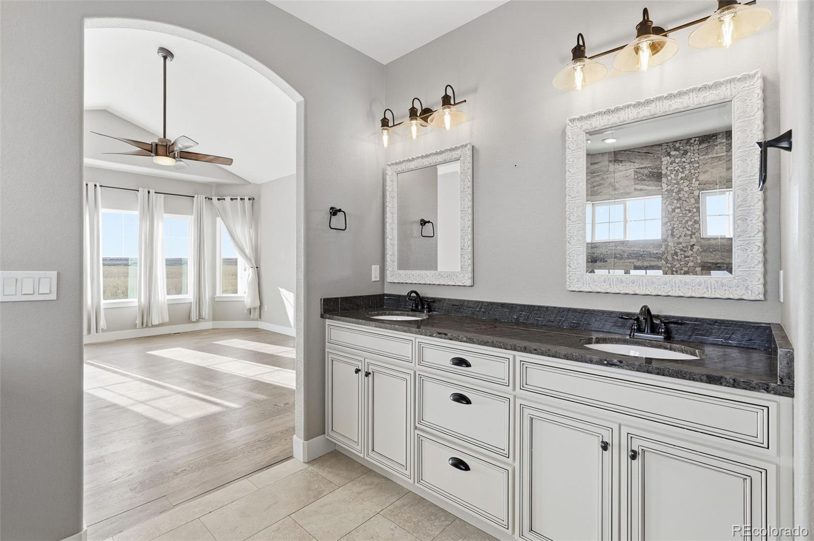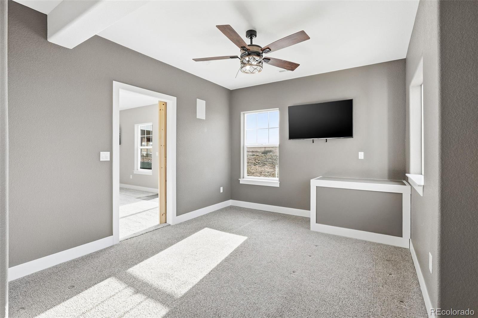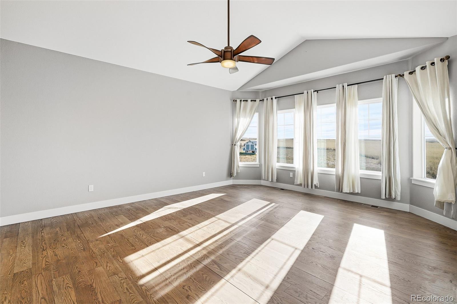 Situated on 40 acres of level, sunlit plains with expansive skies and panoramic distant Rocky Mountain views, this property offers complete privacy with no immediate neighbors—ideal for equestrian activities, gardening, raising animals, or pure seclusion. This stunning modern ranch home offers 4 bedrooms and 4 bathrooms across 5,756 total square, featuring soaring vaulted ceilings and expansive windows that flood the interiors with natural light. At the heart of the home is a gourmet kitchen equipped with a large granite island, whitewashed soft-close cabinetry, ZLINE professional stainless range, Bosch appliances, farmhouse sink, and custom tile backsplash—perfect for daily meals or entertaining. The luxurious primary suite includes dual walk-in closets and a spa-inspired bathroom with an oversized walk-in shower, rainfall fixture, pebble flooring, and elegant stone and tile finishes. The finished walk-out basement serves as an exceptional entertainment level, complete with a full wet bar featuring stone accents and new appliances, a dedicated wine room, and a home theater with projector—ideal for game nights. This level also provides an additional bedroom, bathroom, and a fitness room that can easily be converted to a fifth bedroom. Additional highlights include a water filtration system, an oversized 3 car attached garage, matching chicken coop, and expansive deck offering views of seasonal beauty: spring wildflowers, summer starry nights, and snow-capped Rocky Mountains. A heated outbuilding, originally designed as a kennel, features a sealed concrete floor with full-length wrought-iron trench drain for easy cleaning, a partially completed dog washing station with existing plumbing and framing, and a spacious office area pre-plumbed for an additional bathroom. Escape to your private Colorado ranch retreat at 50950 East Maplewood Place, just 45 minutes from DIA and DTC—delivering convenient city access alongside unparalleled peace and privacy.