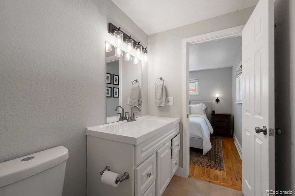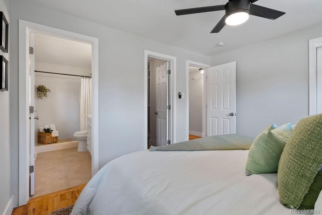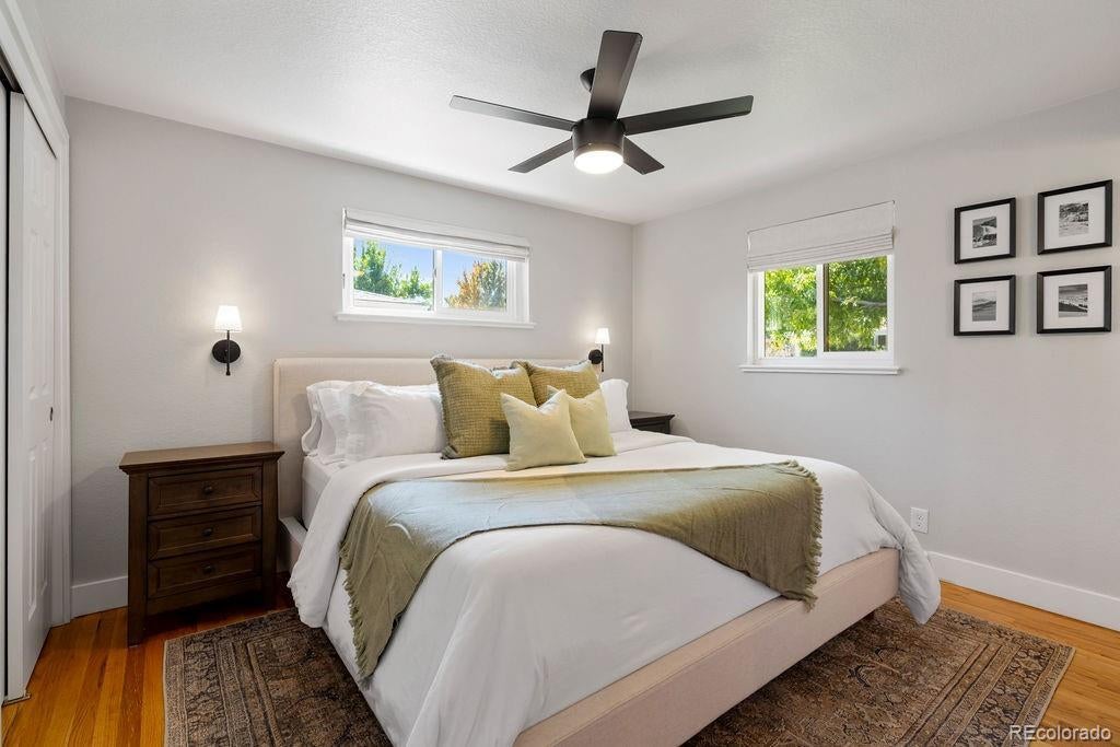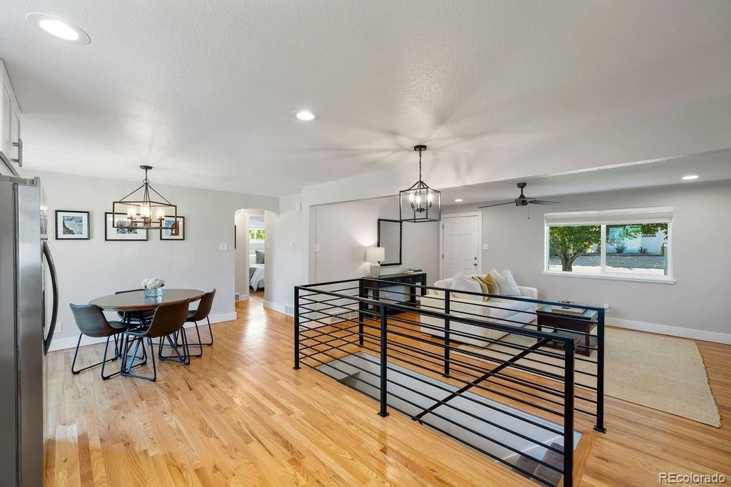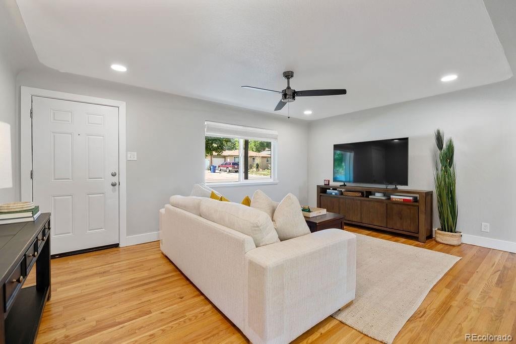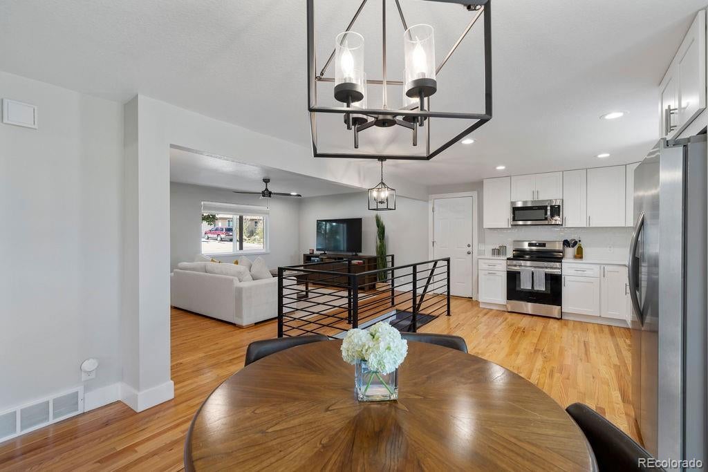 Welcome to 5406 Iris Street, an impeccably remodeled 4-bedroom, 3-bath home in the heart of Arvada. Every inch of this residence has been thoughtfully updated — from the fresh paint and new fixtures throughout to the custom design choices in the kitchen and baths. The open floor plan is enhanced by beautiful hardwood flooring that flows seamlessly from living spaces into the kitchen. The heart of the home is the all-new kitchen, featuring soft-close wood cabinets, quartz slab countertops, stainless steel appliances, and a glass tile backsplash. Bathrooms shine with modern designer tile, custom tile showers and tubs, and quartz counters. Beautiful double-pane windows bring in natural light while boosting energy efficiency. Additional finishing touches include custom steel railings, elegant lighting upgrades, and clean, contemporary aesthetics everywhere. Outside, the home sits on a generous lot framed by mature trees and lush greenery. The newly landscaped yard features a paver patio perfect for entertaining, plus new fencing for privacy and structure. The property was completely remodeled last year, so it’s move-in ready with all the systems refreshed. Unbeatable location — just a short walk to Olde Town Arvada's shops, restaurants, bars, and vibrant local events. Also convenient to light rail and major transit corridors for commuting. This is truly a rare find — style, comfort, and location all in one.