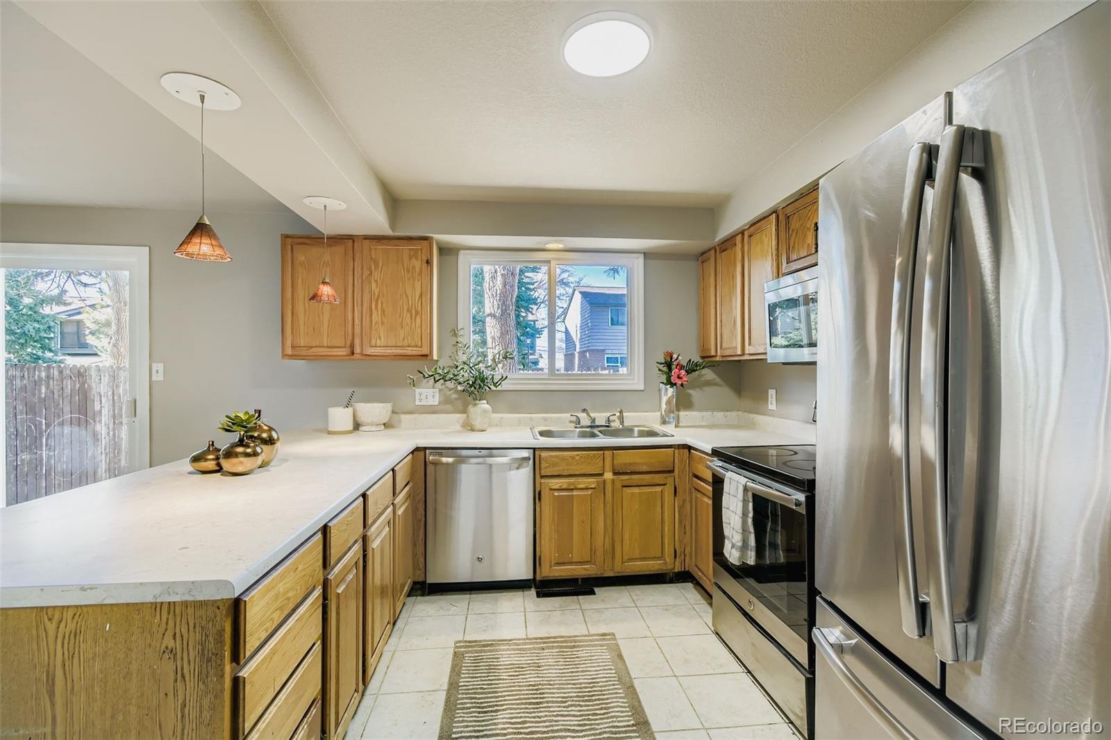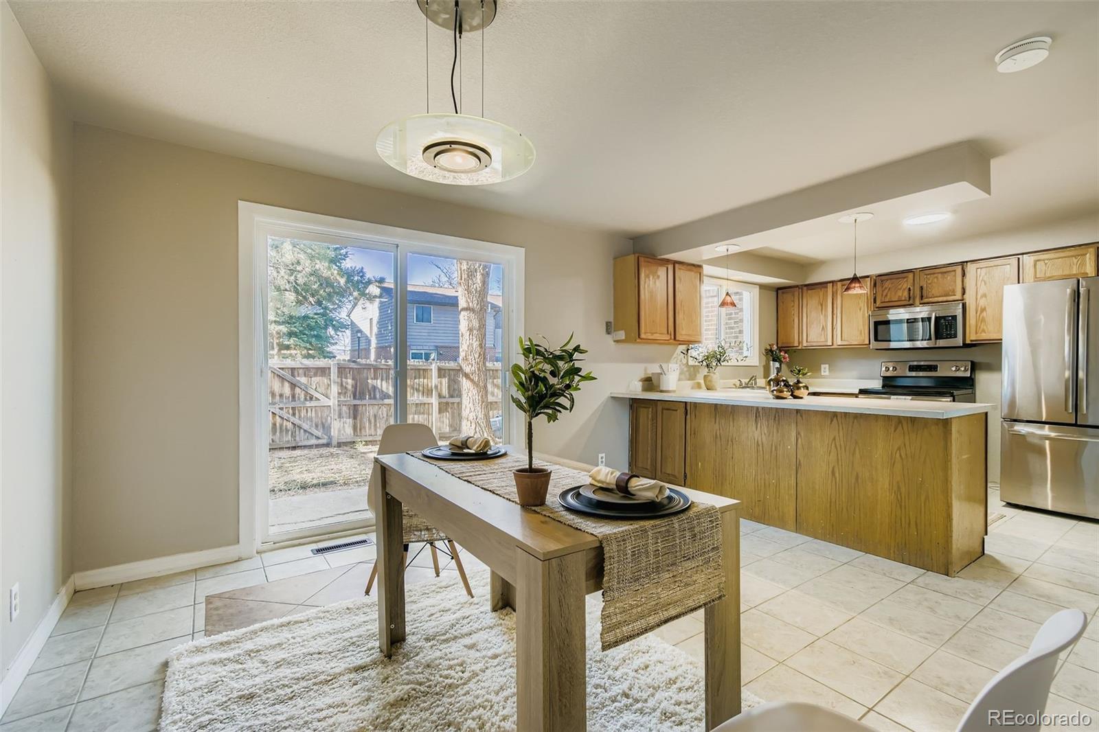 Welcome to this spacious, move-in ready home in Westminster —offering 2,346 Total sq. ft. with 5 bedrooms and 3.5 bathrooms. The main floor features a bright living room accented with decorative wood paneling and stylish floor tiles, creating an inviting space for relaxation or entertaining. The kitchen offers stainless steel appliances, a pantry, and a bar-style seating area, flowing seamlessly into the dining area with decorative tile flooring and direct access to the private fenced backyard with a lawn and concrete patio. Upstairs, you’ll find three bedrooms and two full bathrooms with tub/shower combinations. The spacious primary suite boasts a walk-in closet, private balcony, and full en-suite bathroom. The two additional bedrooms overlook the peaceful community courtyard. Enjoy the new carpet, fresh interior paint, and new LED ceiling lights throughout the home. Bathrooms have been refreshed with new toilets, refinished bathtubs, updated tub valves, and new fixtures, including a new mirror in the upstairs guest bath. The finished basement includes two non-conforming bedrooms, a bathroom with a shower and tile flooring, and a dedicated laundry room with washer and dryer included. The HVAC system has been recently serviced and cleaned, offering added peace of mind. The backyard gate opens directly to the community courtyard—perfect for relaxing—and is just a short walk to the community pool and clubhouse. An assigned parking space (#1F) sits conveniently in front of the unit, with additional guest parking available throughout the community. Located in Westminster, this home offers a quick commute to I-36 and I-25 and is close to local restaurants and amenities. Move-in ready! Contact the listing agent today to schedule your private showing. Listing deems reliable but the buyer and buyer's agent are responsible for verifying listing information.