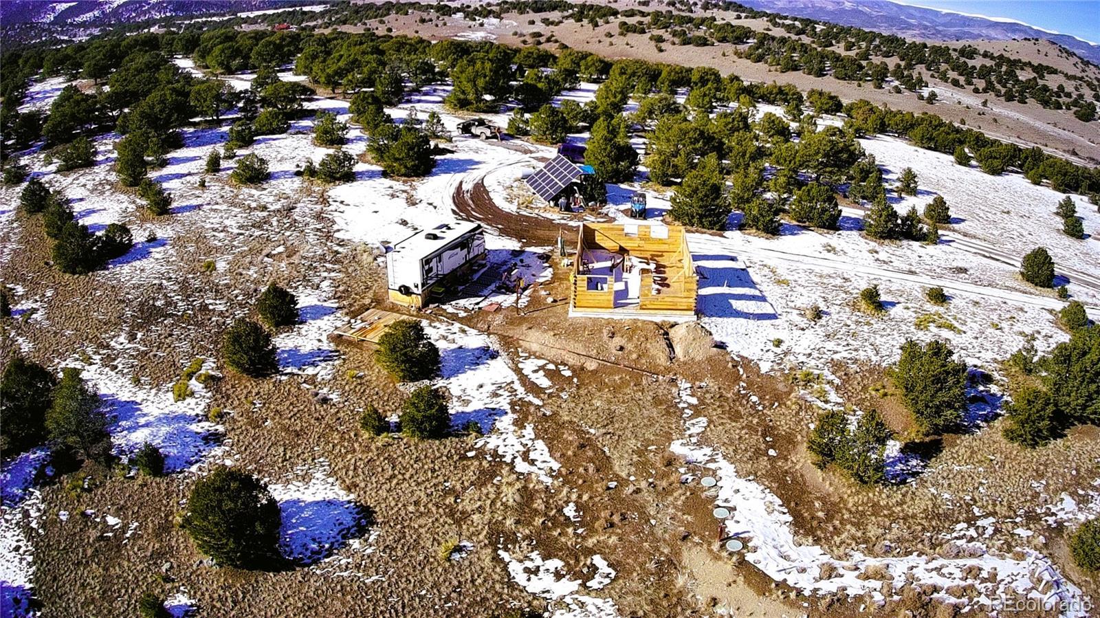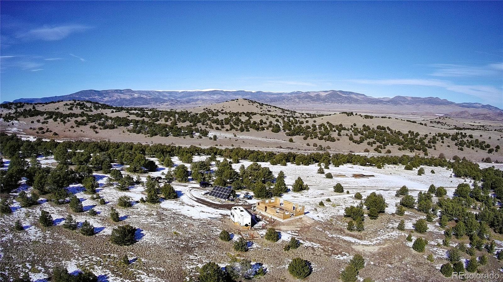 Step into your serene off-grid oasis on 38 expansive acres in a highly desirable area of the San Luis Valley just 10 minutes south of Del Norte. Enjoy the perfect balance of mountain privacy and convenient access to nearby amenities. This property includes building plans for a two-story, 1360 square-foot home. The home needs two additional rows of logs before trusses can be set, giving you a significant start on completing your dream home. A 2022 Grand Design camper is included on the property, providing comfortable on-site living while you build. The off-grid solar system feathers a powerful 9,000-watt inverter with 50-amp service, comparable to 220-240 electrical service, offering reliable and efficient energy. There are also four lithium ion phosphate batteries with room for more that are connected to a generator connected to a propane tank for back up power. This property is well equipped with essential infrastructure, including a domestic well and a newly installed engineered septic system completed in 2024. The land has been surveyed and all operation paperwork will be provided for a seamless transition. Whether you’re seeking a private mountain retreat with absolutely stunning 360 views, a sustainable lifestyle, or a head start on a home, this exceptional property offers space, independence, and peace of mind in one of Colorado’s most scenic regions.