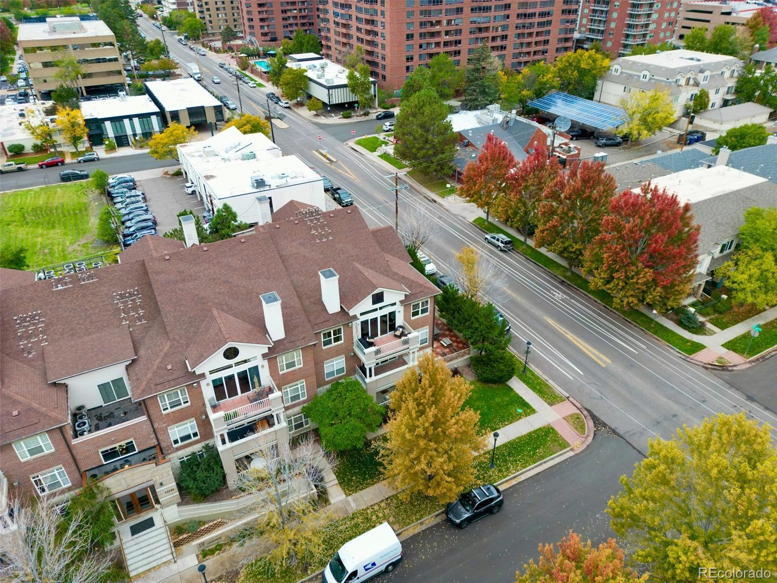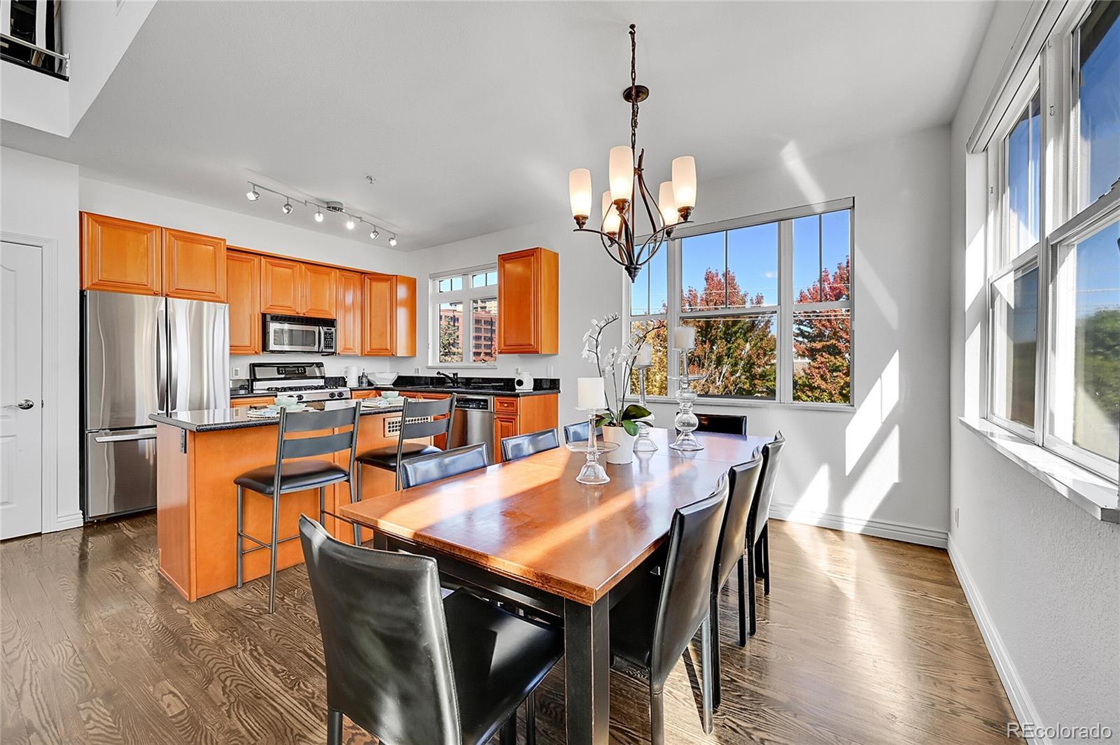 This exceptional top floor condominium situated in the prestigious Le Jardin complex in Cherry Creek presents a remarkable opportunity for discerning buyers. Offering 2 well-appointed bedrooms and 2 bathrooms plus a loft overlooking the living room within 1,545 square feet, this residence combines elegance with modern living. The expansive living room features a high vaulted ceiling, hardwood floors, with superb natural light, creating an inviting environment. The kitchen, equipped with stainless steel appliances and dark stone countertops, flows seamlessly into the dining area, perfect for both casual and formal dining experiences. The primary bedroom suite boasts an ensuite bathroom with a double vanity and luxurious shower with custom built in cabinetry in the closet area. Residents can enjoy a private balcony, ideal for outdoor dining or relaxation while overlooking wooded views of the neighborhood and skyline. The property includes 2 deeded parking spaces in the private garage, ensuring convenience in urban settings. The community offers a host of amenities, including a fitness center and beautifully landscaped outdoor spaces, enhancing your living experience. Located in the vibrant Cherry Creek neighborhood, this property offers easy access to up-scale shopping, dining, and recreational activities, making it an ideal choice for those seeking a sophisticated urban lifestyle. These coveted top floor corner condominiums rarely come on the market, don’t wait to set up your private tour!