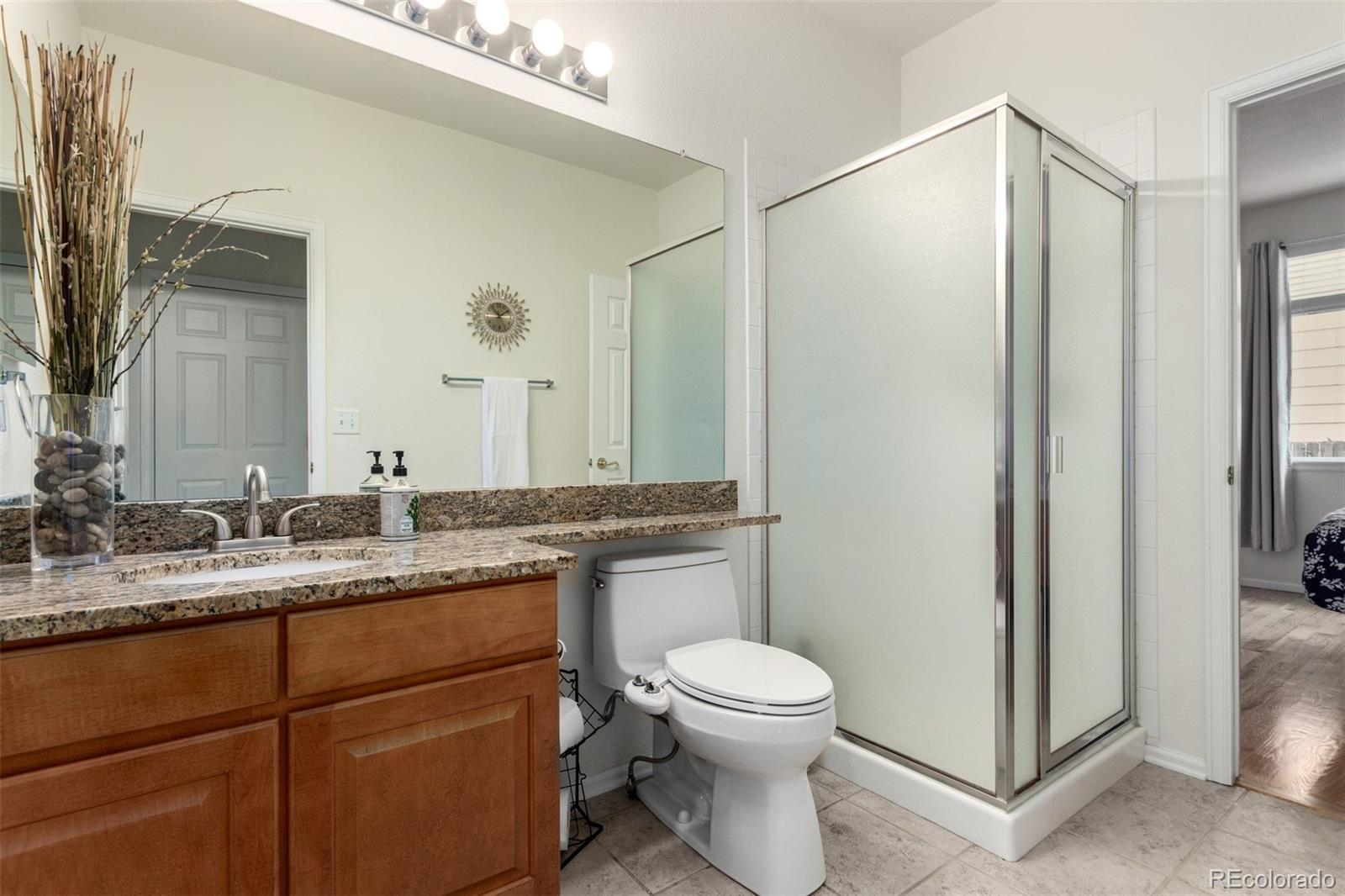 Spacious 5-bedroom, 4-bath home in a prime location with key system upgrades and room to make it your own! This well-maintained property features a main-level guest bedroom and full bath, perfect for guests or multigenerational living. Major updates include owned solar panels (not leased), new windows throughout, a new sewer line, new sump pump, and newer A/C, hot water heater, and whole-house humidifier. The finished basement offers additional living space, a full bathroom, and a large crawl space for storage. Freshly painted exterior, and all appliances-including washer and dryer-are included. Located near walking and hiking trails, shopping, restaurants, and with easy access to I-25, this home offers a solid foundation and incredible potential for personal updates. Don't miss this opportunity to call this house your home!