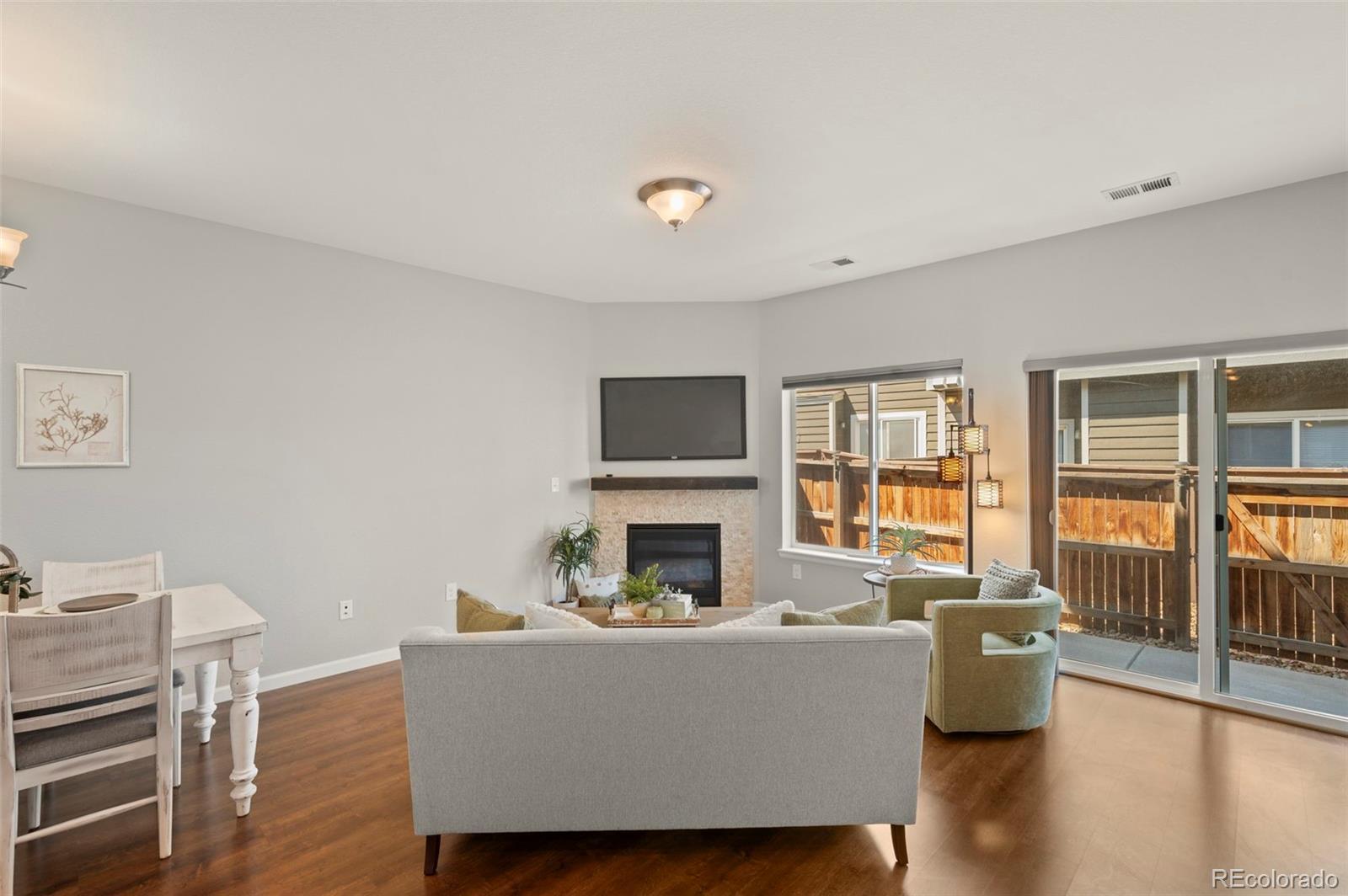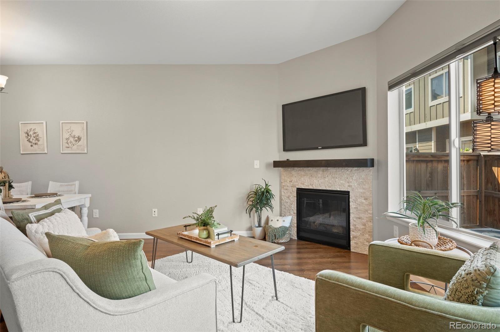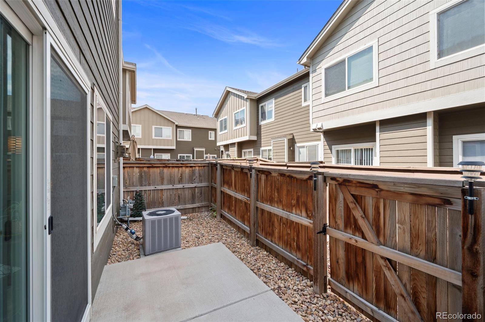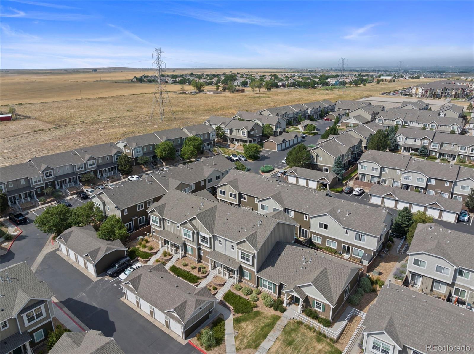 Welcome to 14700 E 104th Ave Unit 3003, a bright and modern 2-bedroom, 2.5-bathroom condo offering approximately 1,410 square feet in the highly sought-after Aspen Hills community of Commerce City, Colorado. Built in 2018, this stylish townhome combines comfort, convenience, and contemporary finishes, making it the perfect choice for homebuyers seeking low-maintenance living in a prime location. Inside, the open-concept floor plan provides an inviting layout for both everyday living and entertaining. The home features two spacious ensuite master bedrooms, each with its own walk-in closet and private bath. The kitchen has been beautifully updated with stainless steel appliances, granite countertops, and a large island—ideal for meal prep or casual dining. An elegant fireplace adds warmth and charm to the living room, creating a cozy atmosphere on Colorado evenings. Additional thoughtful upgrades including fresh paint, updated flooring, a cute fenced in private patio, and custom blinds throughout. The Aspen Hills neighborhood is known for its convenient location and welcoming community atmosphere. This home is just minutes from everyday amenities like grocery stores, coffee shops, gyms, and dining options. Shoppers will appreciate easy access to Prairie Center and Northfield shopping districts, while sports fans and concertgoers will love the quick drive to Dick’s Sporting Goods Park. Outdoor enthusiasts can enjoy Barr Lake State Park, Fronterra Park, and the Rocky Mountain Arsenal Wildlife Refuge for hiking, biking, fishing, and wildlife watching. For commuters, this condo offers a central location with easy access to major highways, Denver International Airport, and the entire Denver Metro area.
