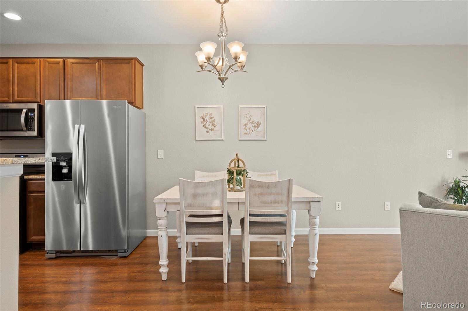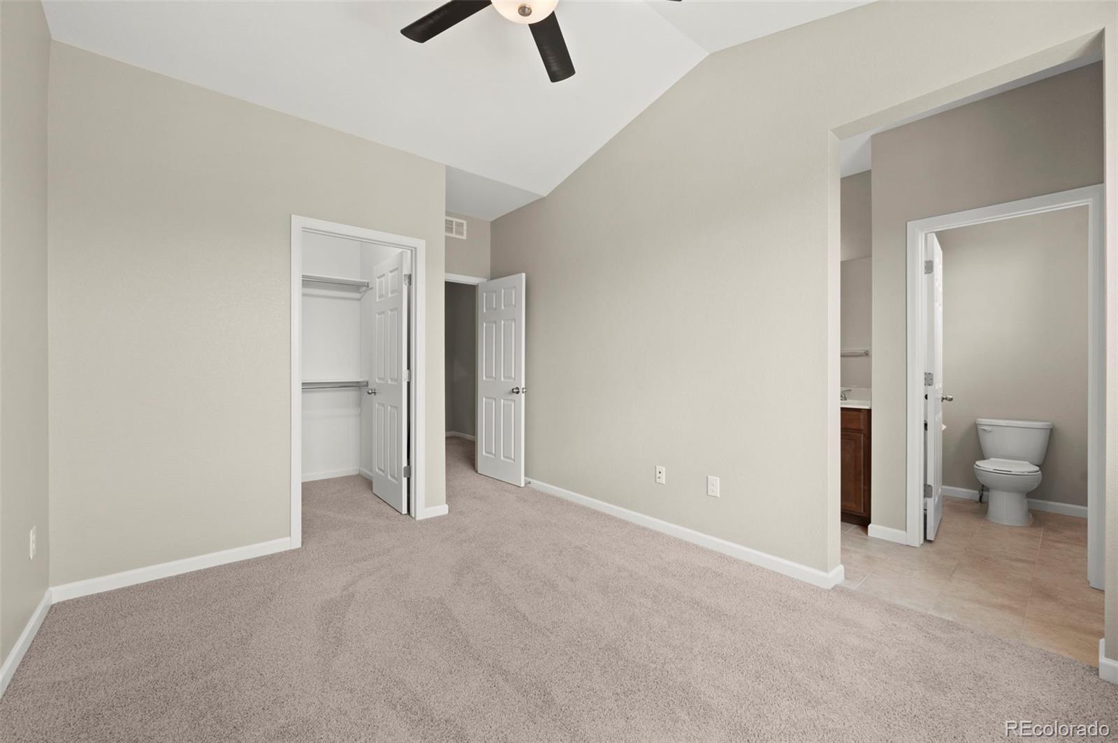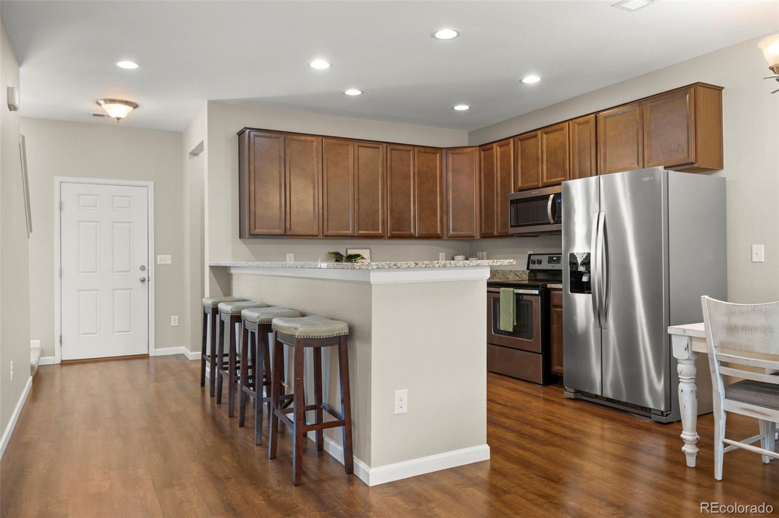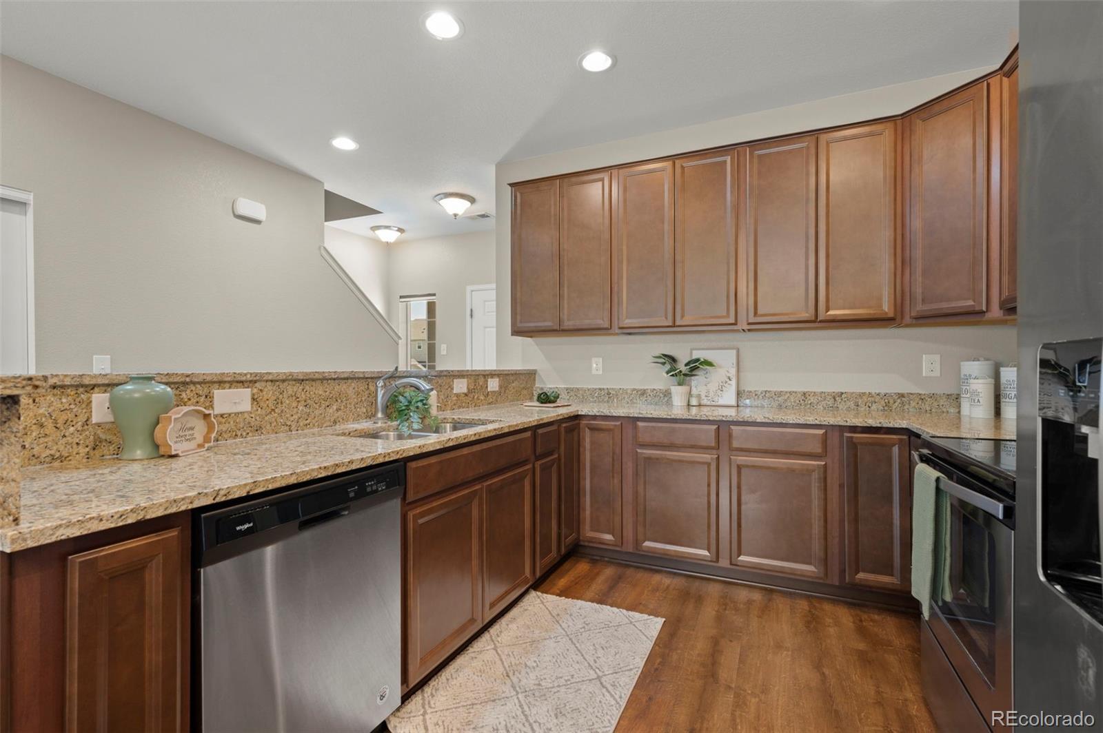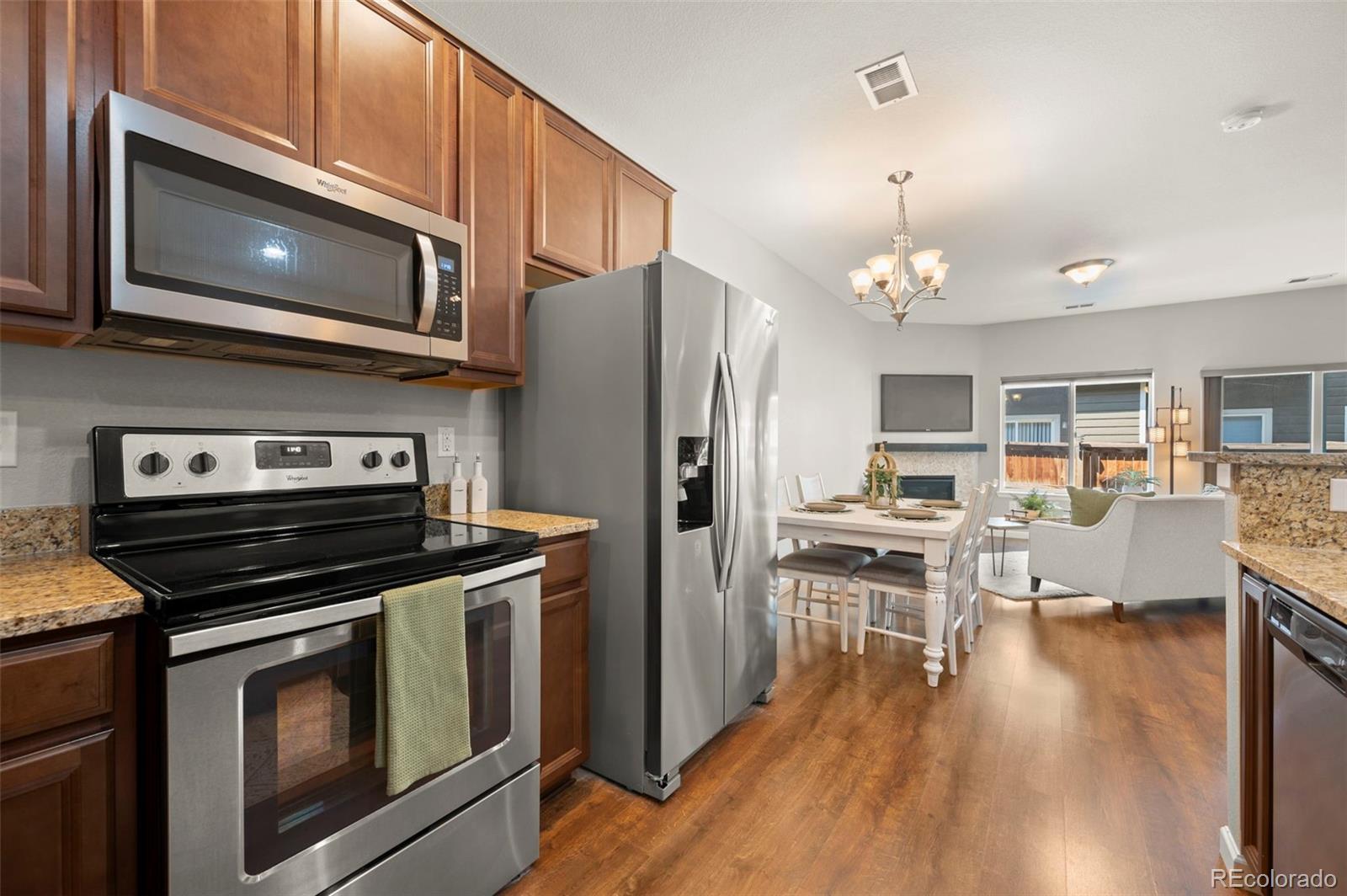 Welcome to 14700 E 104th Ave Unit 3003, a bright and modern 2-bedroom, 2.5-bathroom condo offering approximately 1,410 square feet in the highly sought-after Aspen Hills community of Commerce City, Colorado. Built in 2018, this stylish townhome combines comfort, convenience, and contemporary finishes, making it the perfect choice for homebuyers seeking low-maintenance living in a prime location. Inside, the open-concept floor plan provides an inviting layout for both everyday living and entertaining. The home features two spacious ensuite master bedrooms, each with its own walk-in closet and private bath. The kitchen has been beautifully updated with stainless steel appliances, granite countertops, and a large island—ideal for meal prep or casual dining. An elegant fireplace adds warmth and charm to the living room, creating a cozy atmosphere on Colorado evenings. Additional thoughtful upgrades including fresh paint, updated flooring, a cute fenced in private patio, and custom blinds throughout. The Aspen Hills neighborhood is known for its convenient location and welcoming community atmosphere. This home is just minutes from everyday amenities like grocery stores, coffee shops, gyms, and dining options. Shoppers will appreciate easy access to Prairie Center and Northfield shopping districts, while sports fans and concertgoers will love the quick drive to Dick’s Sporting Goods Park. Outdoor enthusiasts can enjoy Barr Lake State Park, Fronterra Park, and the Rocky Mountain Arsenal Wildlife Refuge for hiking, biking, fishing, and wildlife watching. For commuters, this condo offers a central location with easy access to major highways, Denver International Airport, and the entire Denver Metro area.