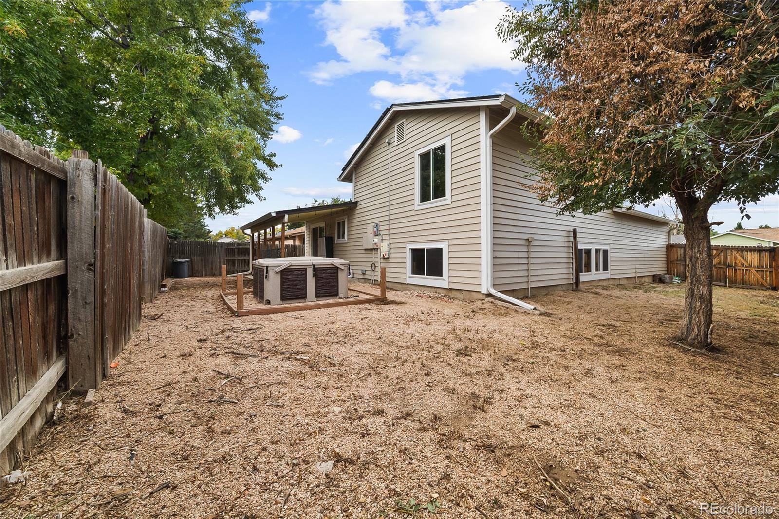 Welcome to this beautifully maintained 4-bedroom, 2-bath home offering a perfect blend of comfort, style, and modern updates. The open floor plan features abundant natural light and laminate flooring throughout, granite counters, stainless steel appliances, and warm hickory cabinets, complemented by updated paint. A wood burning fireplace anchors the living room and is the perfect spot to relax with family and friends. The finished basement, with a spacious family room, provides even more room to spread out and enjoy. Recent upgrades include a newer roof (2024) and owned solar panels (2021), adding long-term value and energy savings. Outside, the private and fully fenced backyard is ideal for entertaining with a covered patio and included hot tub. The yard is ready for your personal touch—a wonderful opportunity to design the outdoor space of your dreams, whether that means garden beds, play areas, or a lush retreat. Just a block from the park, this fantastic location combines everyday convenience with neighborhood charm. This home truly has it all!