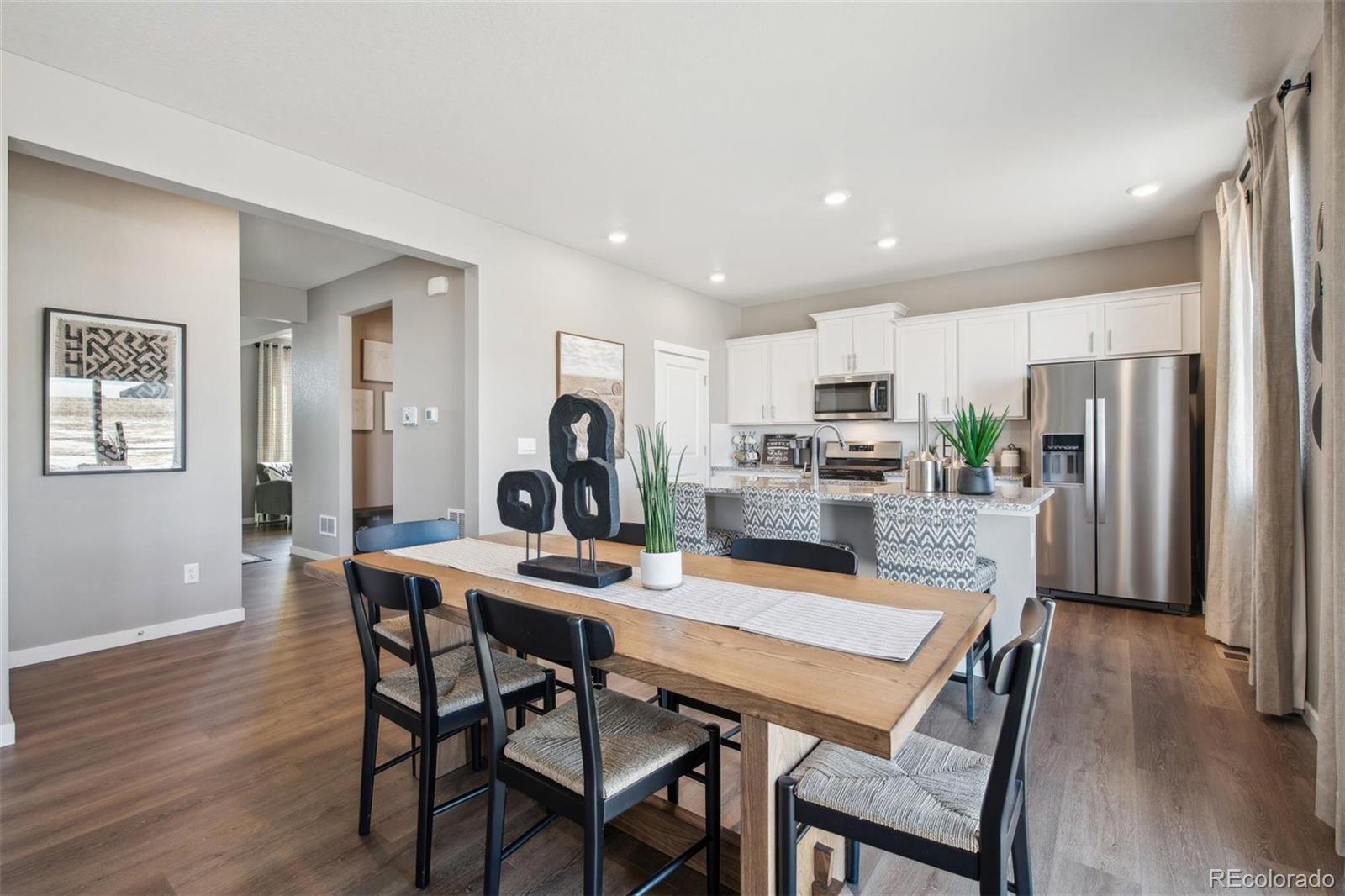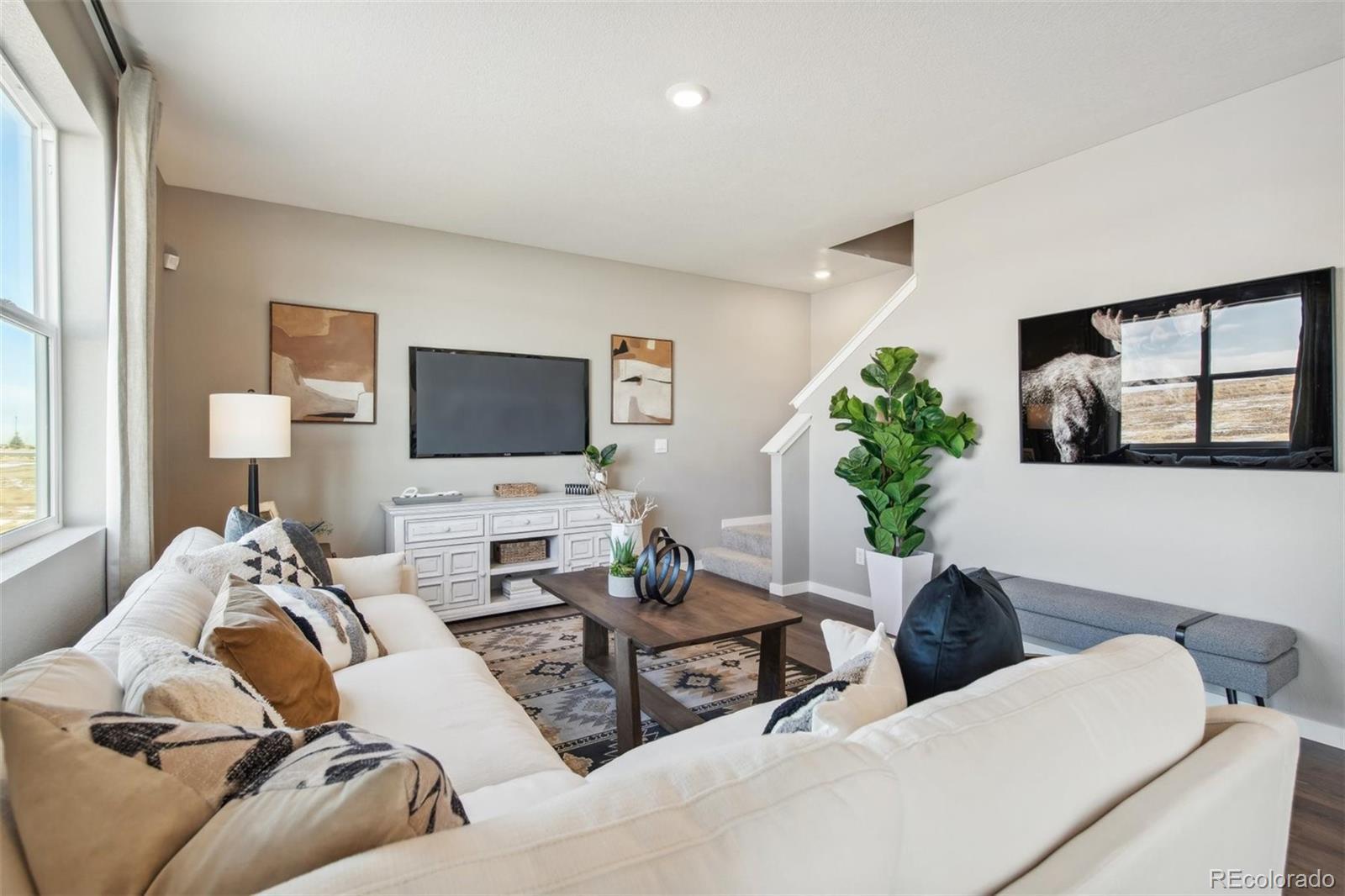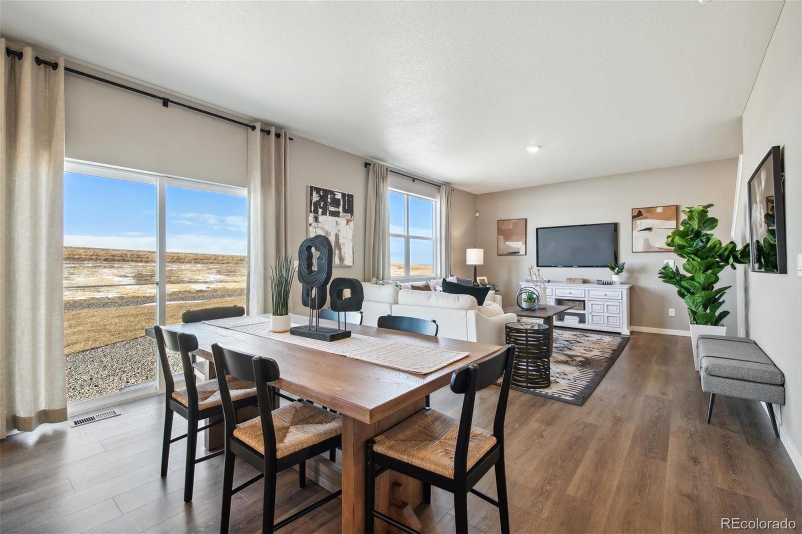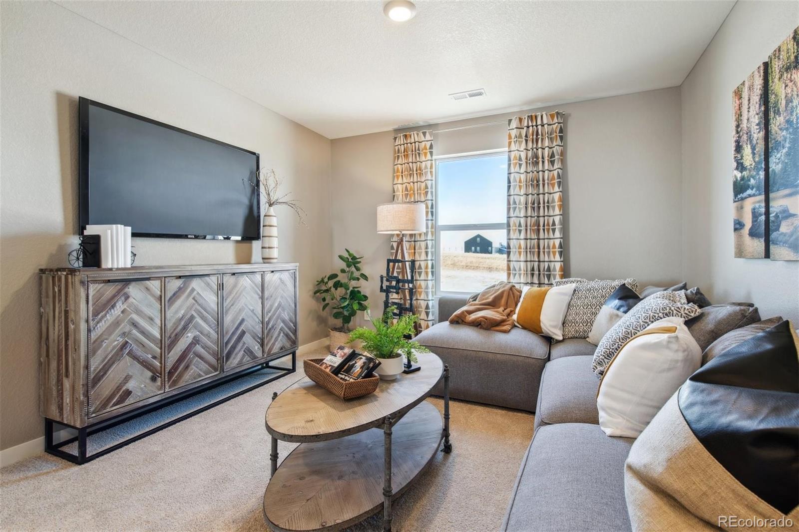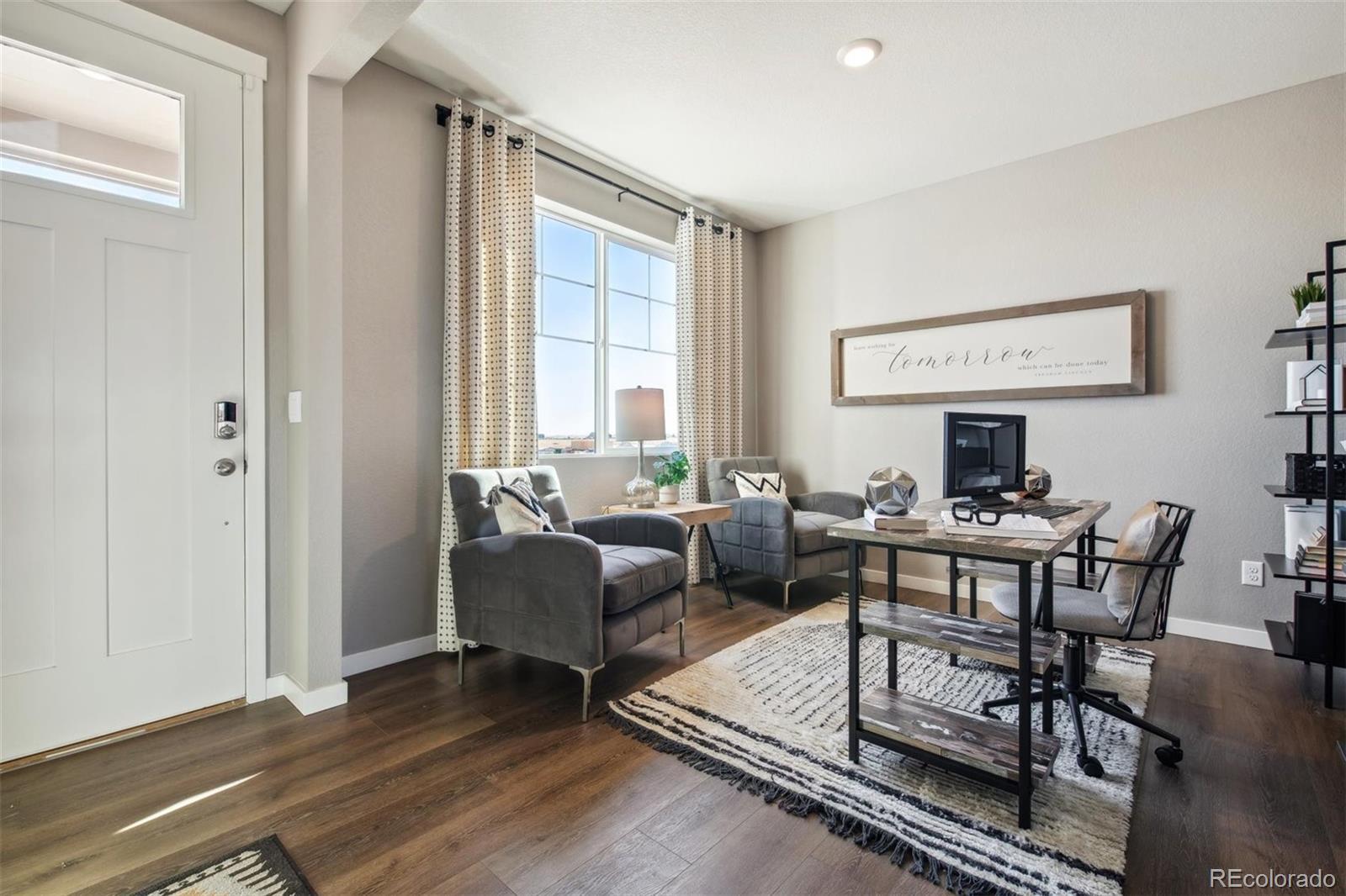 Prestigious Douglas County Schools! Popular 2-story with lots of living space with 3 bedrooms, 2.5 baths, main floor study, upstairs laundry Plus a loft that's a perfect hide-a-way. Soothing decor highlights grey cabinets with crown molding, solid surface countertops, subway tile kitchen backsplash and beautiful plank flooring on most of the first floor. Large corner lot is fully landscaped! This home includes an extensive list of included features such as A/C, stainless range, microwave and dishwasher, 2 panel interior doors, 8' front door, front yard xeriscape landscaping with trees, shrubs, and drip system for low maintenance, 8' tall garage door plus Smart home features like keyless entry, video doorbell, garage door control, lighting, thermostat and smart speaker! ***Estimated Delivery Date: November. Photos are representative and not of actual property***