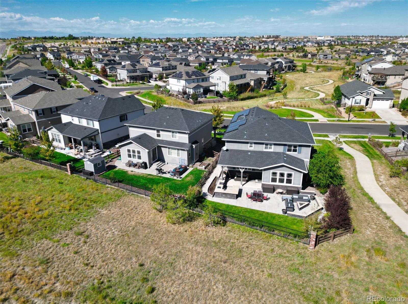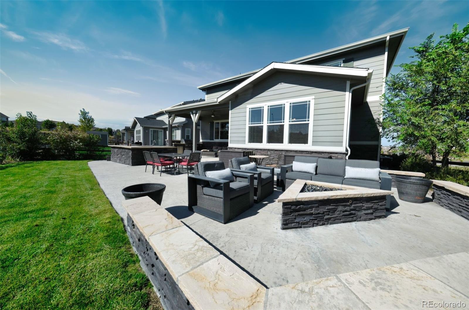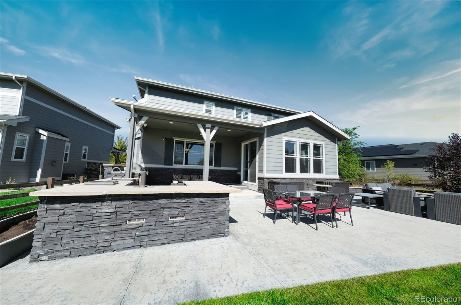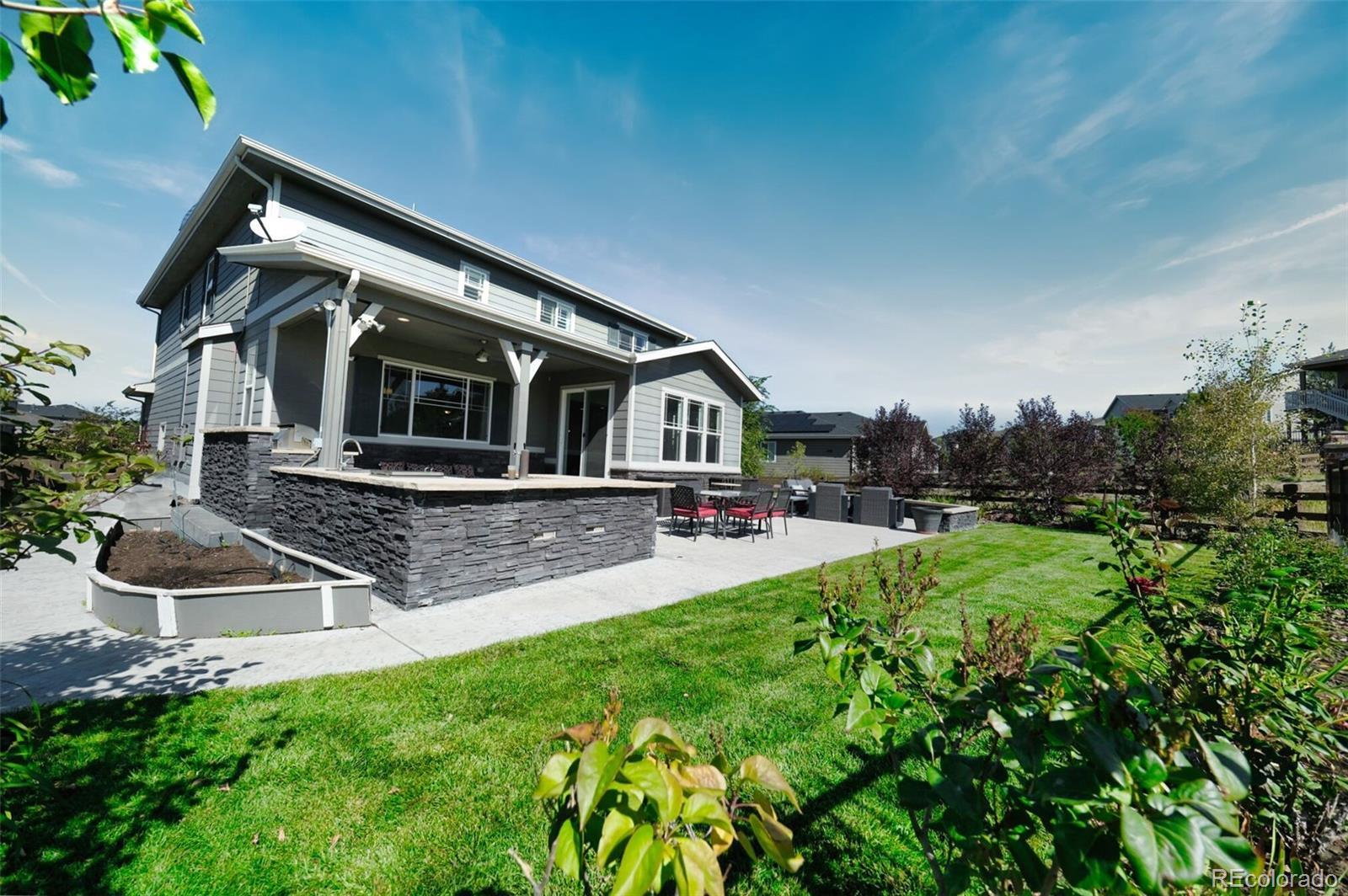 Better than new SETH! Walk tro top rated Cherry Creek School District K-12, backs to greenbelt, across the street from walking trails, you couldn't ask for a better location! This exquisite 2-story home epitomizes comfort, luxury, and convenience! Boasting 5 bedrooms and 3 bathrooms, this immaculate residence is impeccably maintained and awaits your immediate enjoyment. Upon entry, the open layout of the main level creates an inviting atmosphere, perfect for entertaining guests. The cozy family room, complete with a gas fireplace, sets the stage for intimate gatherings, while the formal dining room provides an elegant backdrop for memorable meals. Additionally, a main floor bedroom easily transitions to a convenient home office. The heart of the home, the gourmet kitchen is a Chef's dream! It features stainless steel appliances 42" upper cabinets, granite counters, a walk-in pantry and a remarkable oversized island. Upstairs, the spacious owner's suite offers a luxurious retreat, with a spa-like 5-piece bath and dual walk in closets. Three additional bedrooms, 2 bathrooms, a generous loft and a super handy laundry room complete the upper level. Step outside into your private backyard oasis, complete with an outdoor kitchen with two beer taps and top of the line Lynx appliances. The covered patio provides ample space for outdoor entertaining. Enjoy the tranquility of a wonderfully landscaped yard and gather around the fire pit for cozy evenings under the stars. With direct access to open space and trails, this home offers unparalleled opportunities for outdoor recreation and exploration. Experience the unique lifestyle of Southshore! Walk to the new K-12 and Rec Center in minutes! Residents enjoy access to a wealth of amenities, including the newly opened 9,000 square feet recreation center. Features such as year-round natural light, high end finishes, and a serene, quiet street add to the allure of this exceptional property. It's a rare opportunity not to be missed!